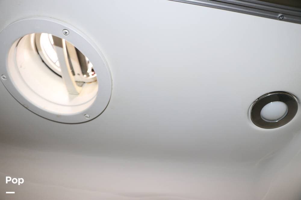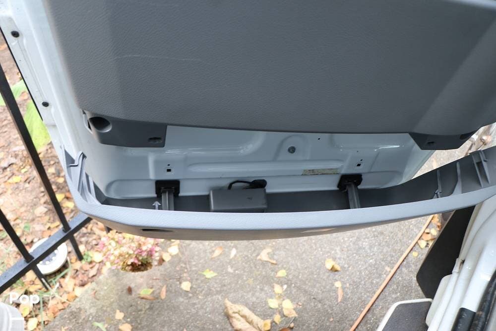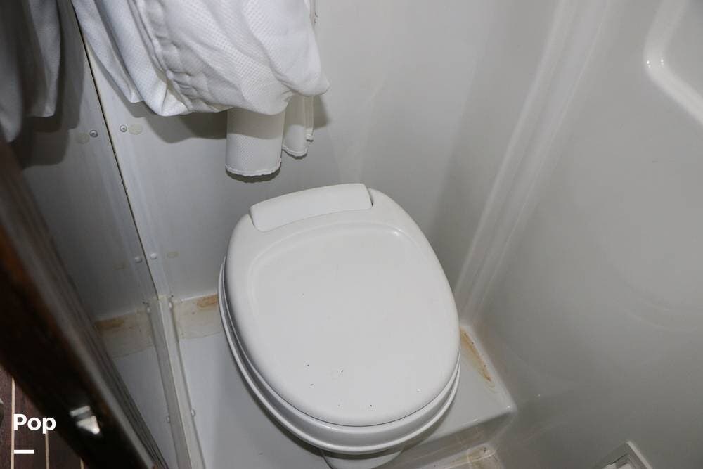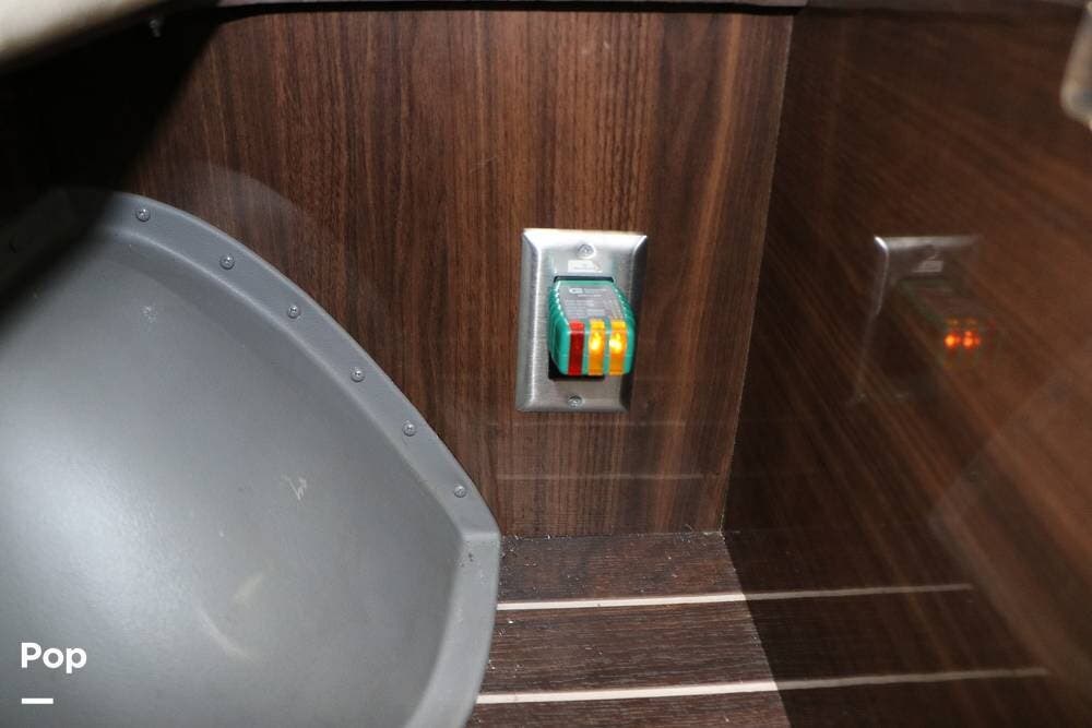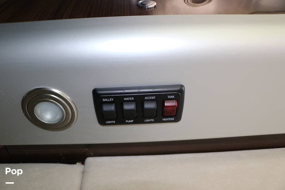 The bathroom is located opposite the Galley and directly behind the passenger's 2nd-row captain's chair. It features a wet head, with sink/shower and a makeup mirror on a swing-out bracket. There is a vent with an exhaust fan that leads to the outside, as well as one located in the roof of the bathroom.