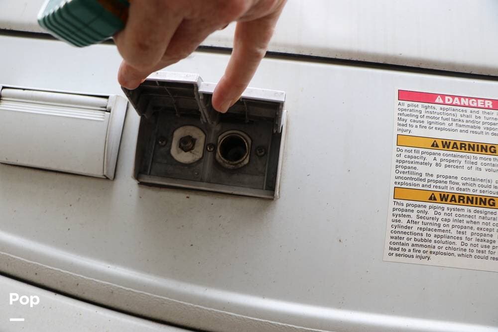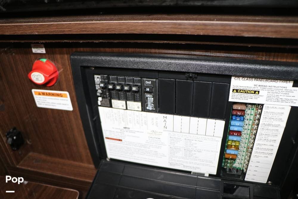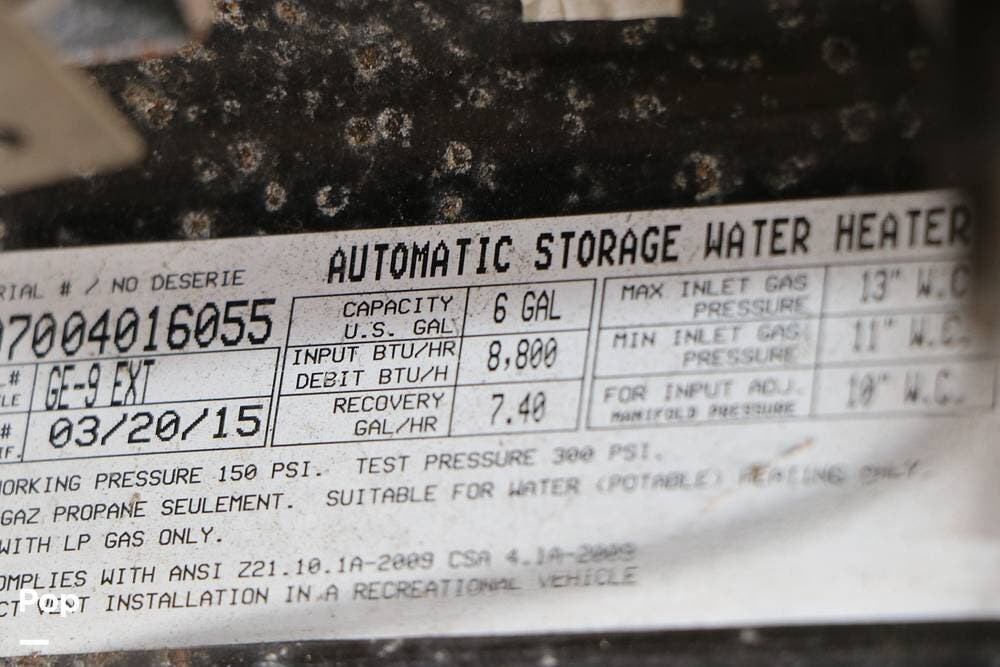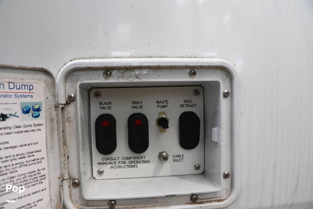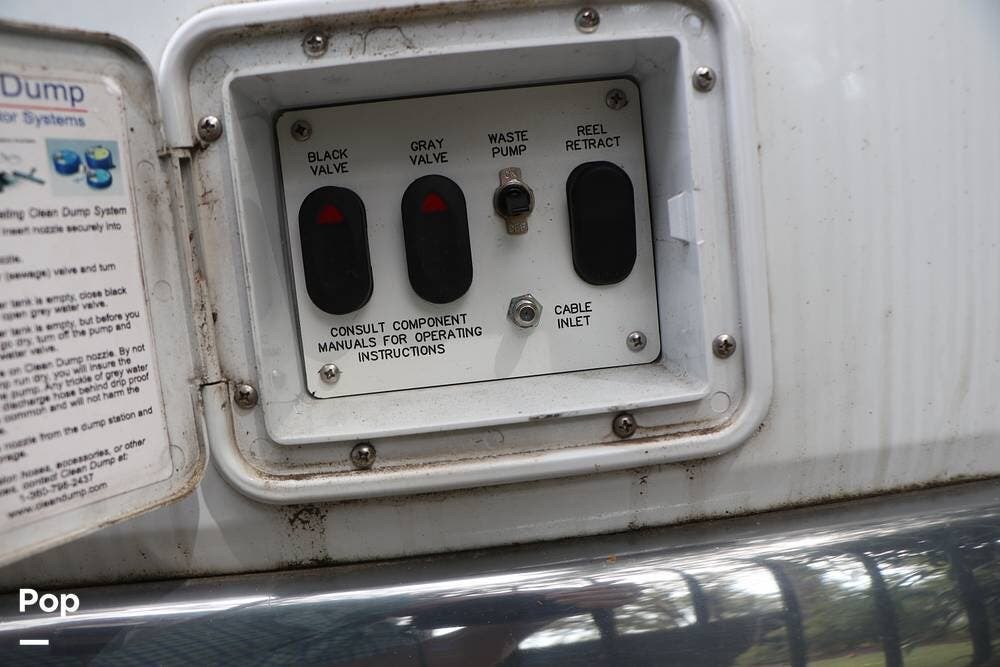 The large power patio awning creates an outdoor living space when at the campsite too. All of the RV systems are clearly marked and easily accessible around the exterior of the RV.