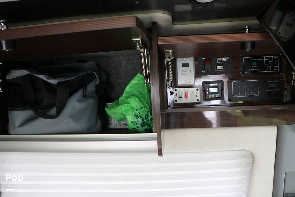 The Onan 2.5kW LPG-based generator is mounted below the sofa, and all controls are conveniently located in a single control cabinet. The large Solar Panel on the roof powers the converter and battery charger, keeping the house battery charged and ready for use. The alternator also charges the house battery as you are driving down the road.