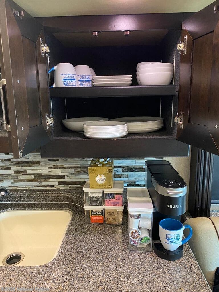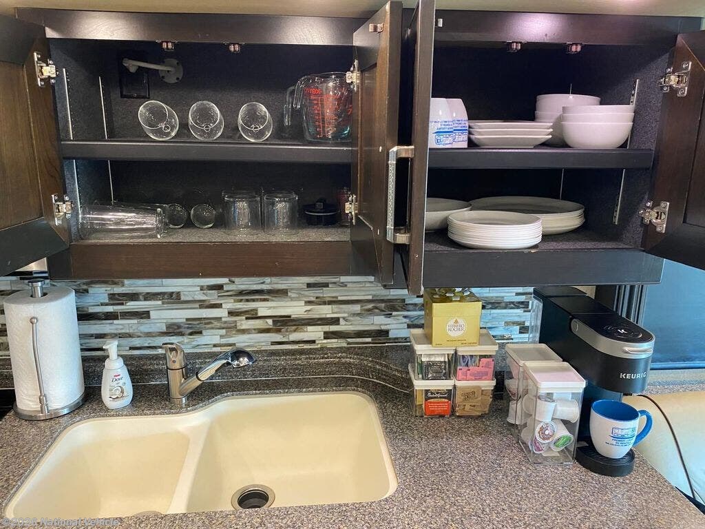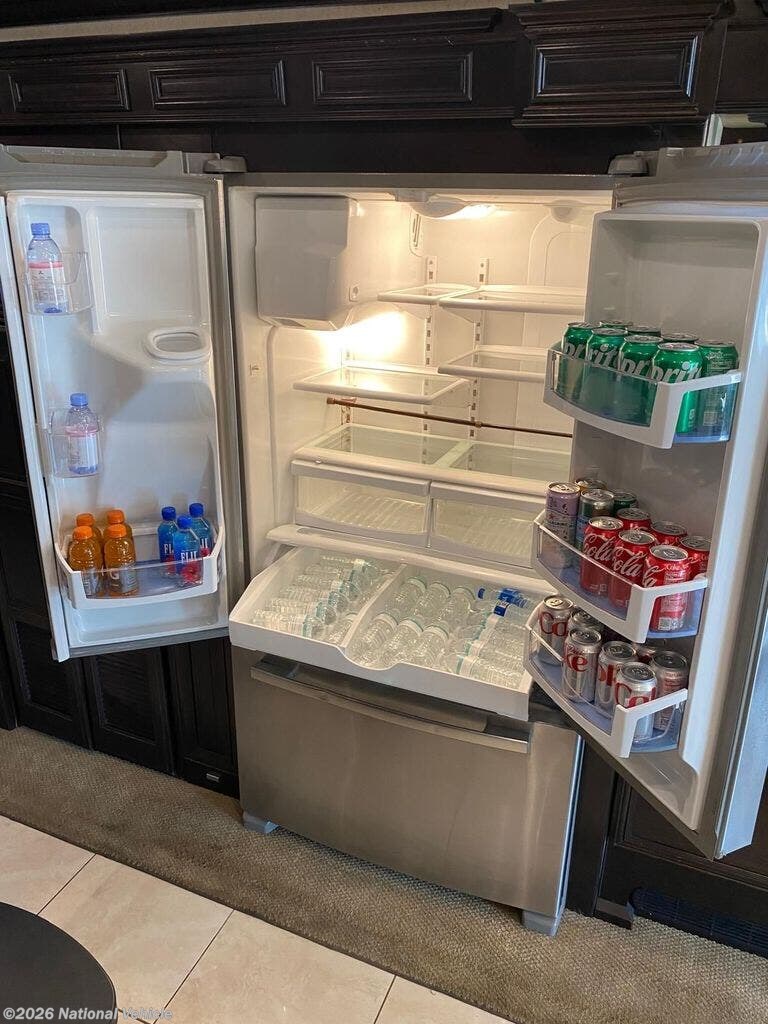 The kitchen is a chef?s dream, equipped with a residential refrigerator, induction cooktop, convection microwave, dishwasher, and ample storage. A half bath mid-ship provides convenience, while the luxurious master suite includes a king-size bed and a private rear bath with dual sinks, a large tile shower, stackable washer/dryer, and a full wardrobe.