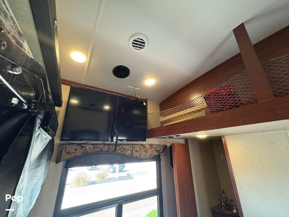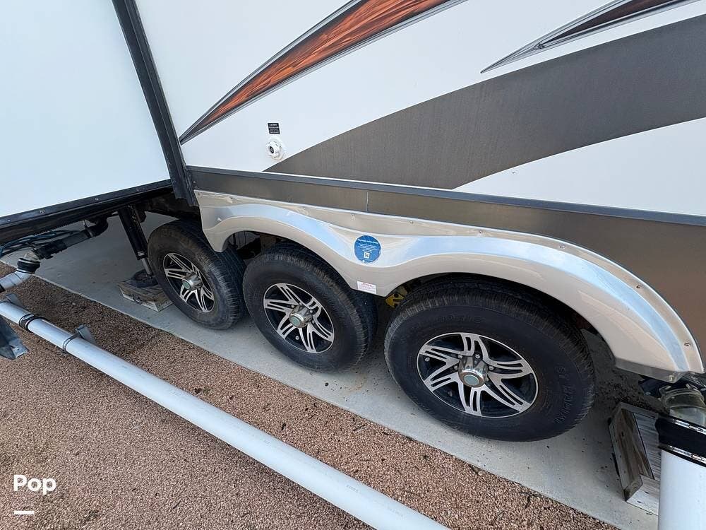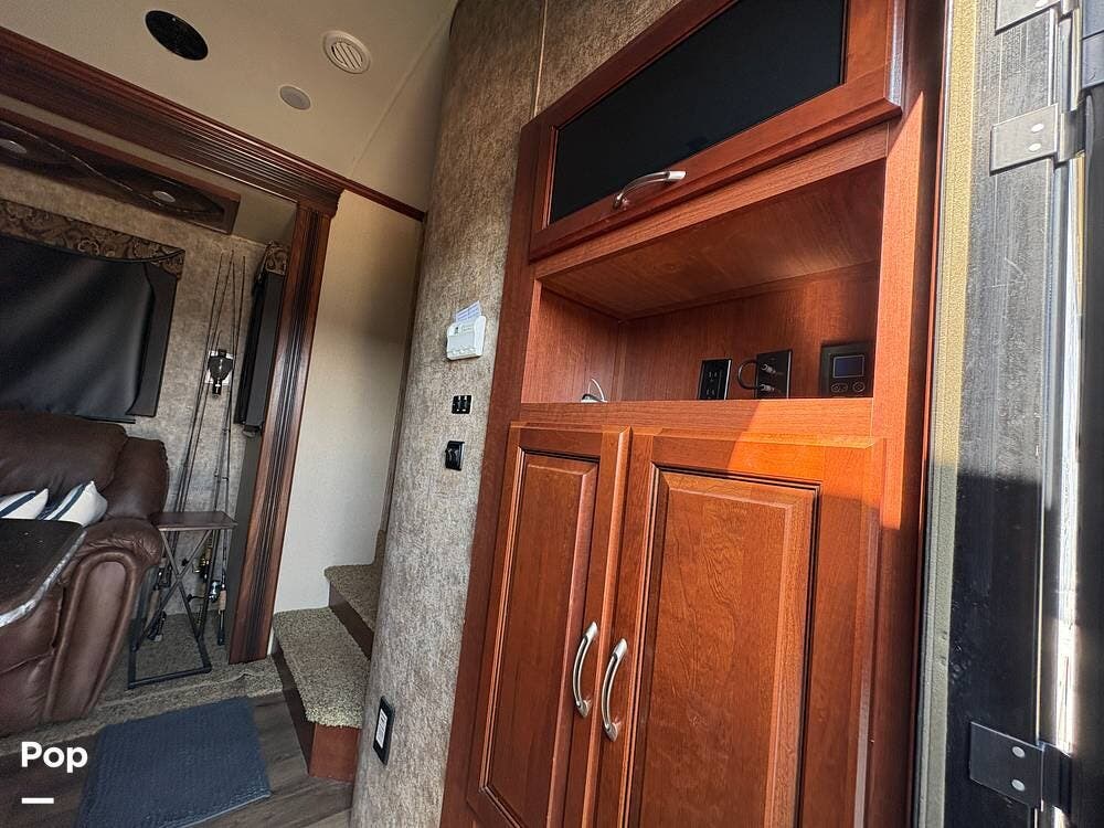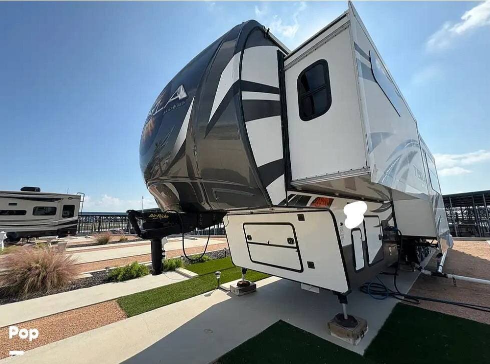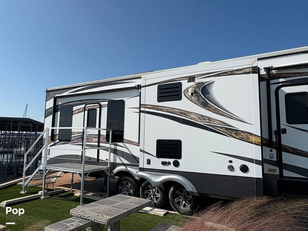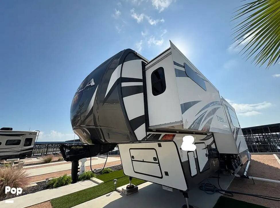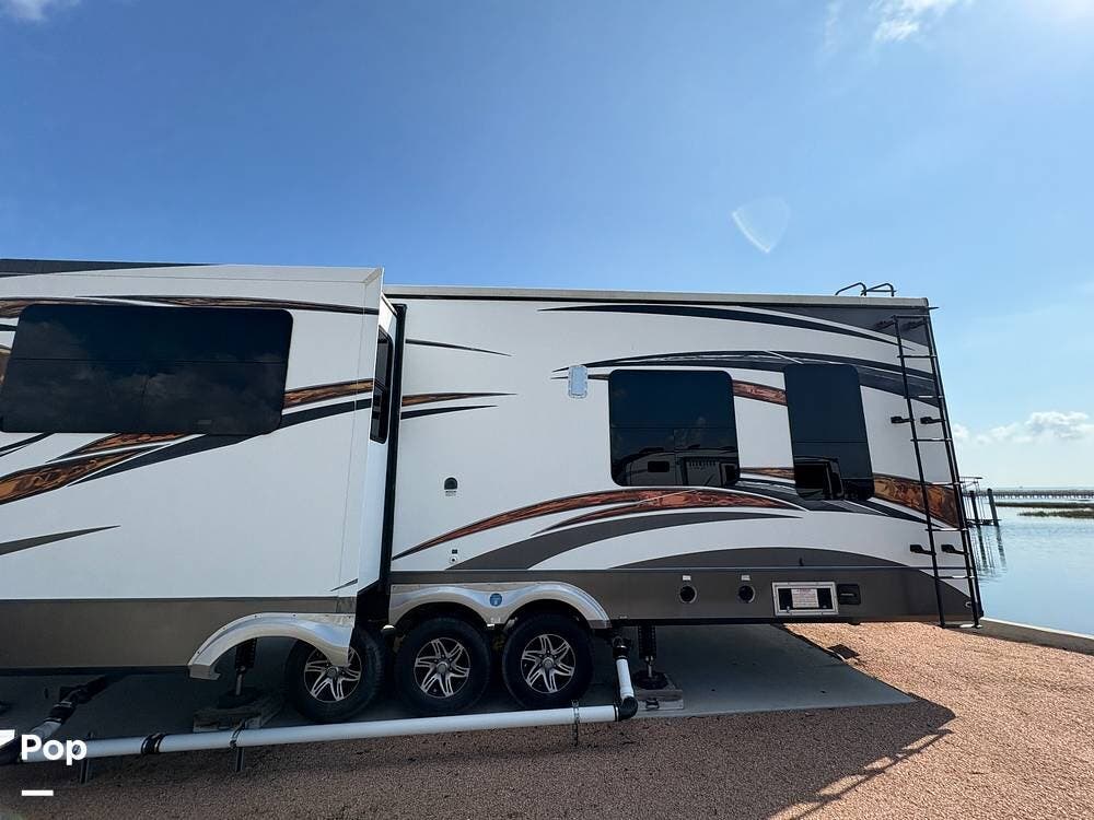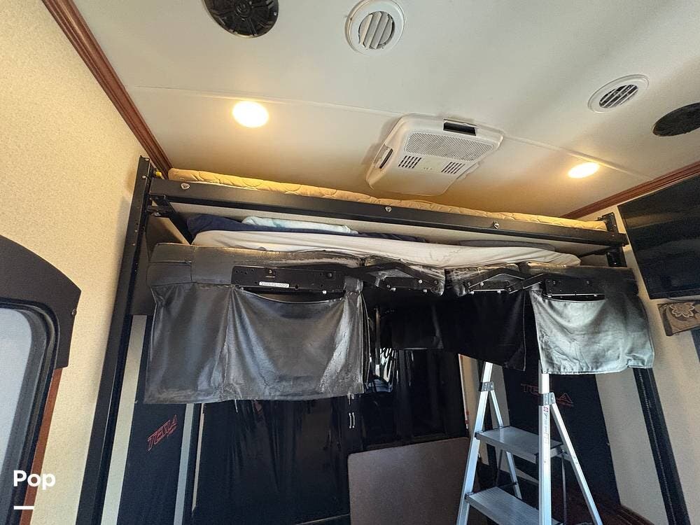The 2015 EverGreen Tesla 3950 is a high-end toy hauler fifth wheel from EverGreen RV that combines luxury RV accommodations with a large garage bay for toys or gear. It offers substantial interior space and serious presence on the road.