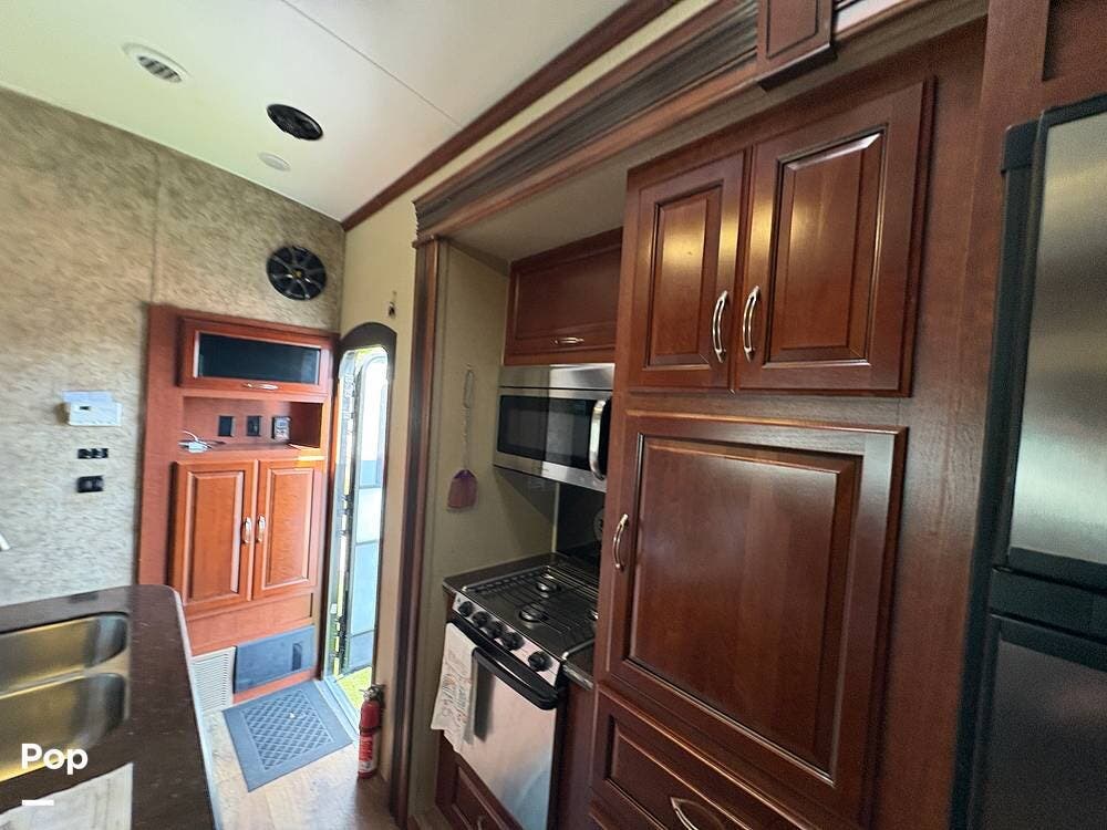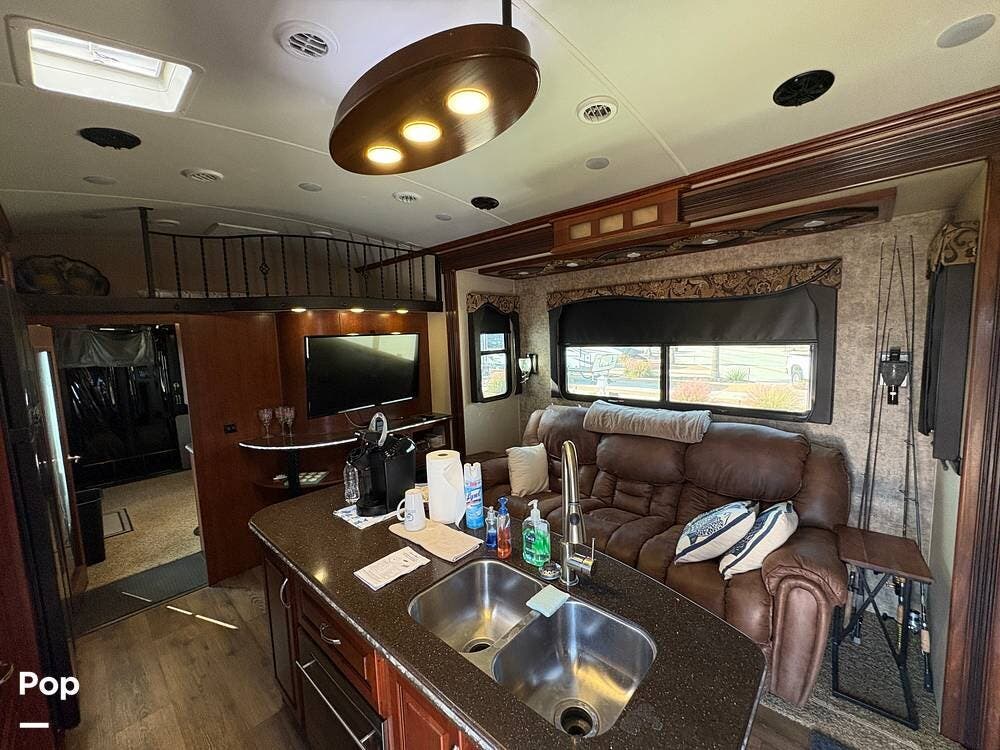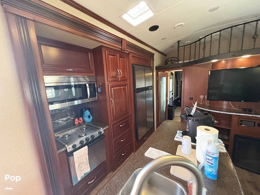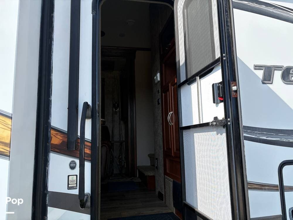 All told, the 2015 EverGreen Tesla 3950 is built for serious RVers who want full-blown living comforts and the ability to haul toys or gear -- so it straddles the line between luxury RV and rugged toy hauler.