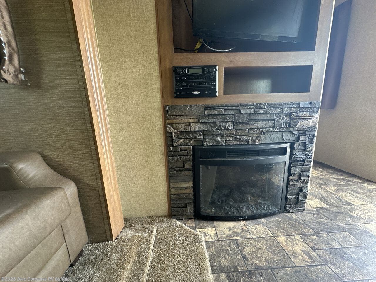 Straight ahead along the interior wall from the door there is a TV entertainment center with fireplace that can easily be viewed from any seating in the room.