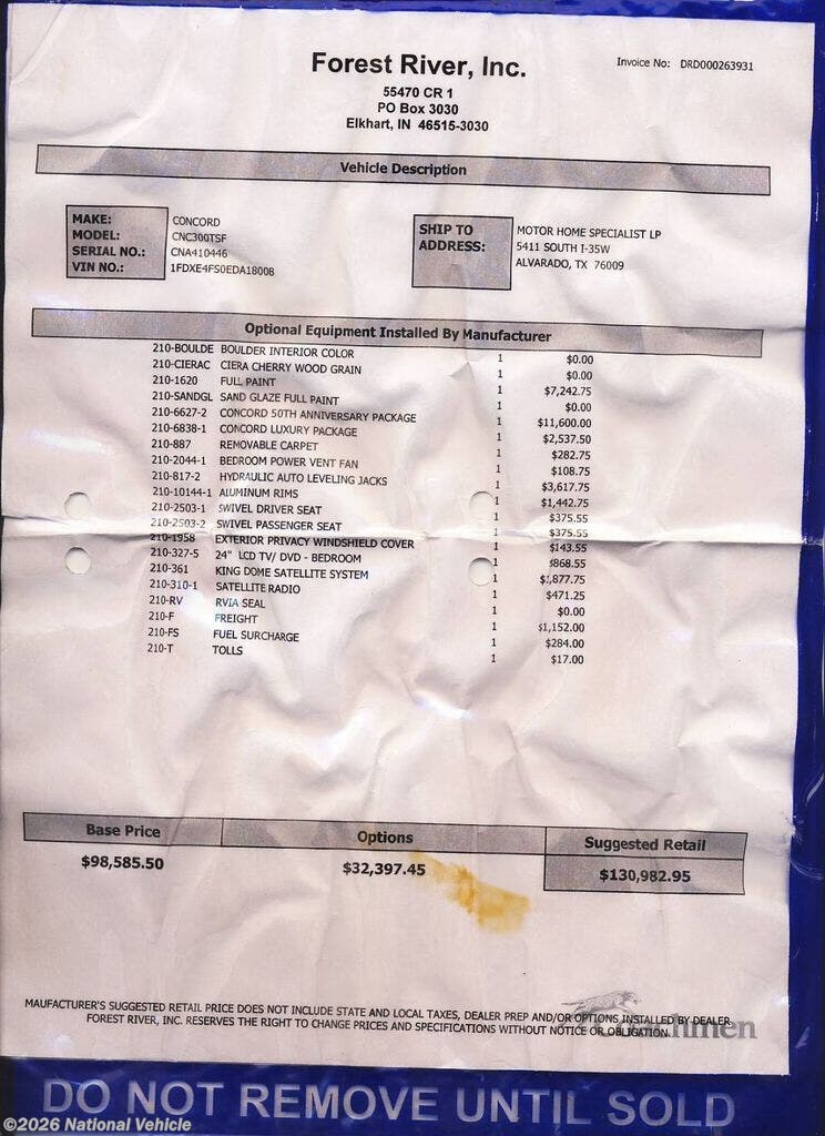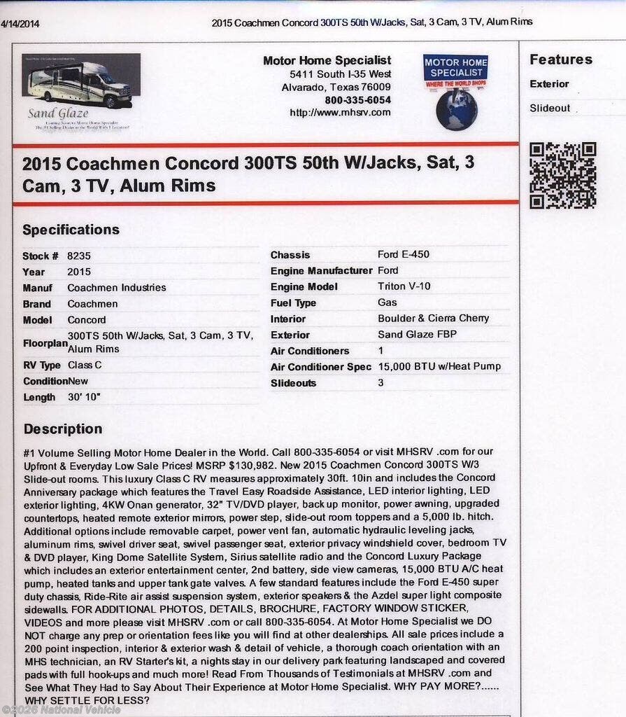 Looking to buy a 2015 Coachmen Concord Class C RV?