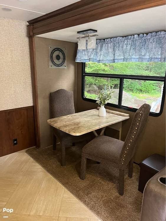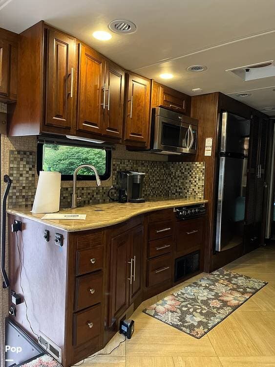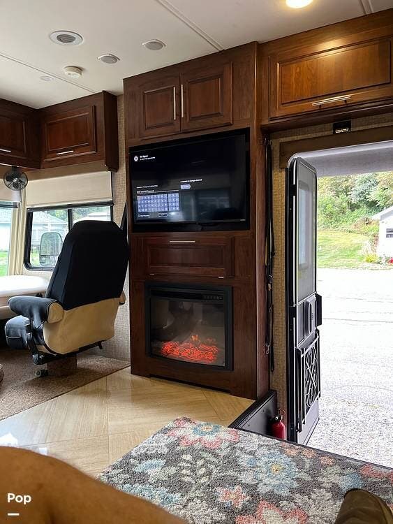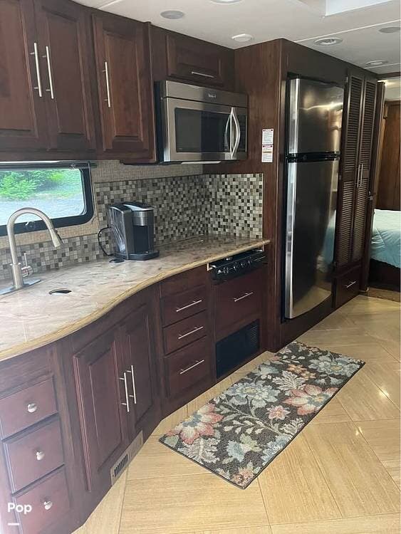 Step inside the stunning RV and appreciate the spacious interior layout.