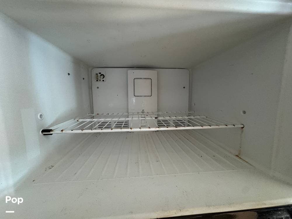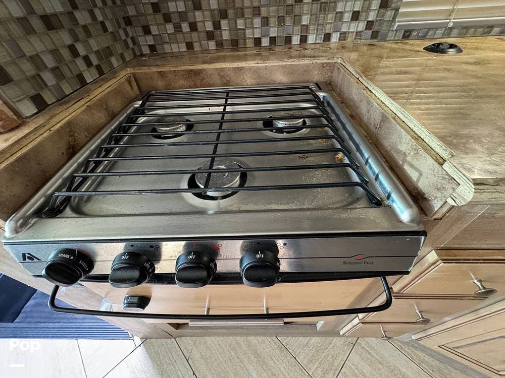 Additional features include a cozy fireplace, a Winegard antenna for enhanced entertainment options, and a solid surface countertop in the kitchen.