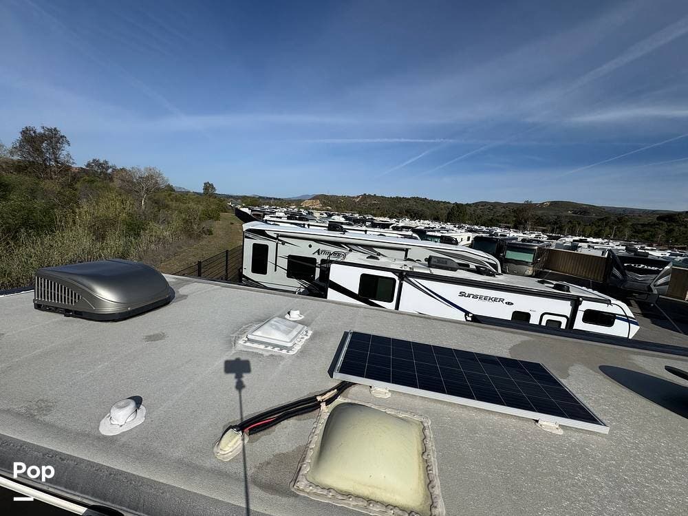 The RV is equipped with a 5.5kW generator for power on demand and a 200-watt solar panel with a controller and trickle charger for sustainable energy options.