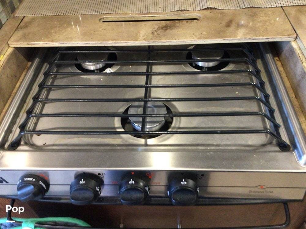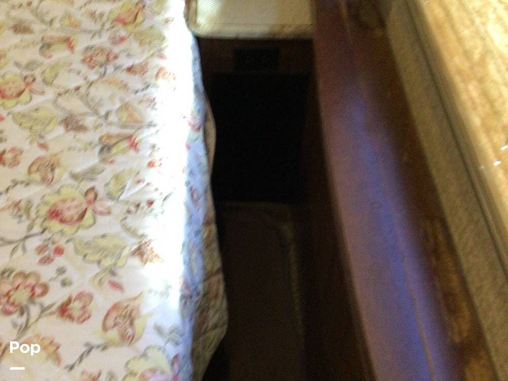 The rear bedroom serves as a quiet retreat, featuring a deluxe innerspring queen-size mattress, an upgraded designer headboard, and a wardrobe slide-out for massive amounts of storage.