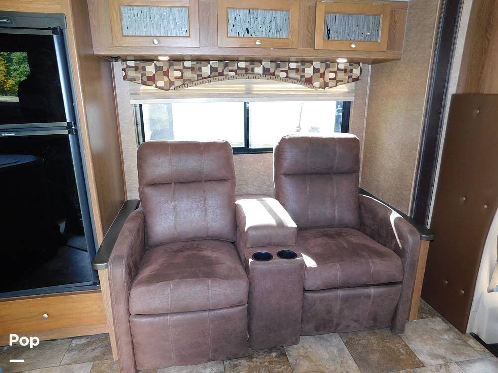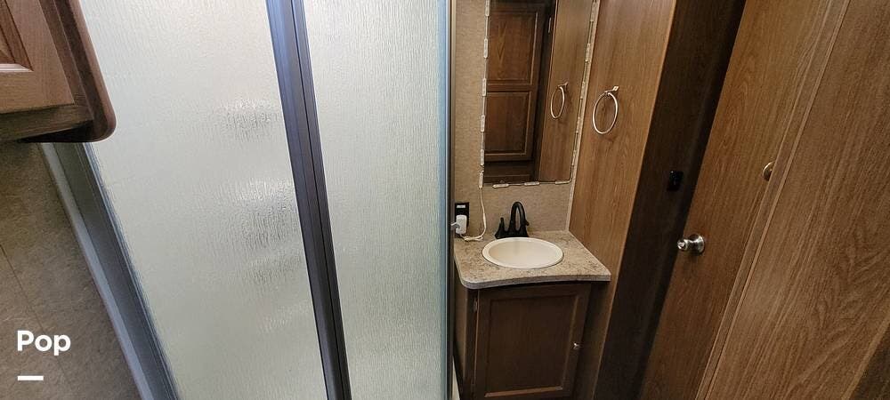 Entertainment in this 2015 Leprechaun 317SA includes a Front Entertainment Center w/ 32" TV, Stereo, 4 Speakers and Subwoofer plus a 24" bedroom TV.