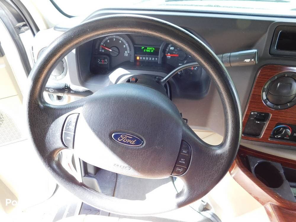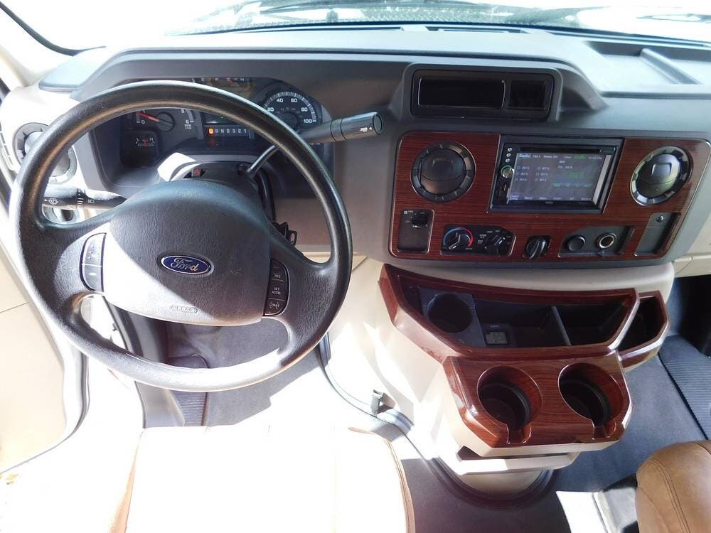 Built on a sturdy Ford E-450 chassis, this model features a gasoline-powered V10 engine, providing ample power for highway driving and mountain passes alike. The exterior measures approximately 33 feet, providing a spacious interior while remaining maneuverable for most drivers.
