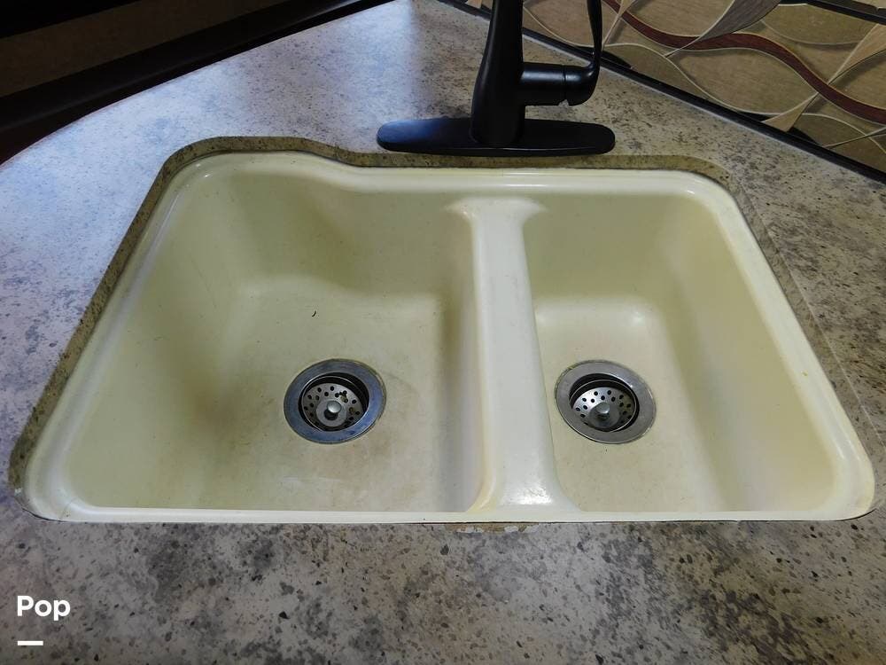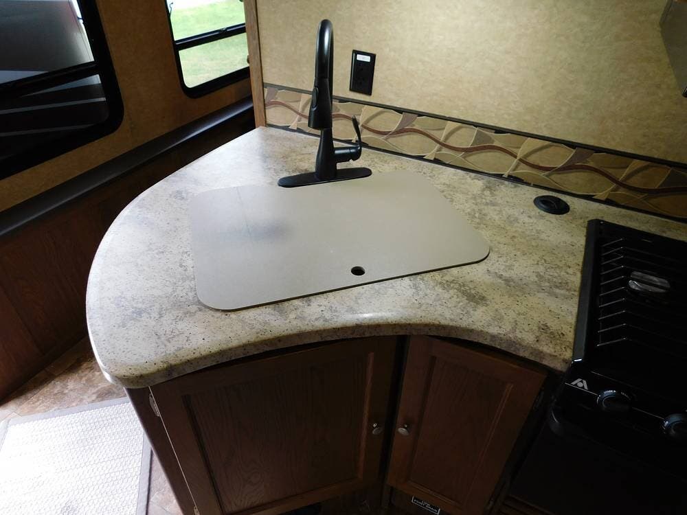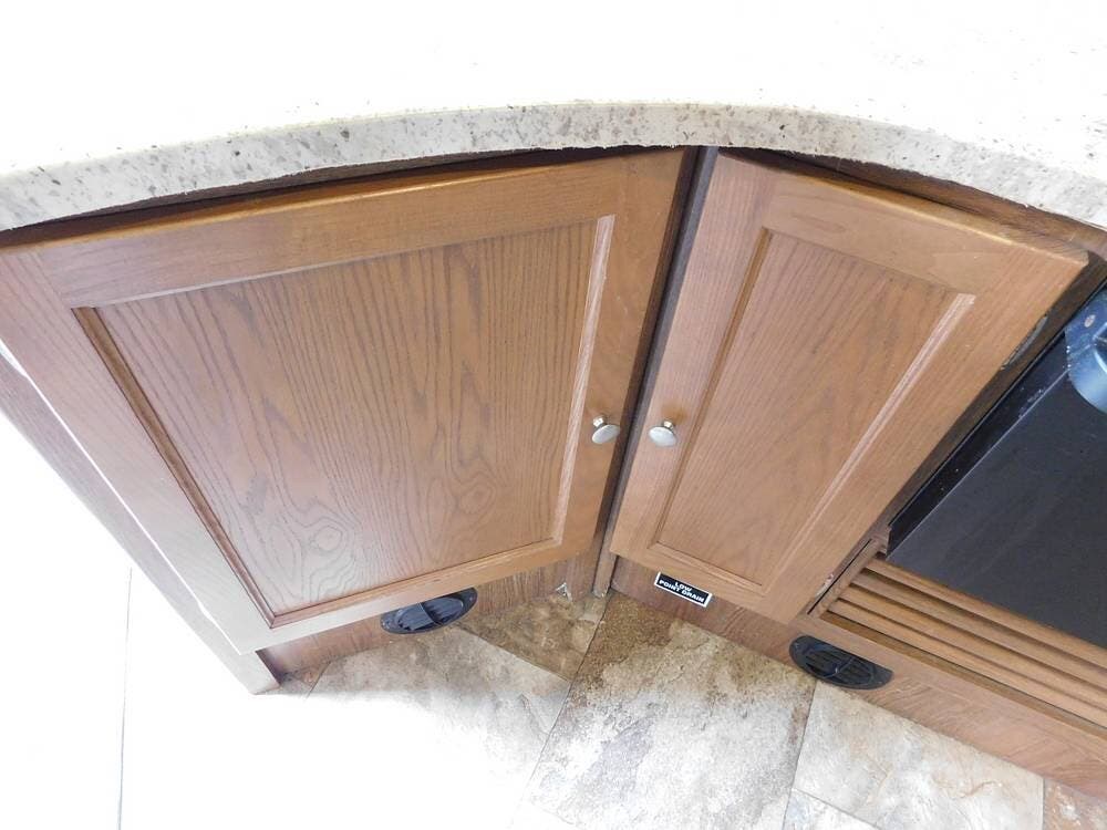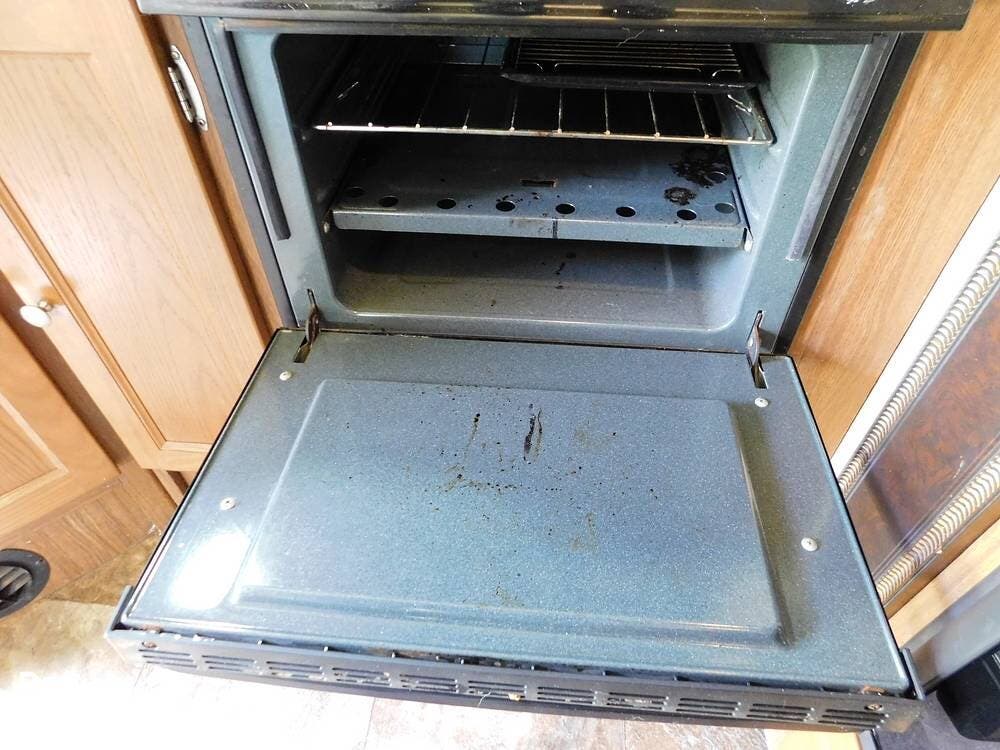 The kitchen in the 317SA is fully equipped with modern appliances, including a three-burner range with oven, a microwave, a double-door refrigerator, and a double-bowl sink. Ample counter space and multiple storage cabinets make meal preparation and cleanup straightforward.