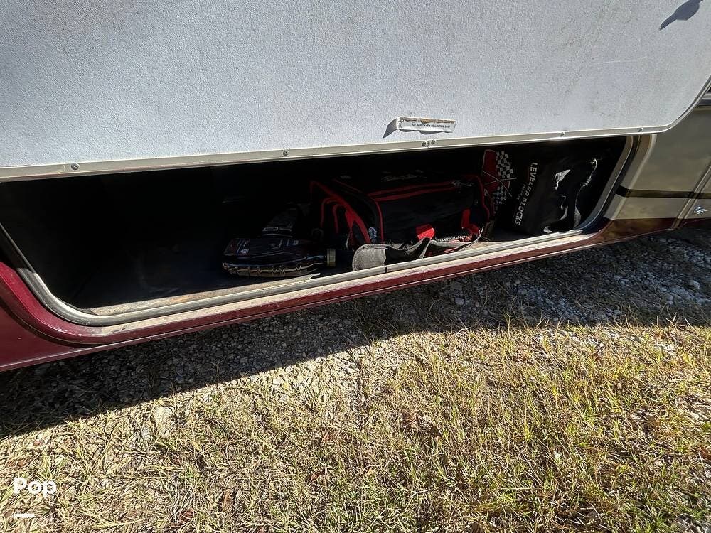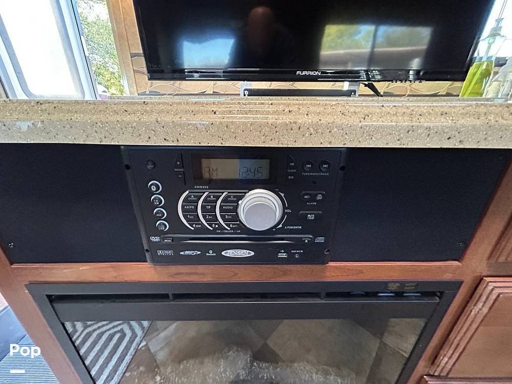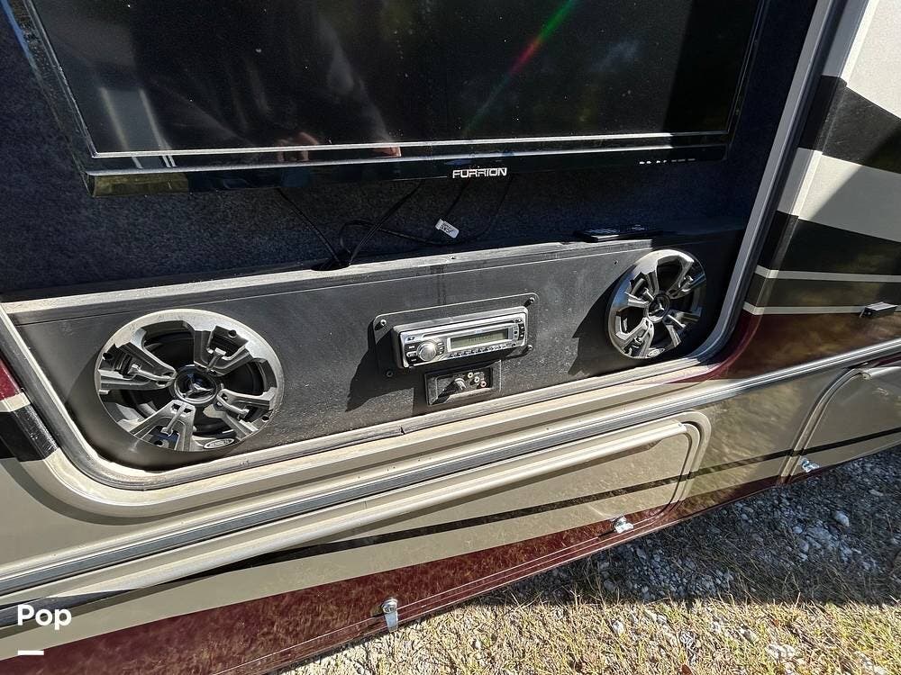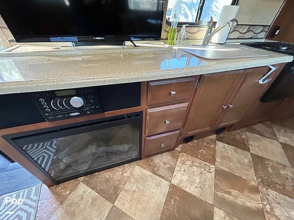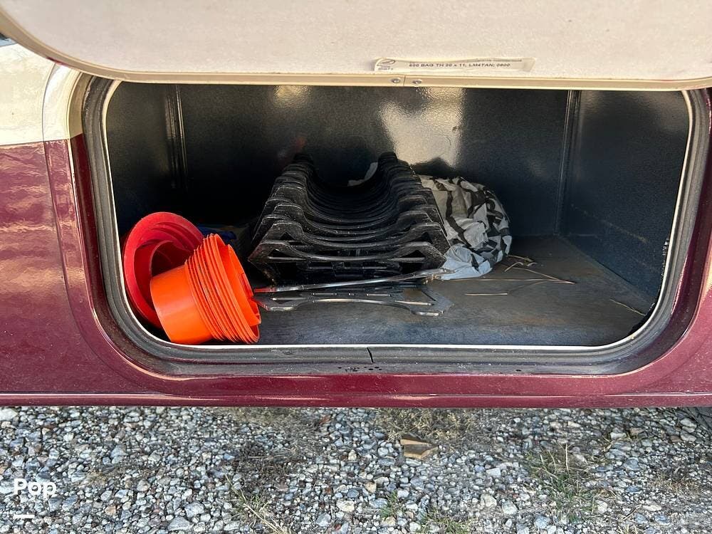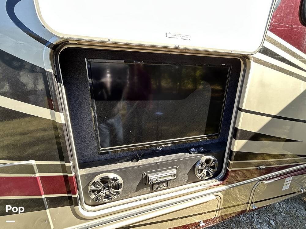 Outside, a well-equipped camp kitchen makes outdoor living easy, with running water, a foldaway table, and storage space for essentials. A power awning, exterior entertainment system with TV and DVD player, and multiple storage compartments complete the package.