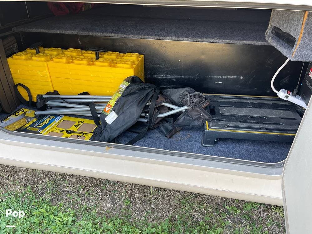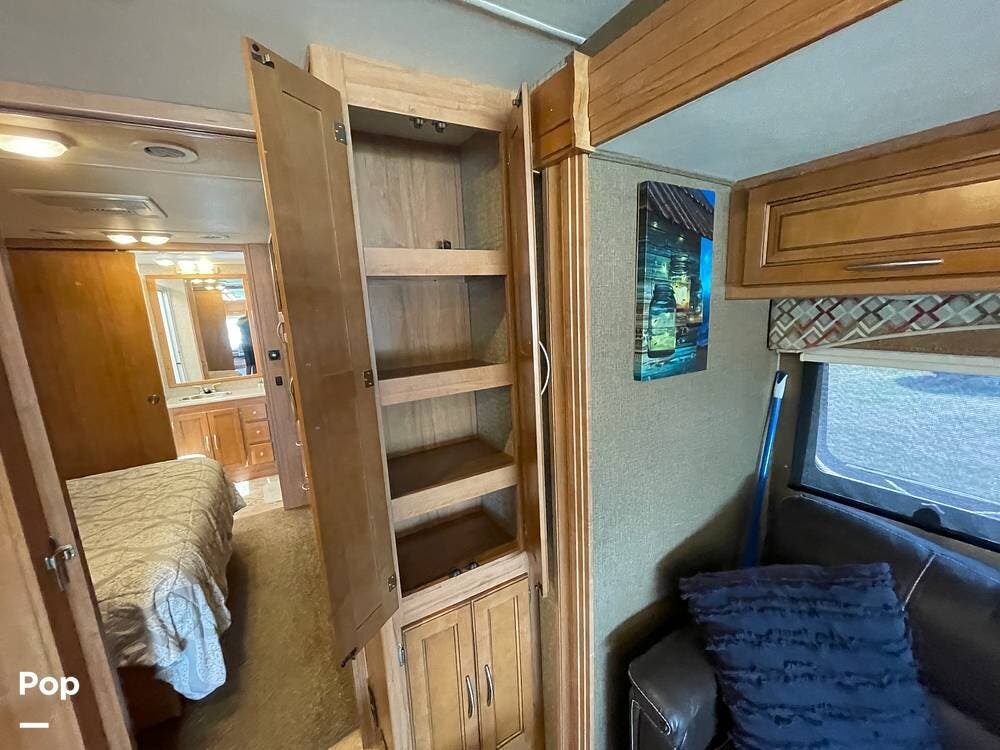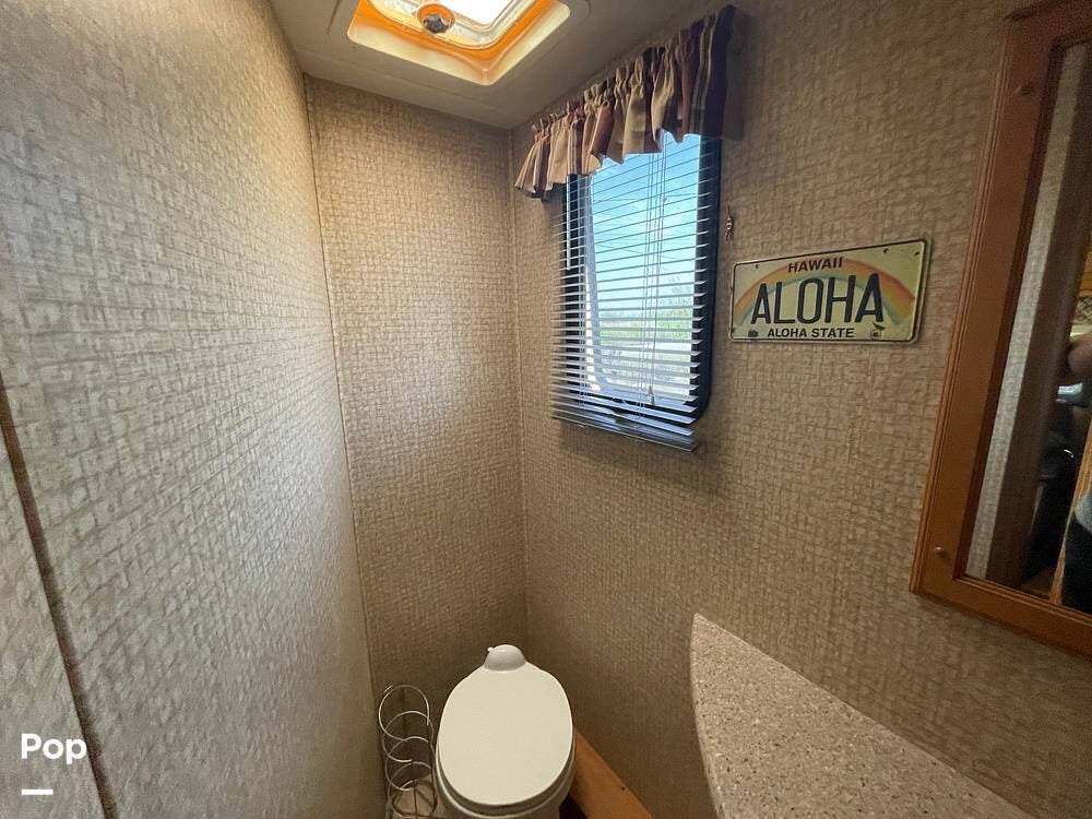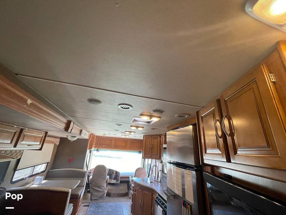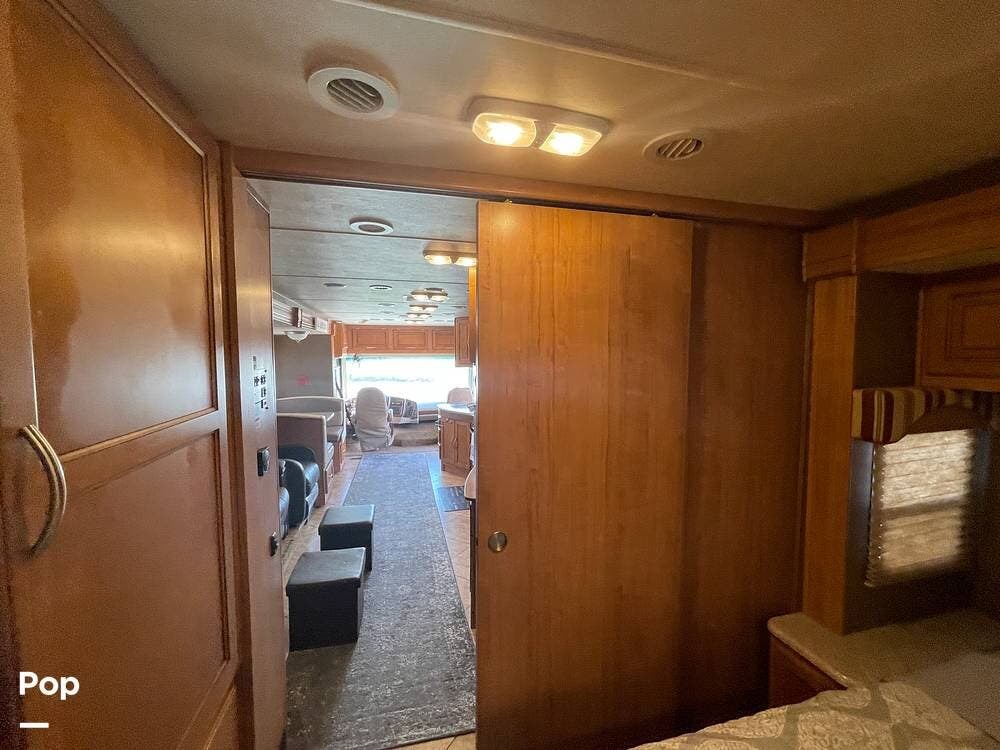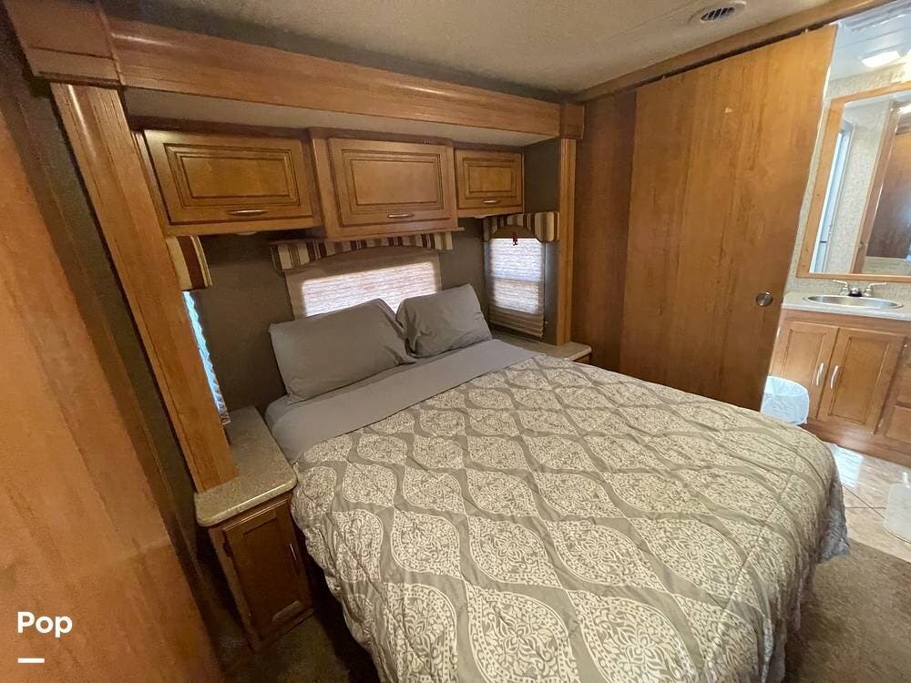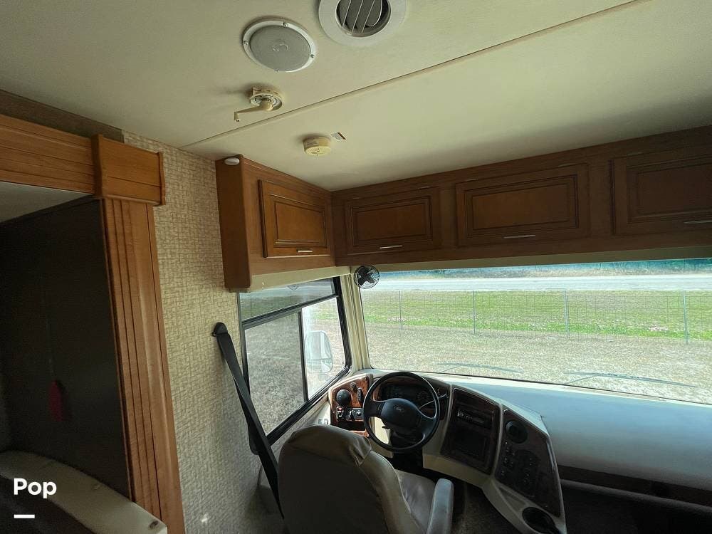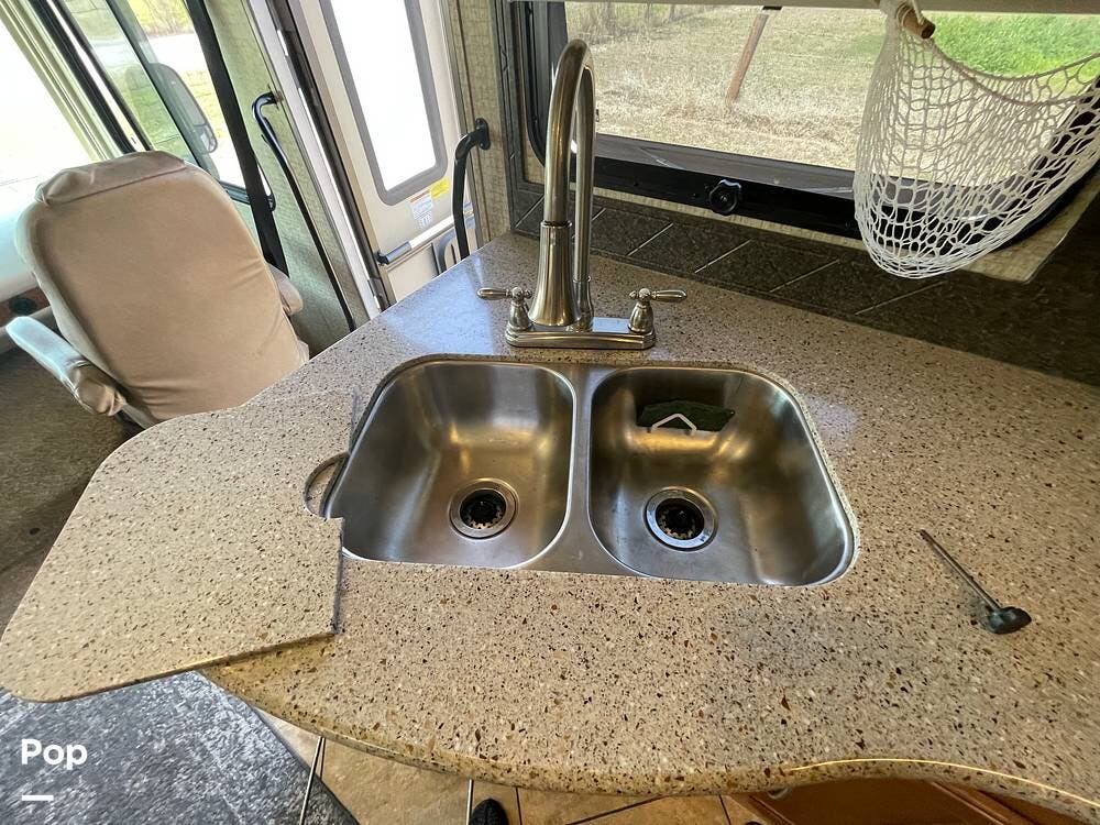 It measures approximately 36 feet in length and features a Ford Triton V10 engine with a 5-speed automatic transmission, providing reliable performance for long trips.
