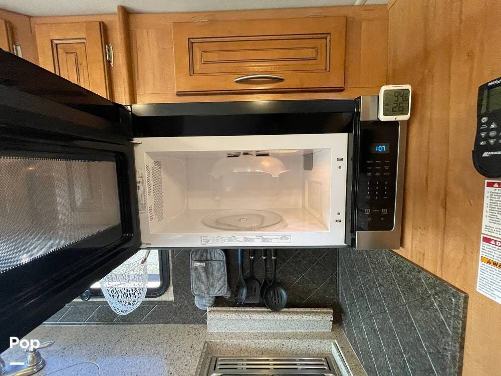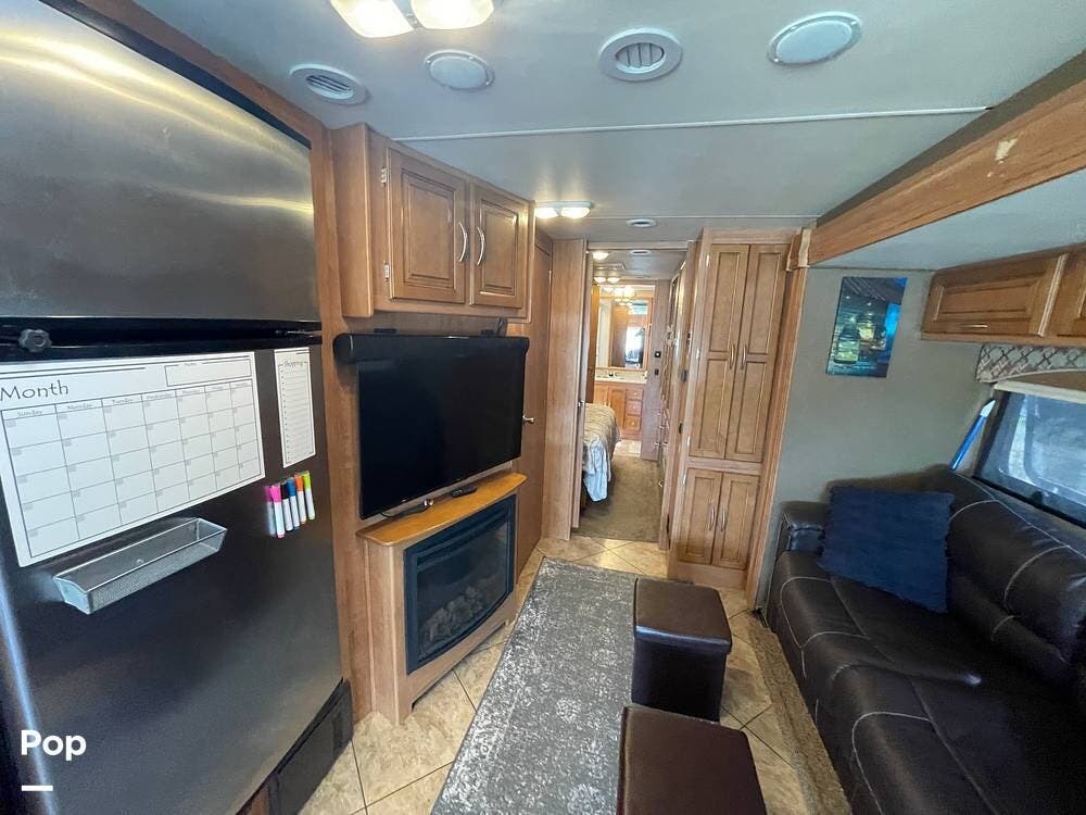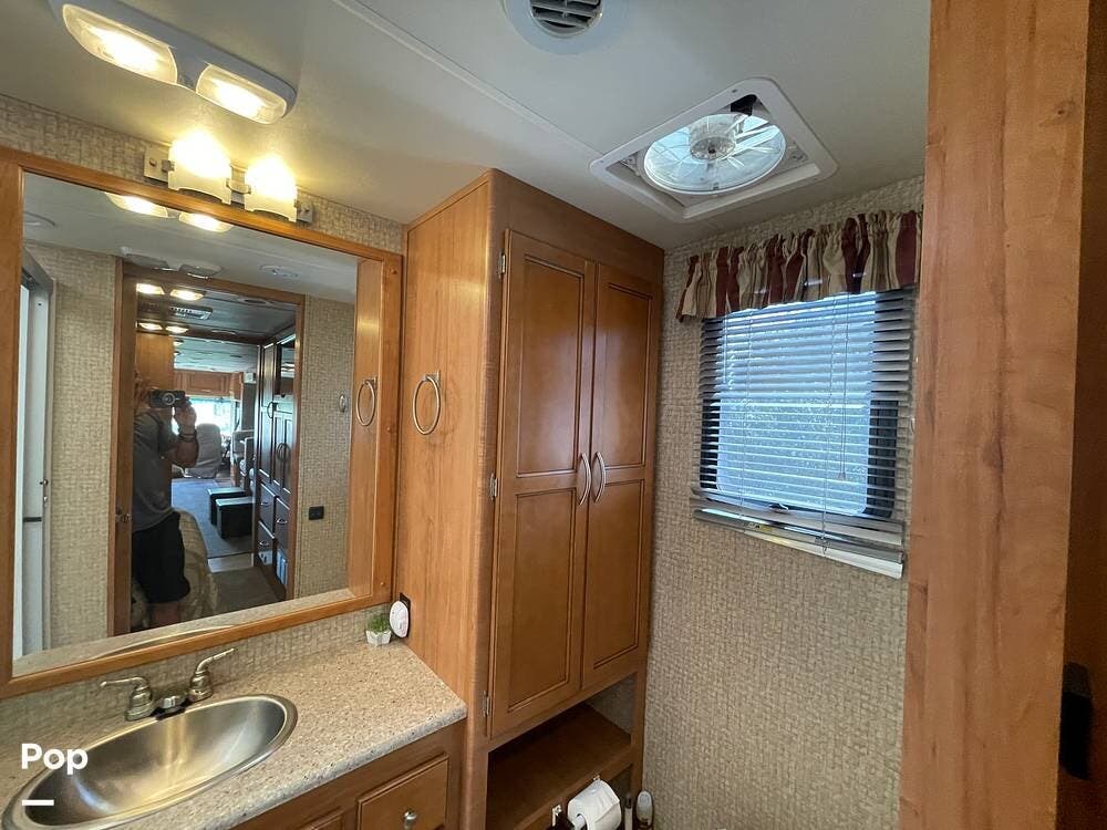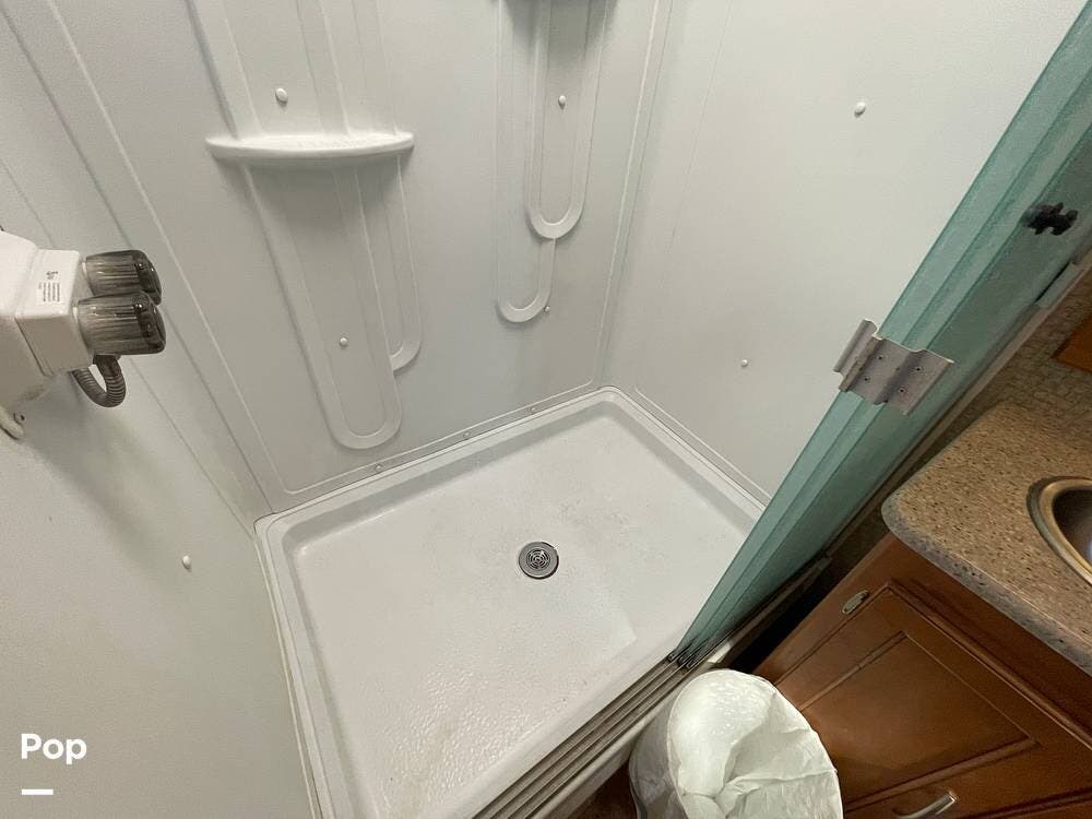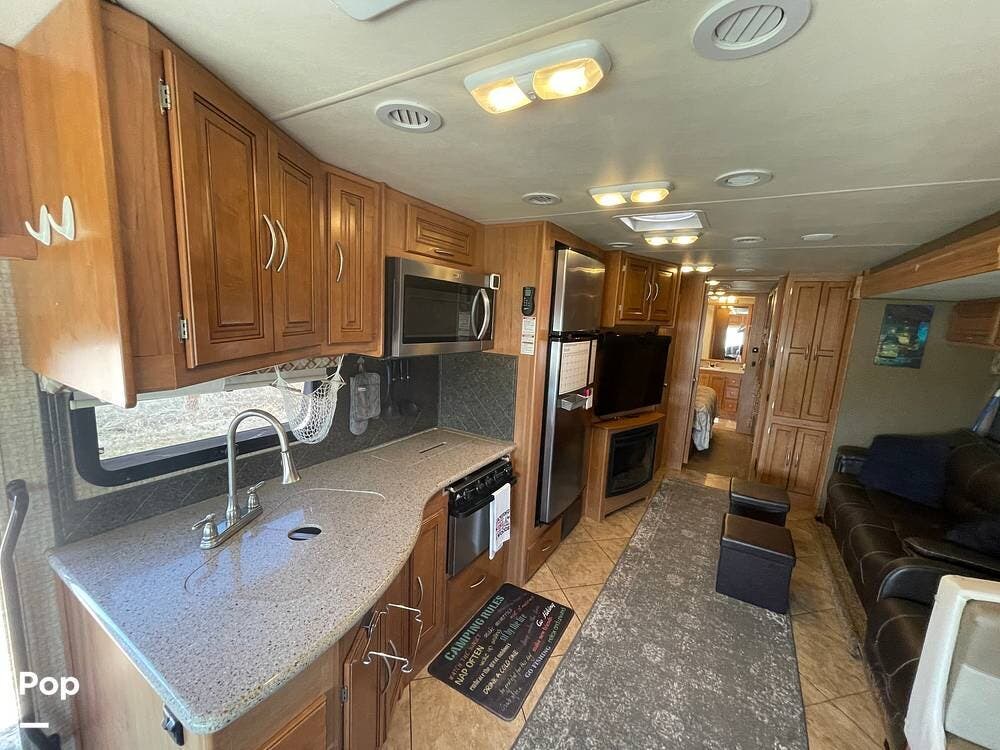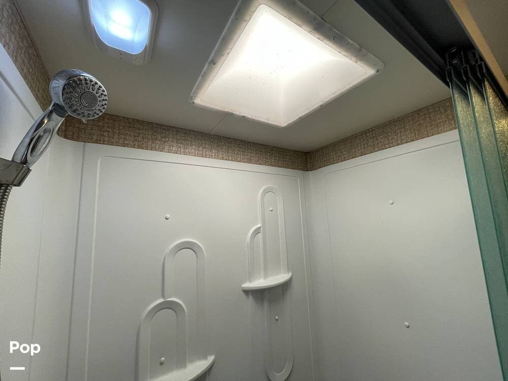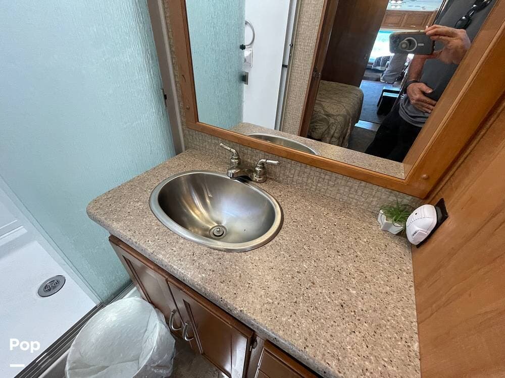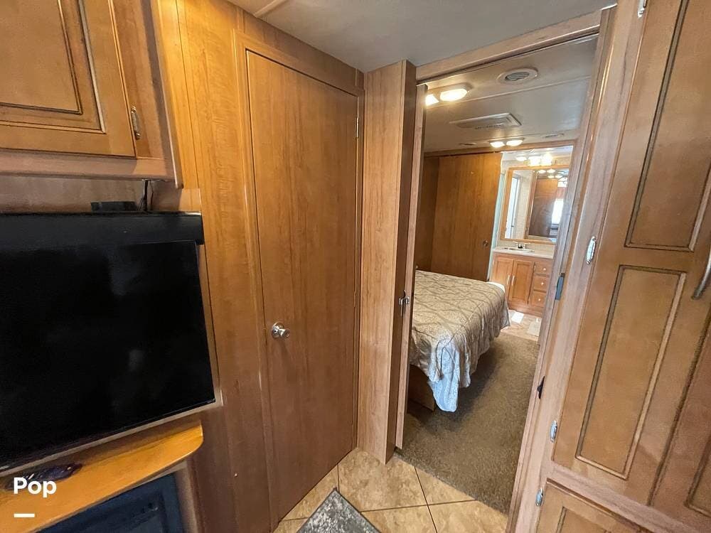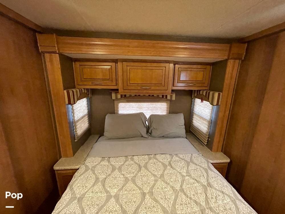 It measures approximately 36 feet in length and features a Ford Triton V10 engine with a 5-speed automatic transmission, providing reliable performance for long trips.