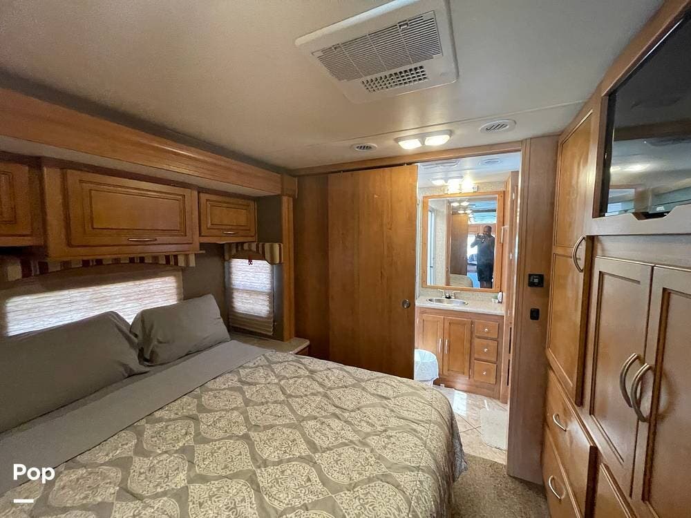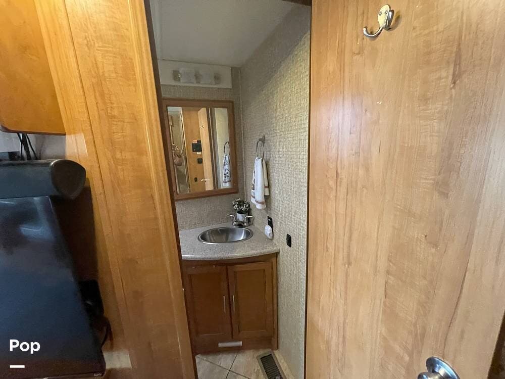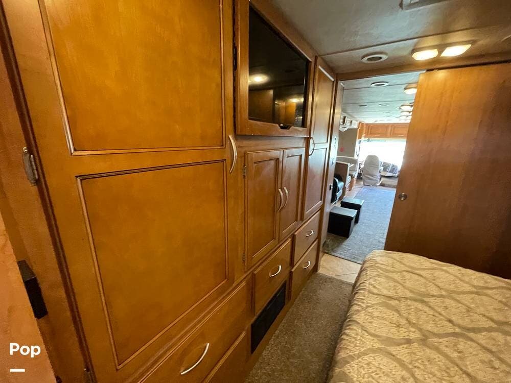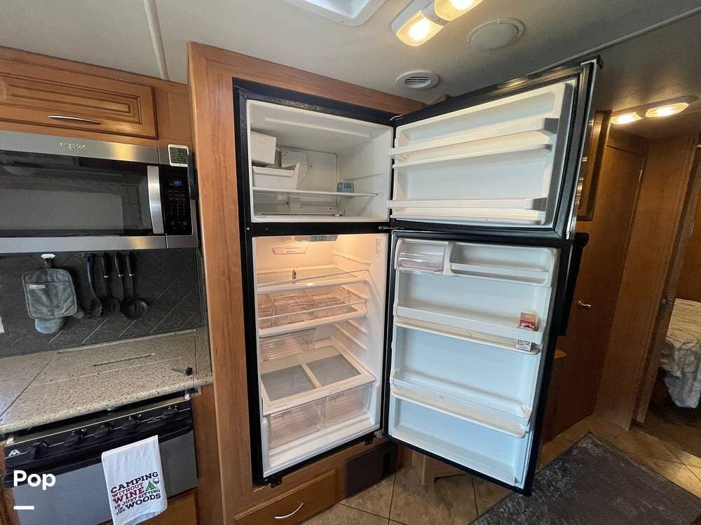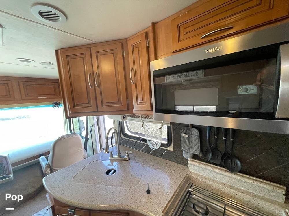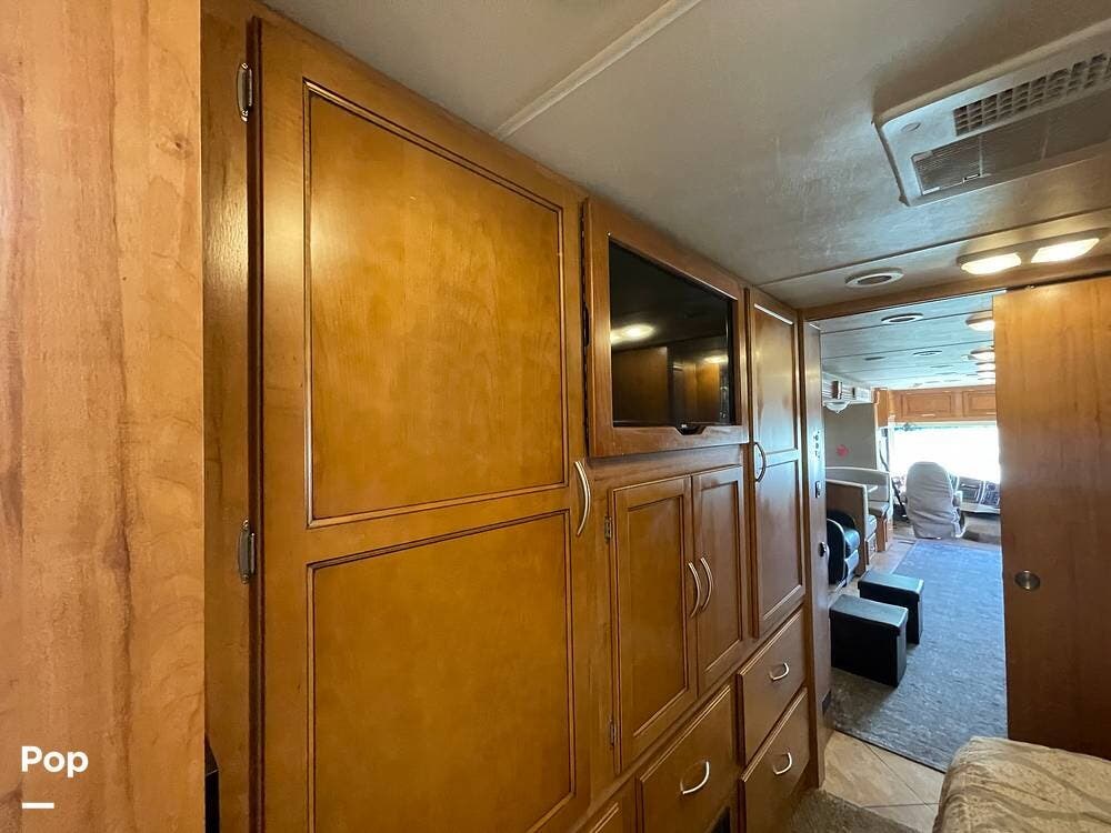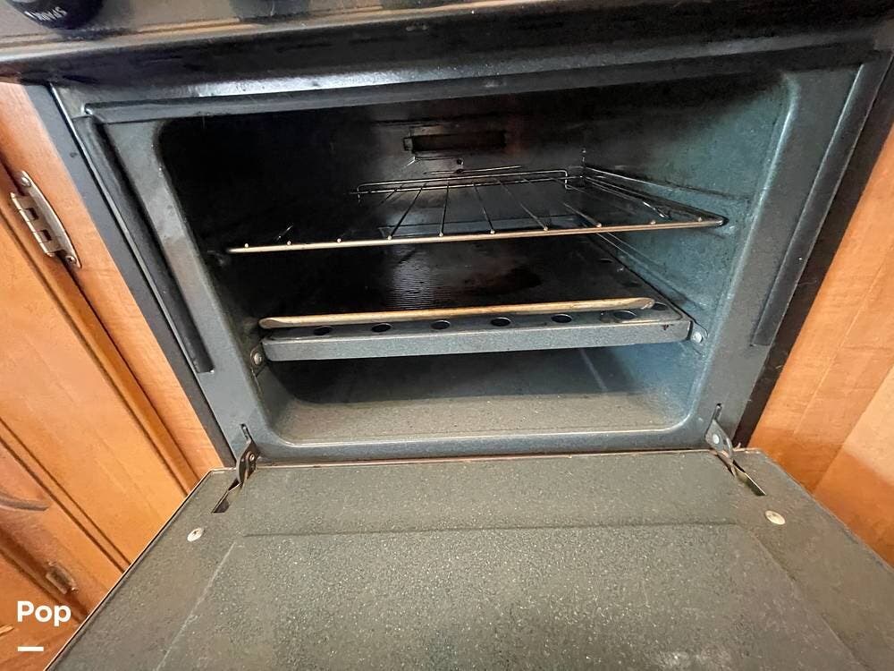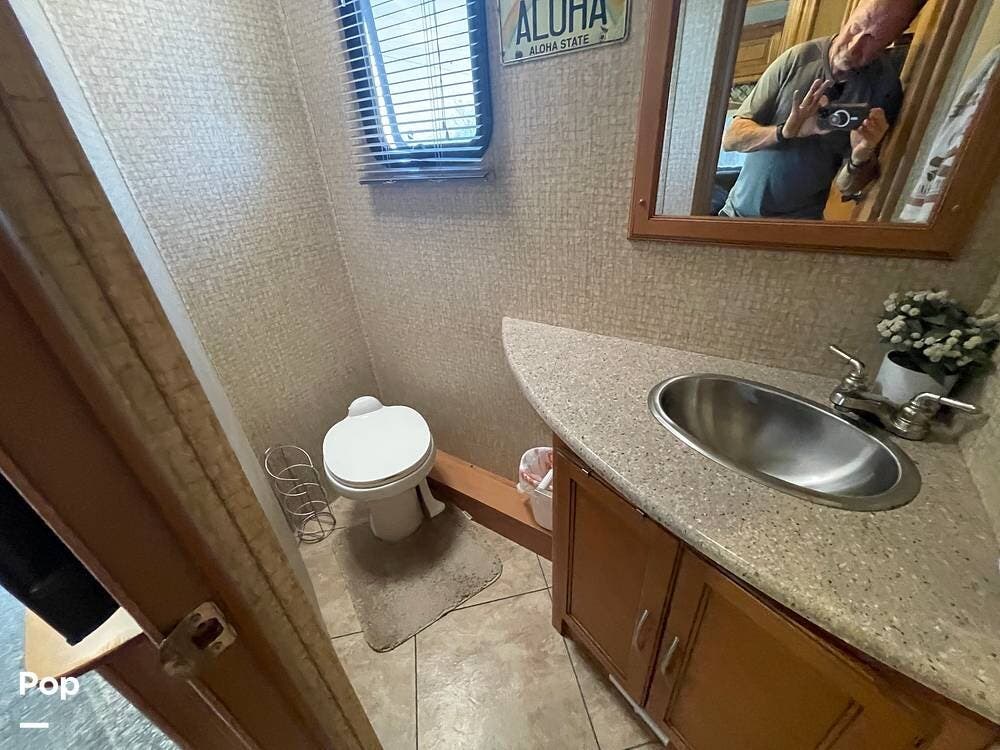 It measures approximately 36 feet in length and features a Ford Triton V10 engine with a 5-speed automatic transmission, providing reliable performance for long trips.