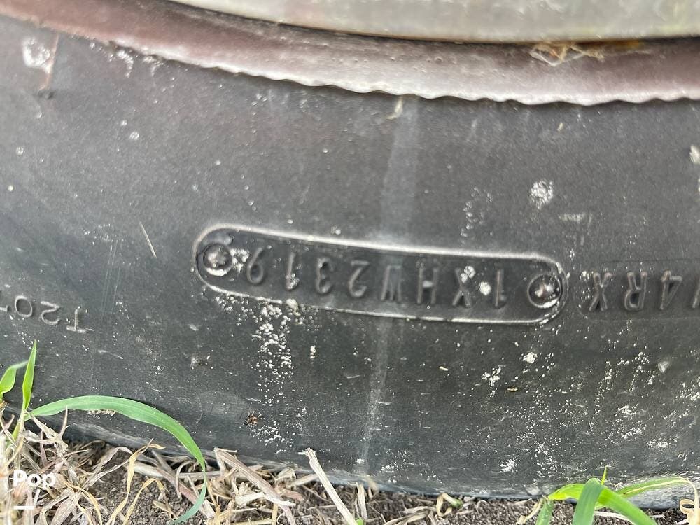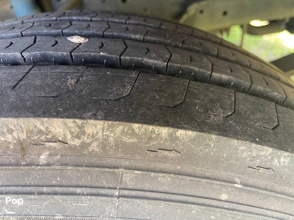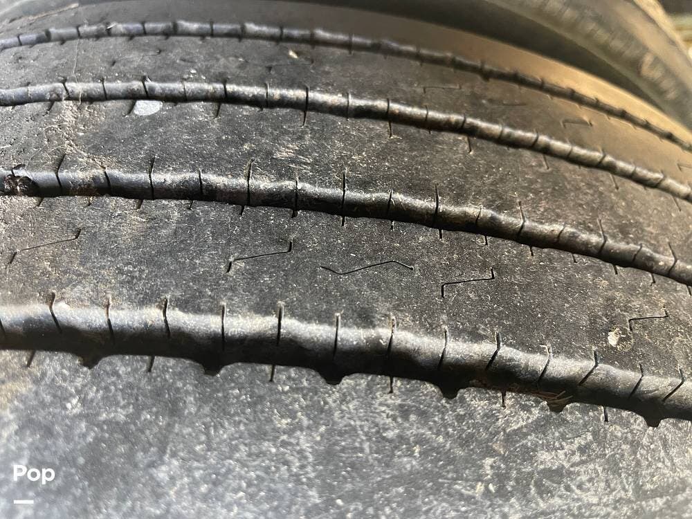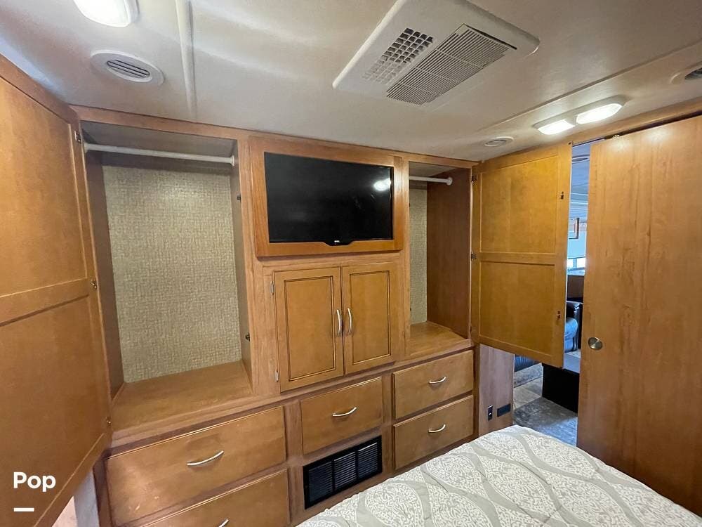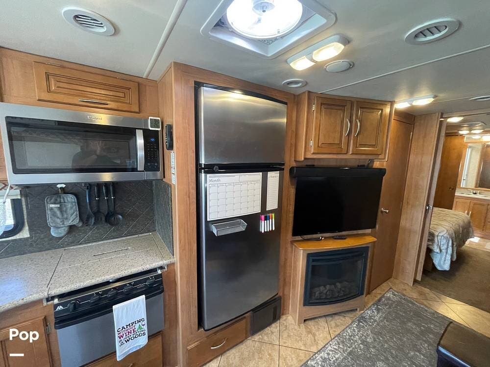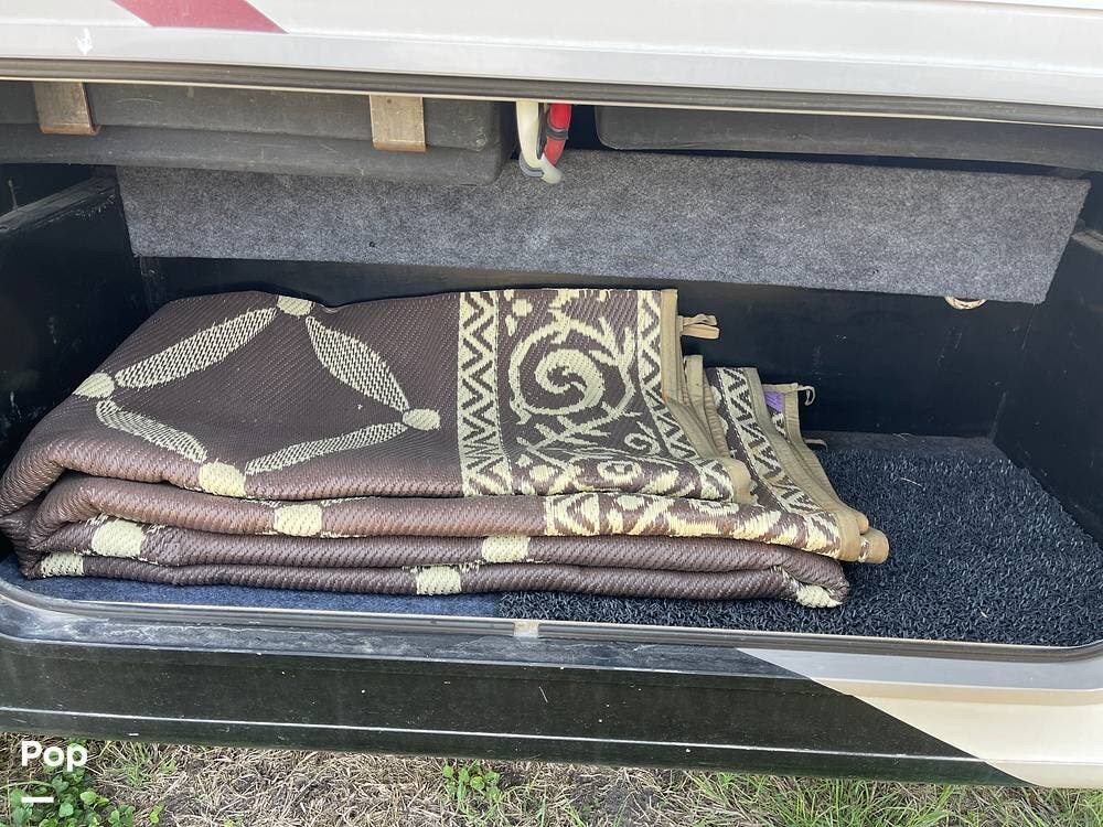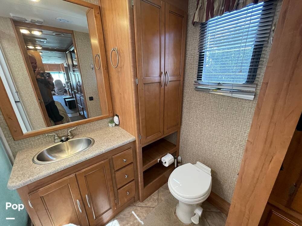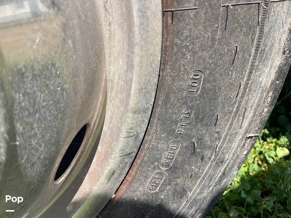 It measures approximately 36 feet in length and features a Ford Triton V10 engine with a 5-speed automatic transmission, providing reliable performance for long trips.