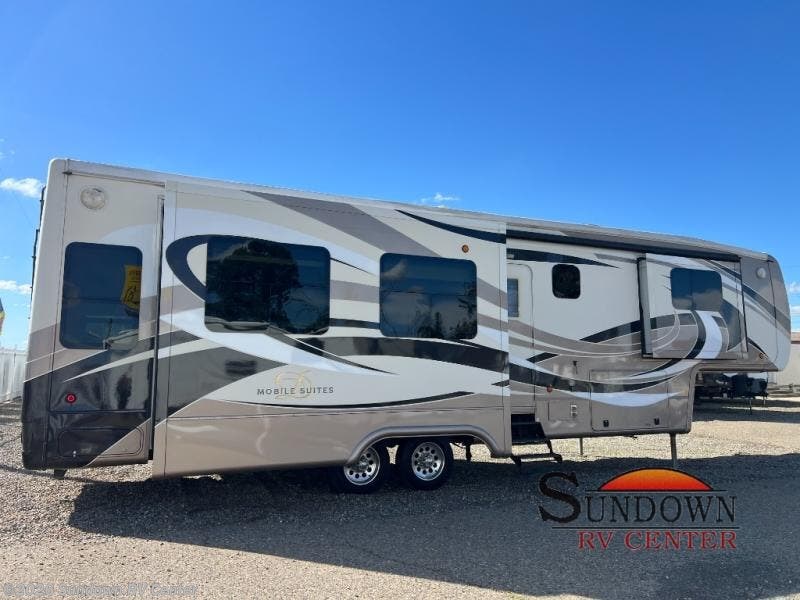 Camp comfortably in this Mobile Suites fifth wheel by DRV Suites. Model 36 RSSB3 offers a spacious rear living layout, a king size bed in the master suite, plus all the amenities you need to enjoy spending time away from home!