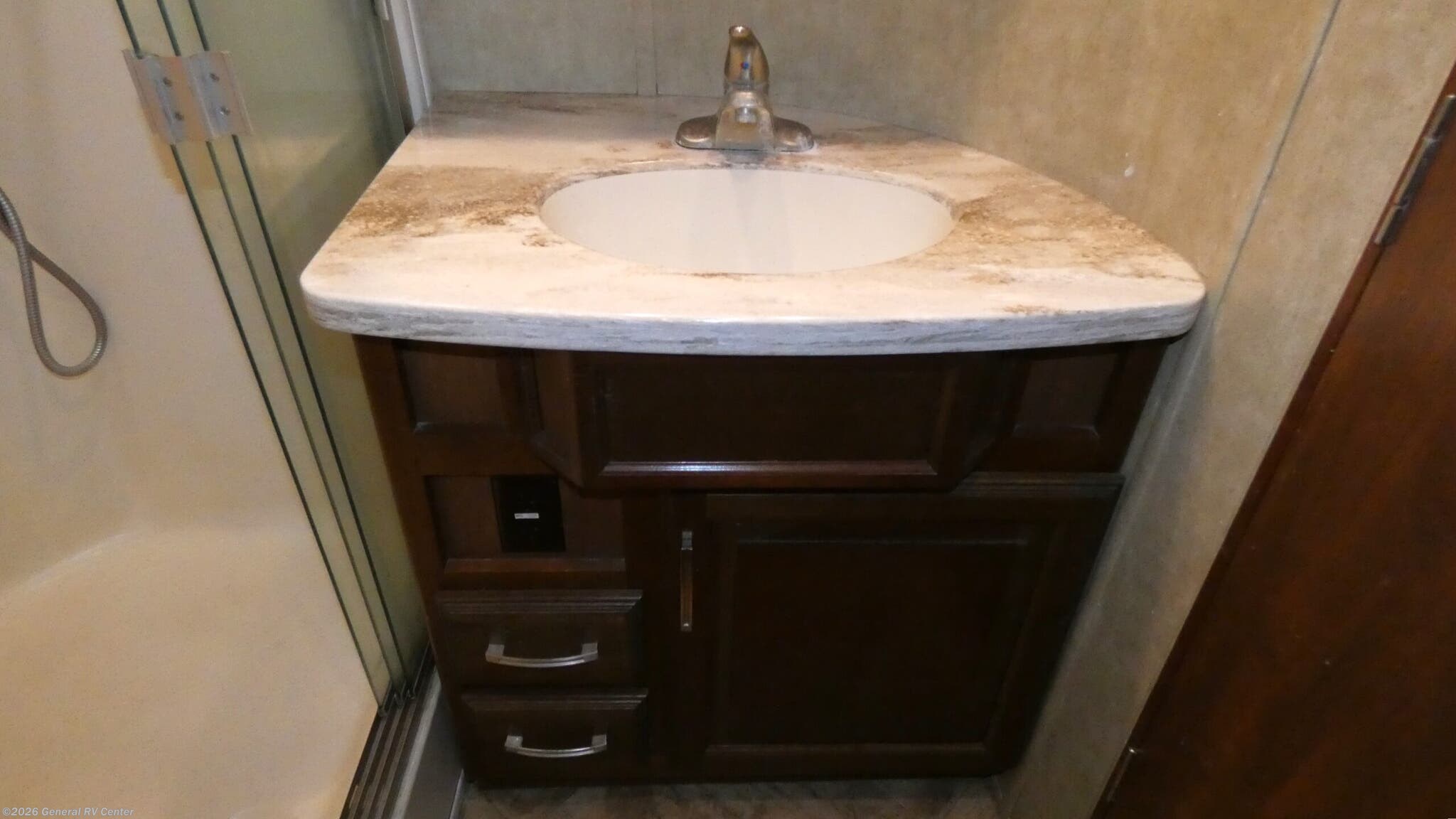 This Mobile Suites fifth wheel 38 RSSA by DRV Suites offers quadruple slide outs for added interior space, a rear living layout, king bed, kitchen island, and so much more! Step inside and be greeted by a wide open concept kitchen and living space with dual opposing slides. To the left of the entry door there is a dinette and two Lane recliners with overhead storage above both. The rear wall features a sofa with end tables and additional storage above. The opposite slide features the kitchen appliances and the living room entertainment center with power lift TV including a fireplace below. In the kitchen area you will find a refrigerator, a three burner range, counter space, and overhead storage in the slide. The convenient island provides more counter space, plus a dishwasher, double sinks, and trash container. Off to the side of the island there is a hutch with upper and lower storage, plus a pantry and electrical closet. To the right of the entry door there are steps that take you to a side aisle bath and front master suite. The bath features a toilet, closet washer/dryer, 32" x 48" tub/shower, and vanity with sink including medicine cabinet. Beyond the bath is a front master bedroom with slide out king size bed. There is a full front wall wardrobe with sliding doors. Inside find a chest and dresser storage. A vanity slide out opposite the bed features drawers and a 26" TV, and so much more!