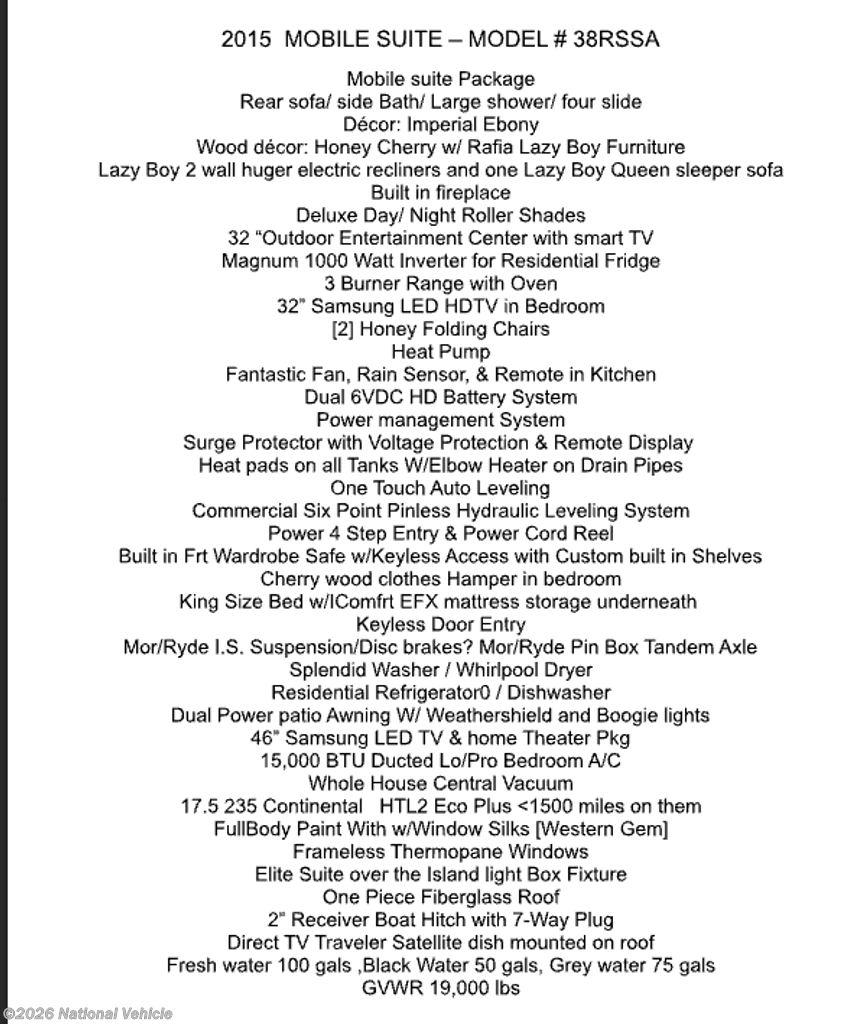Request More Info on this 2015 DRV Mobile Suites 38RSSA Offered for sale by National Vehicle