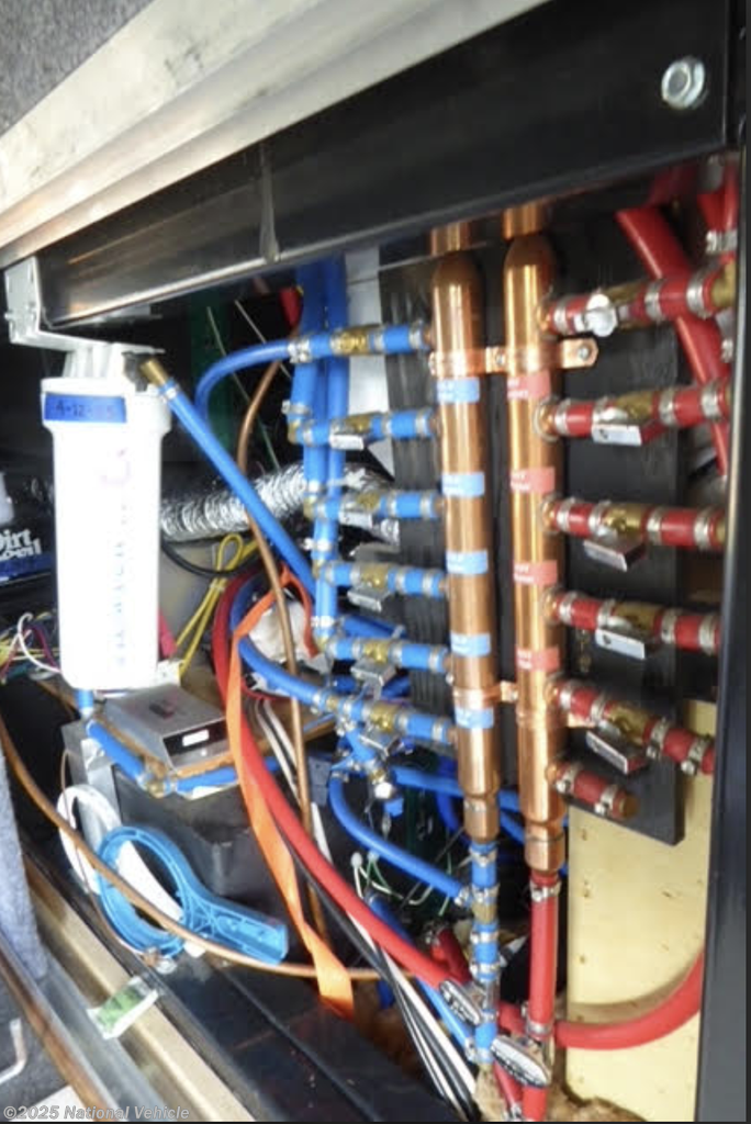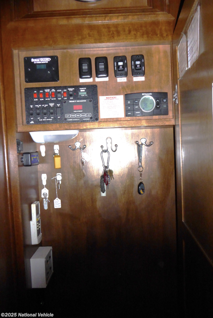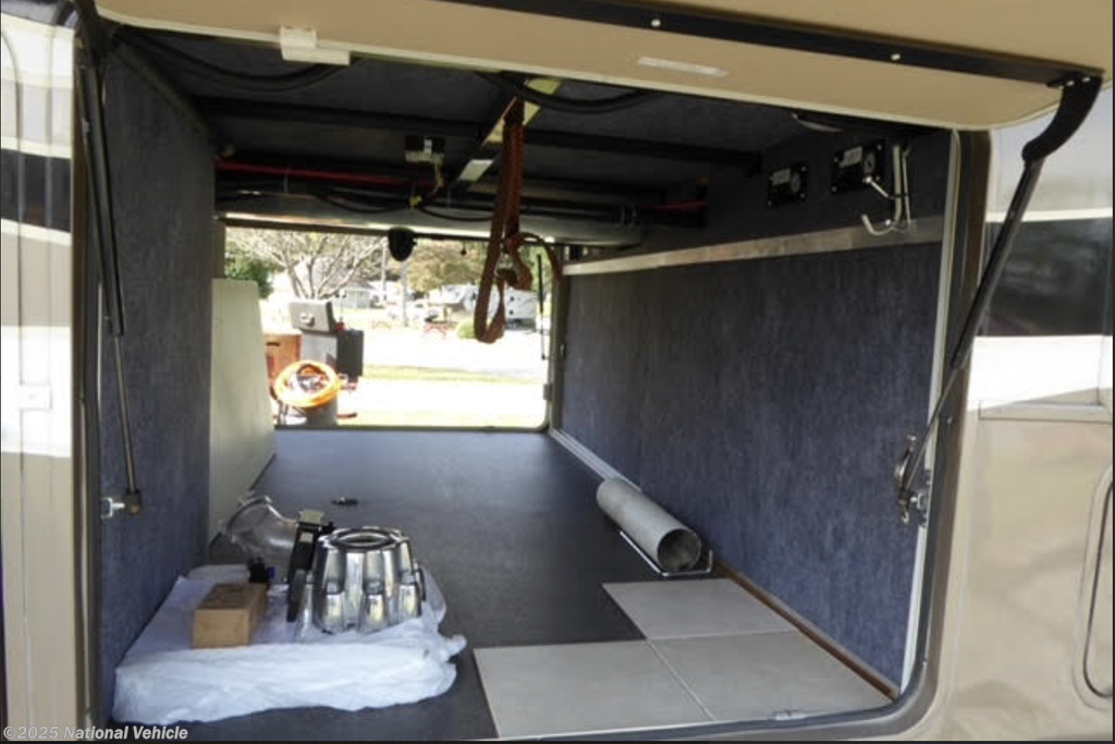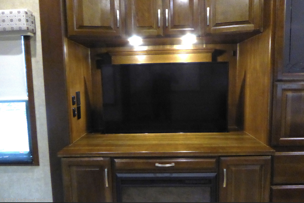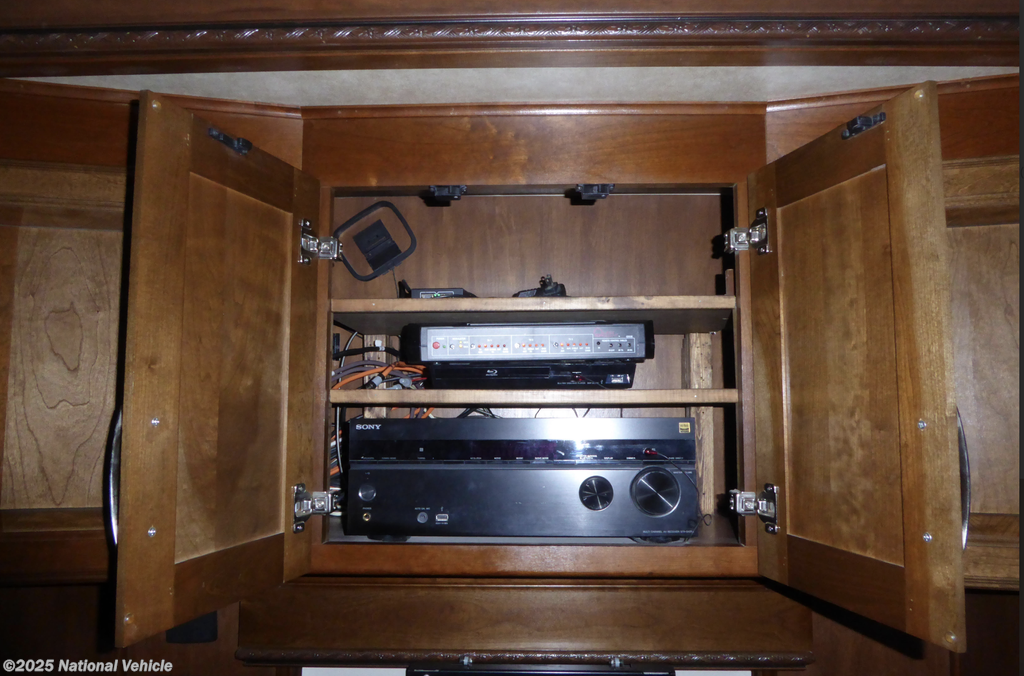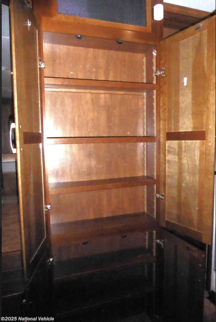 Step inside to a warm and inviting interior featuring quadruple slide-outs that create an expansive living space. The gourmet kitchen is a chef?s delight with solid-surface countertops, a residential refrigerator, convection microwave, three-burner cooktop, oven, and ample cabinetry, making meal preparation easy and enjoyable.