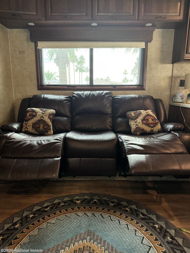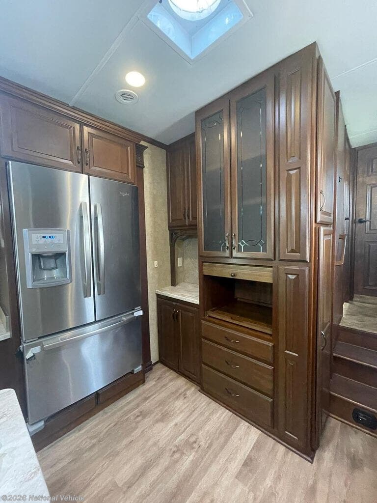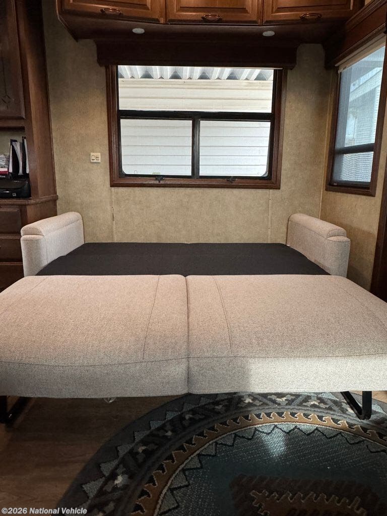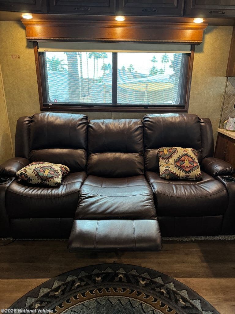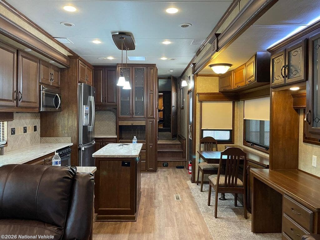 The 2015 DRV Mobile Suites 44 Memphis 46' Fifth Wheel represents the pinnacle of luxury residential RV living, crafted for full-time comfort and long-term travel. Built on DRV?s renowned heavy-duty frame, this high-end fifth wheel delivers exceptional stability, durability, and insulation for all-season use. Inside, the spacious residential-style interior features premium hardwood cabinetry, solid-surface countertops, plush furnishings, and elegant finishes throughout. The expansive living area offers comfortable seating and an inviting atmosphere, while the gourmet kitchen is equipped with residential appliances, ample storage, and generous counter space ideal for extended stays. The private rear master suite provides a true retreat with a king-size bed, abundant closet space, a stackable Splendide washer/dryer, and a spa-inspired bathroom designed for comfort and convenience. With superior construction, upscale appointments, and thoughtful design from front to back, the Mobile Suites 44 Memphis is an outstanding choice for discerning RVers seeking luxury, reliability, and a true home-on-wheels experience.