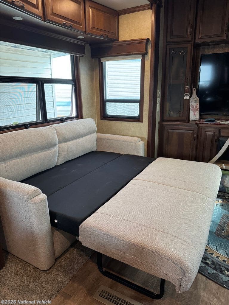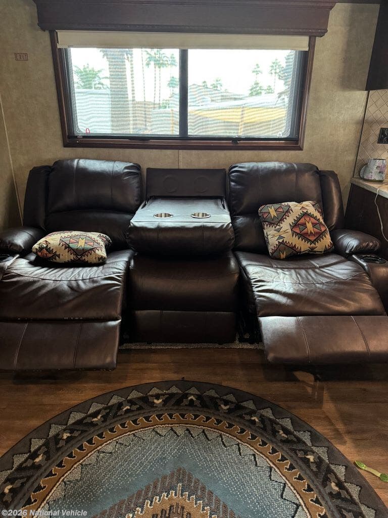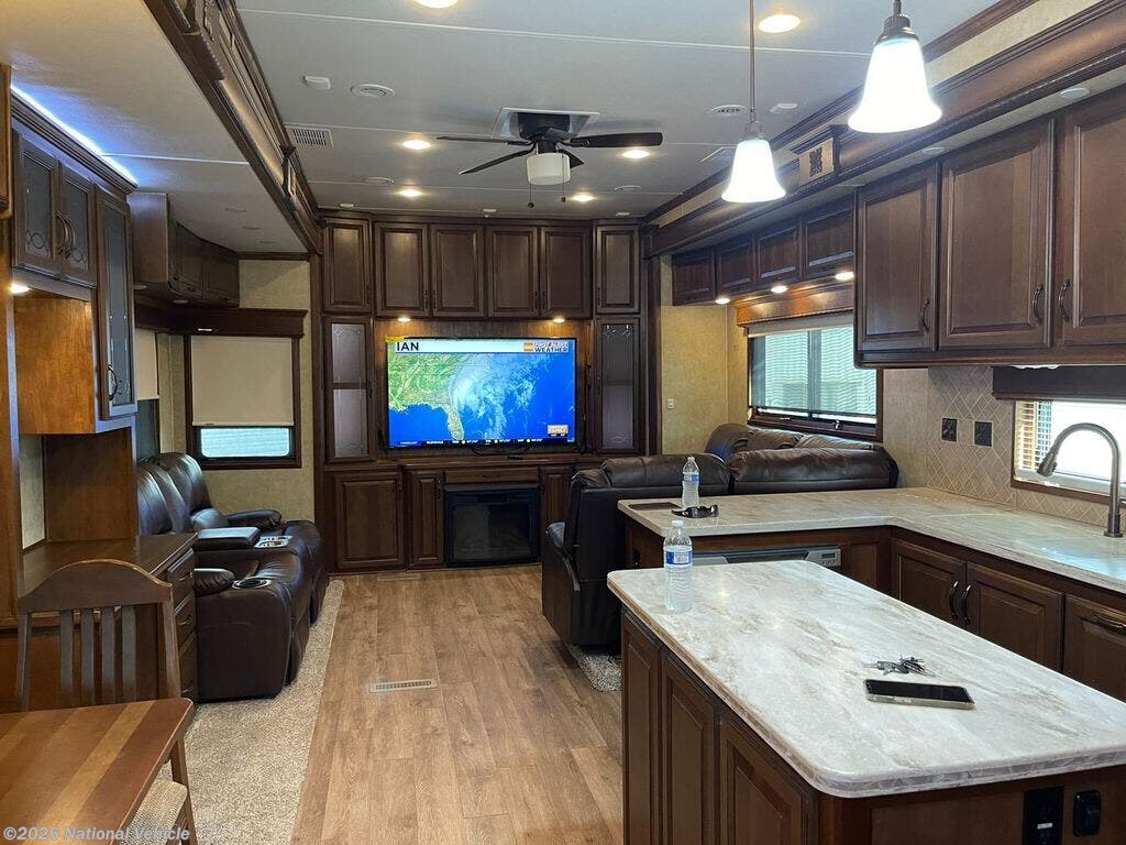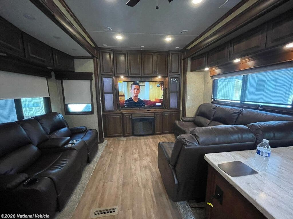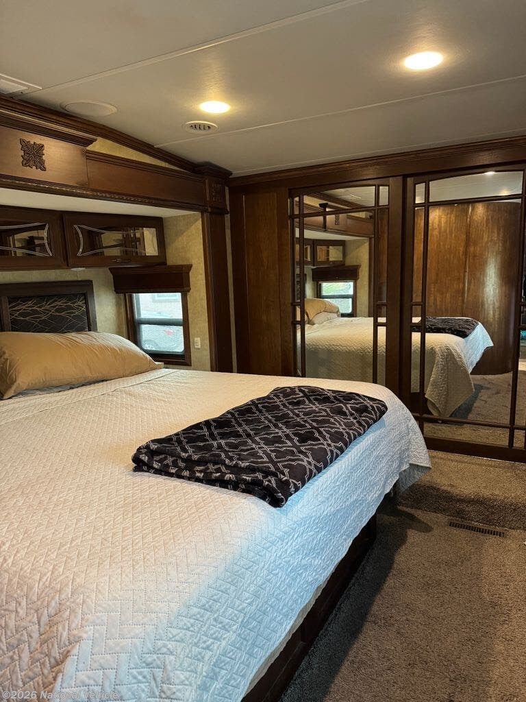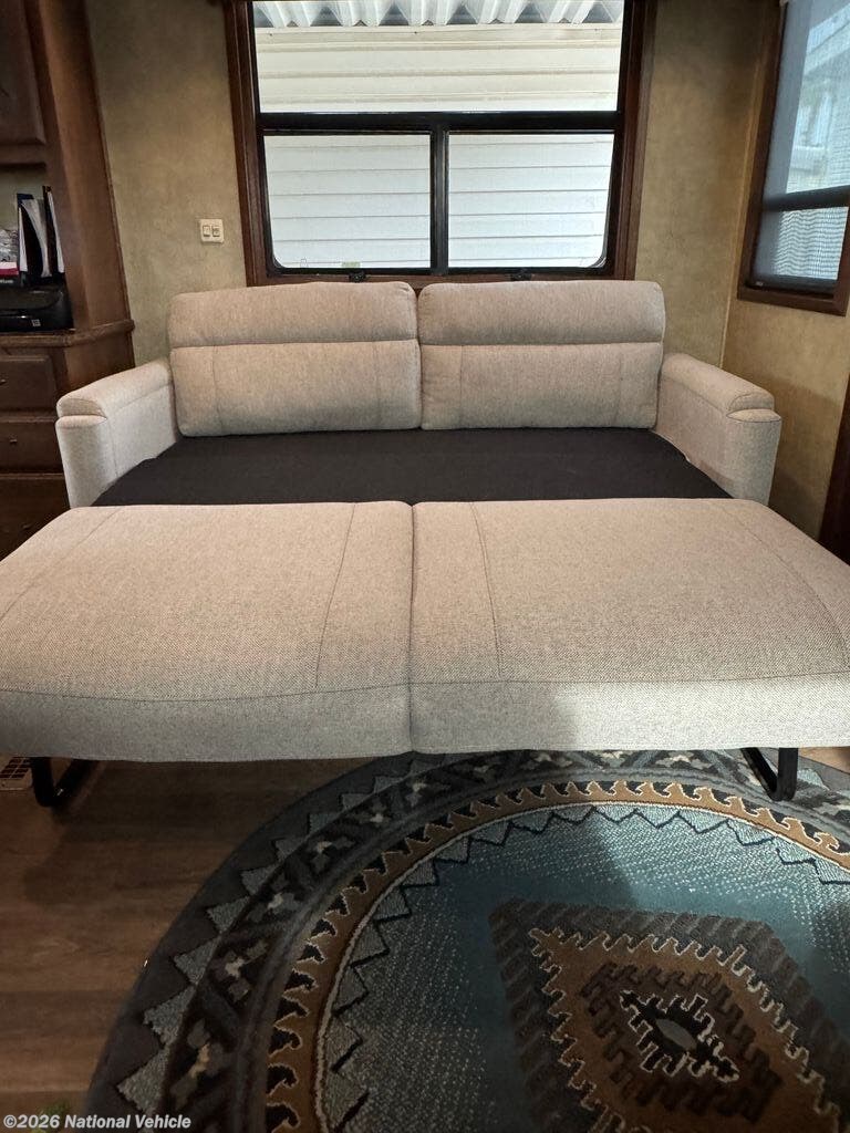 The 2015 DRV Mobile Suites 44 Memphis 46' Fifth Wheel represents the pinnacle of luxury residential RV living, crafted for full-time comfort and long-term travel. Built on DRV?s renowned heavy-duty frame, this high-end fifth wheel delivers exceptional stability, durability, and insulation for all-season use. Inside, the spacious residential-style interior features premium hardwood cabinetry, solid-surface countertops, plush furnishings, and elegant finishes throughout. The expansive living area offers comfortable seating and an inviting atmosphere, while the gourmet kitchen is equipped with residential appliances, ample storage, and generous counter space ideal for extended stays. The private rear master suite provides a true retreat with a king-size bed, abundant closet space, a stackable Splendide washer/dryer, and a spa-inspired bathroom designed for comfort and convenience. With superior construction, upscale appointments, and thoughtful design from front to back, the Mobile Suites 44 Memphis is an outstanding choice for discerning RVers seeking luxury, reliability, and a true home-on-wheels experience.