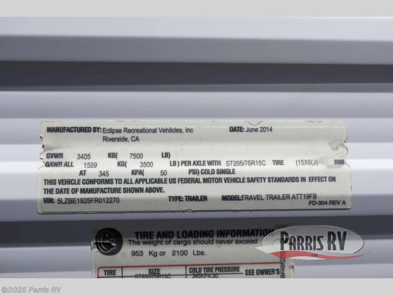 Request More Info on this 2015 Eclipse Attitude Metal 19FB Offered for sale by Parris RV