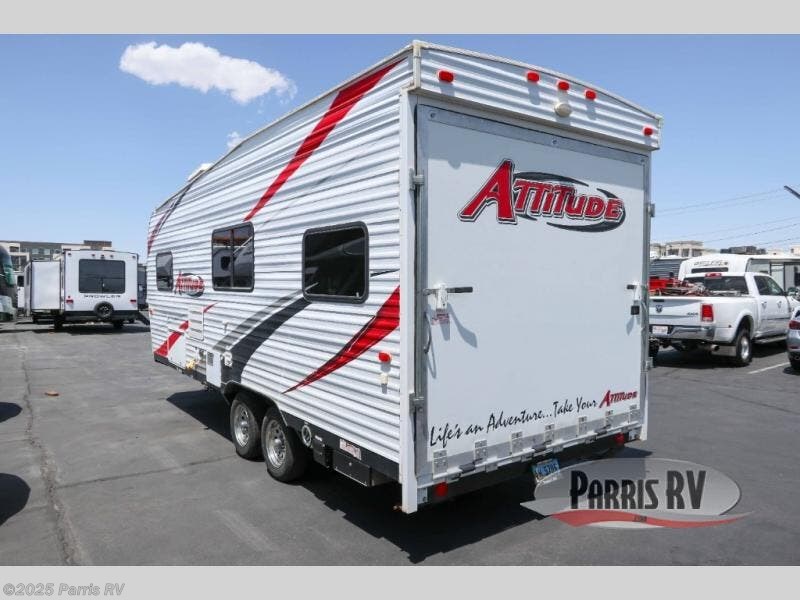 The Attitude Metal 19FB toy hauler travel trailer by Eclipse offers plenty of cargo area for hauling your off-road toys.