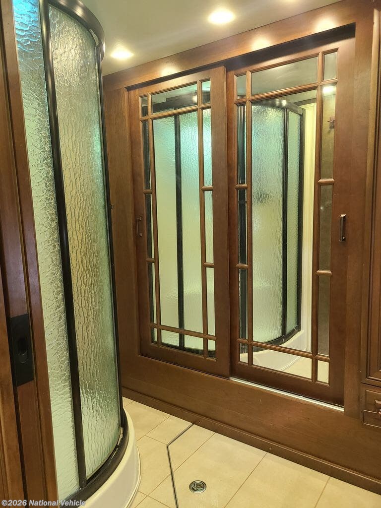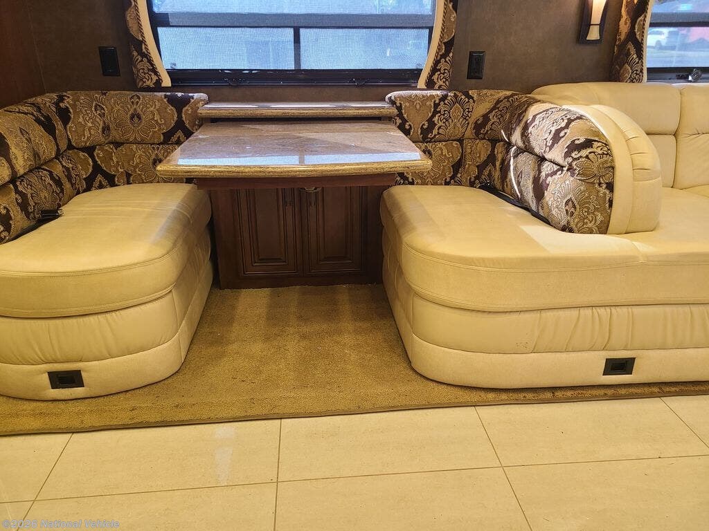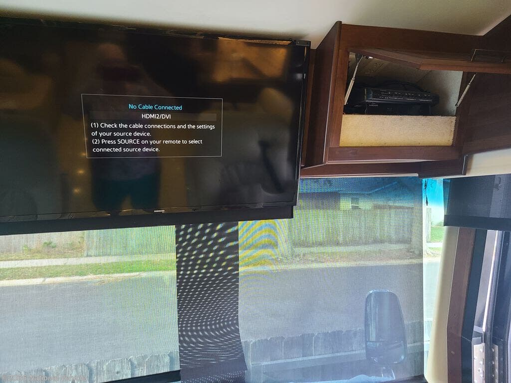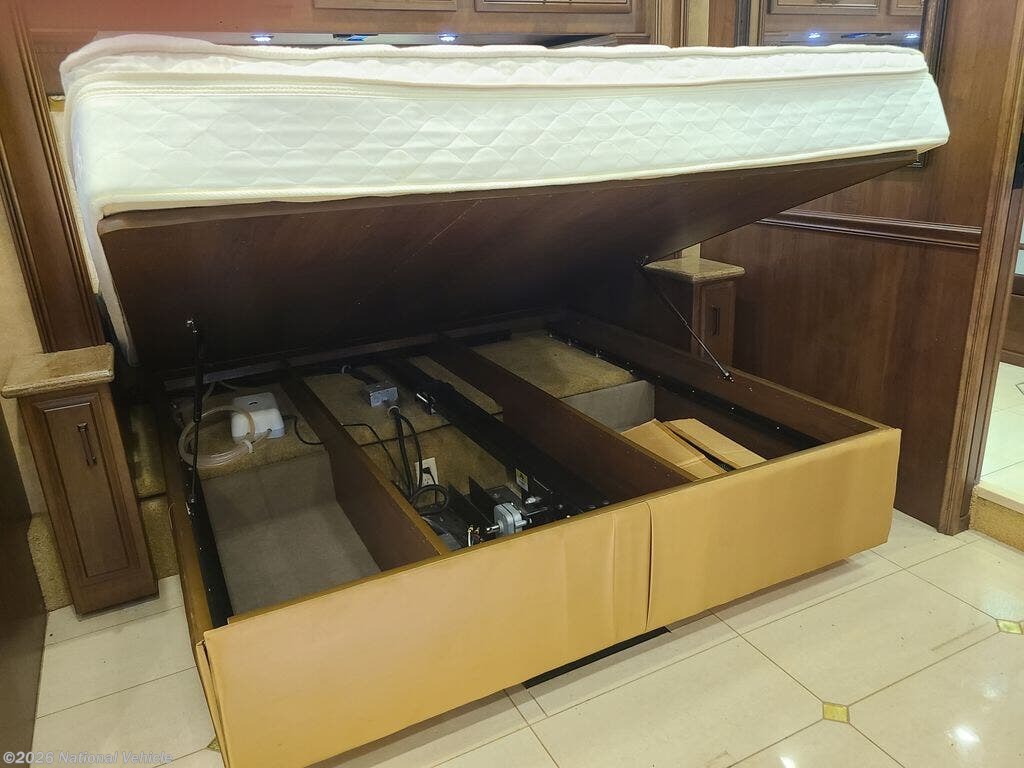 We are the second owner of this RV. Only taken two trips in it. That is why it has low mileage. Just put new tires, house batteries, and drive batteries. Long driver side slide out has couch turn in bed for one. Also dinning table, full size refrigerator. Passenger side slide out, has small couch sleep two. Kitchen cabinets and gas stove, microwave, and sink. Small bathroom, Master bed King size and bathroom stand up shower, side by side closet, toilet and stackable washer and dryer. TV and DVD player in main bedroom, eight drawers for storage. Front driver and passenger has full size R. Under dinner table Boss sound system. Outside TV with full size awning cover. Generator located in front of RV. We've added a front stabilized bar.