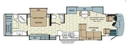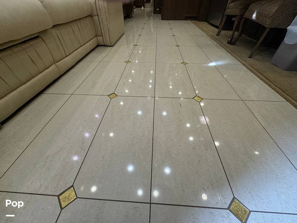 Upon entering the coach, the eye-catching design is immediately noticed. The beautiful tile floors are tasteful, and the shiny hardwood cabinetry gives off a warm glow under the numerous ceiling LED lights.
