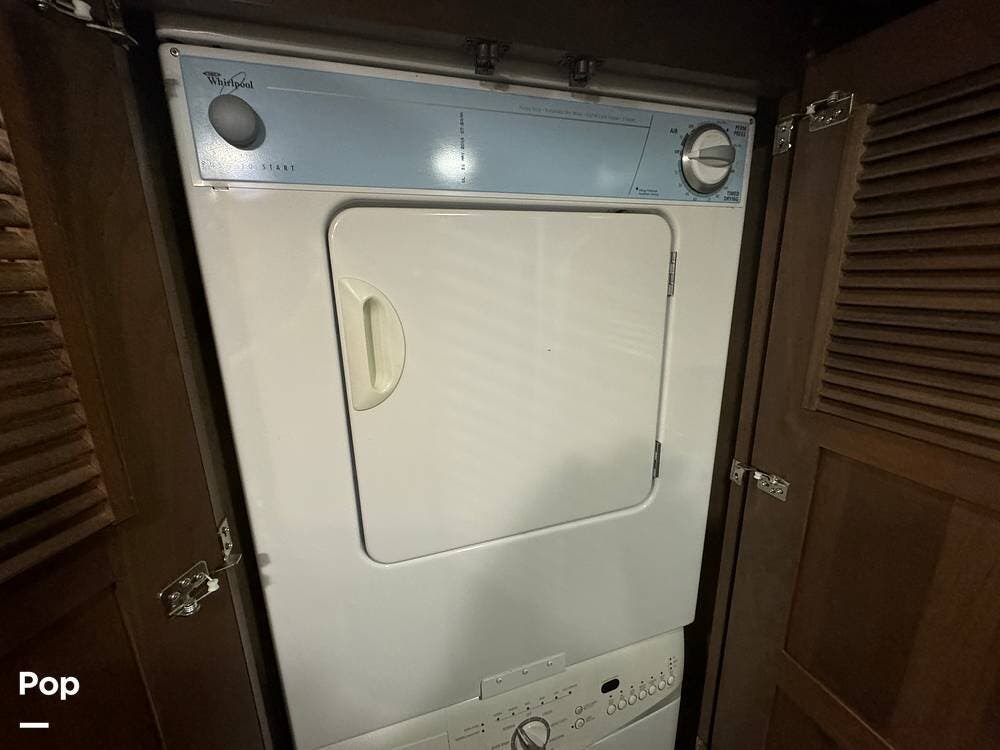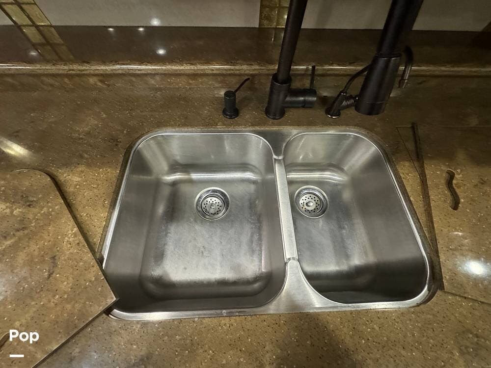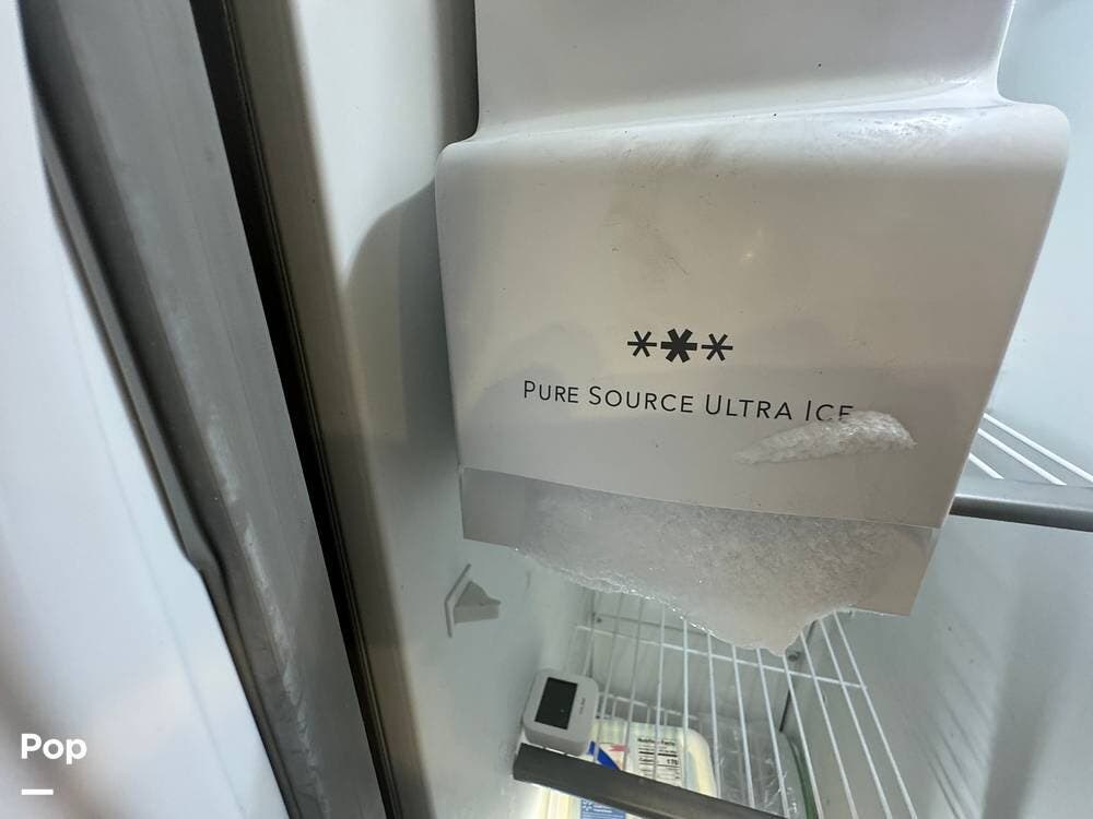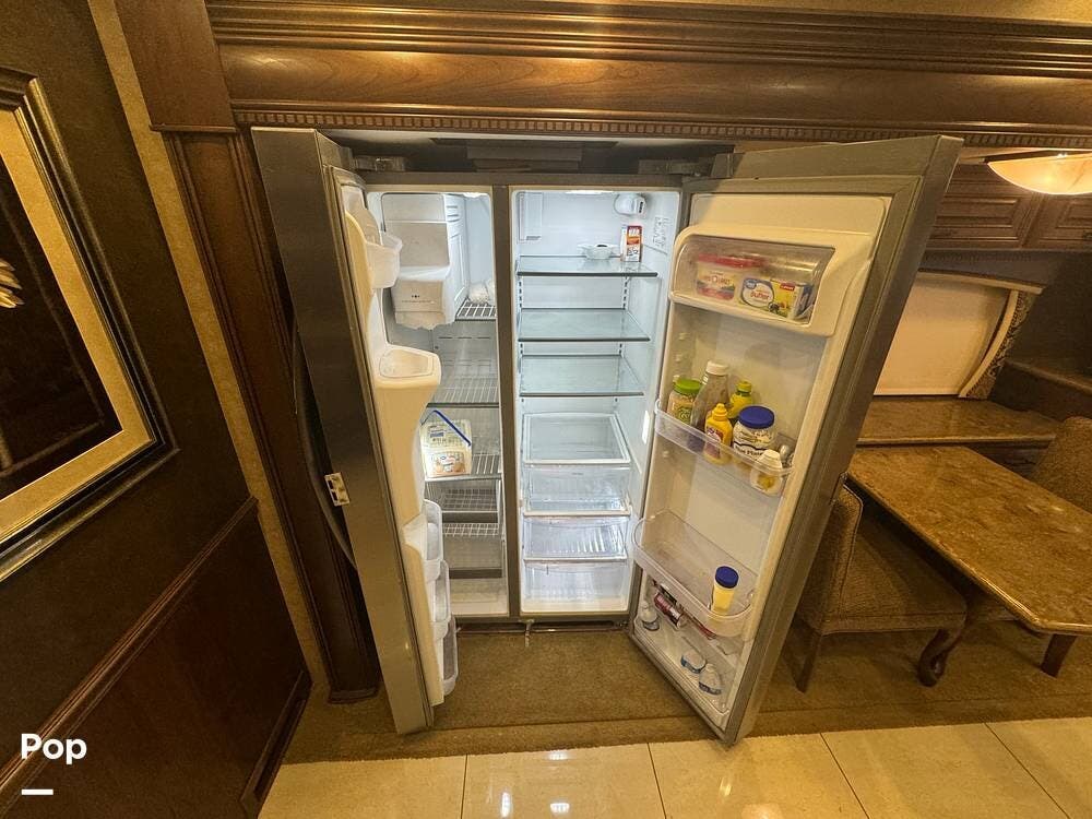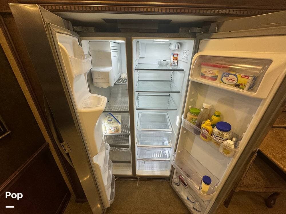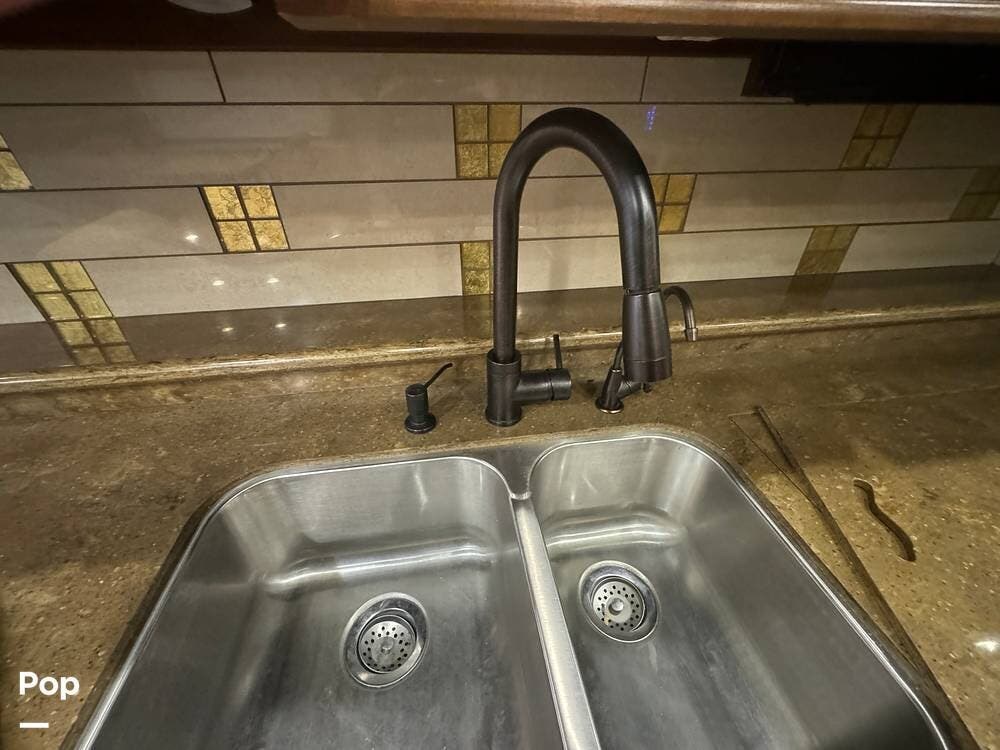 In the kitchen, you will find a microwave/convection oven, a cooktop, and a double sink, all built into beautiful countertops with counter backsplashes. The residential-size refrigerator/freezer with an ice maker.
