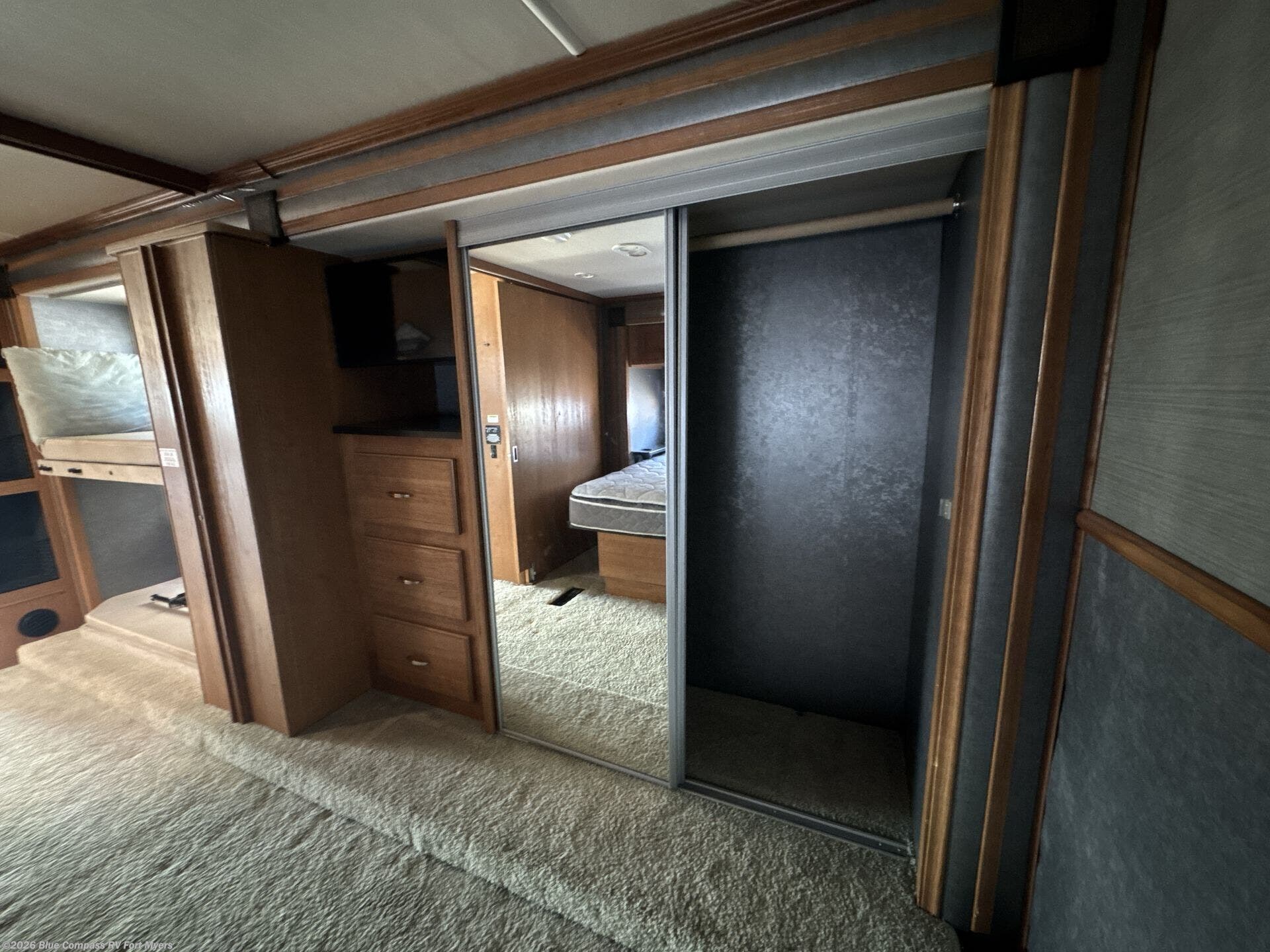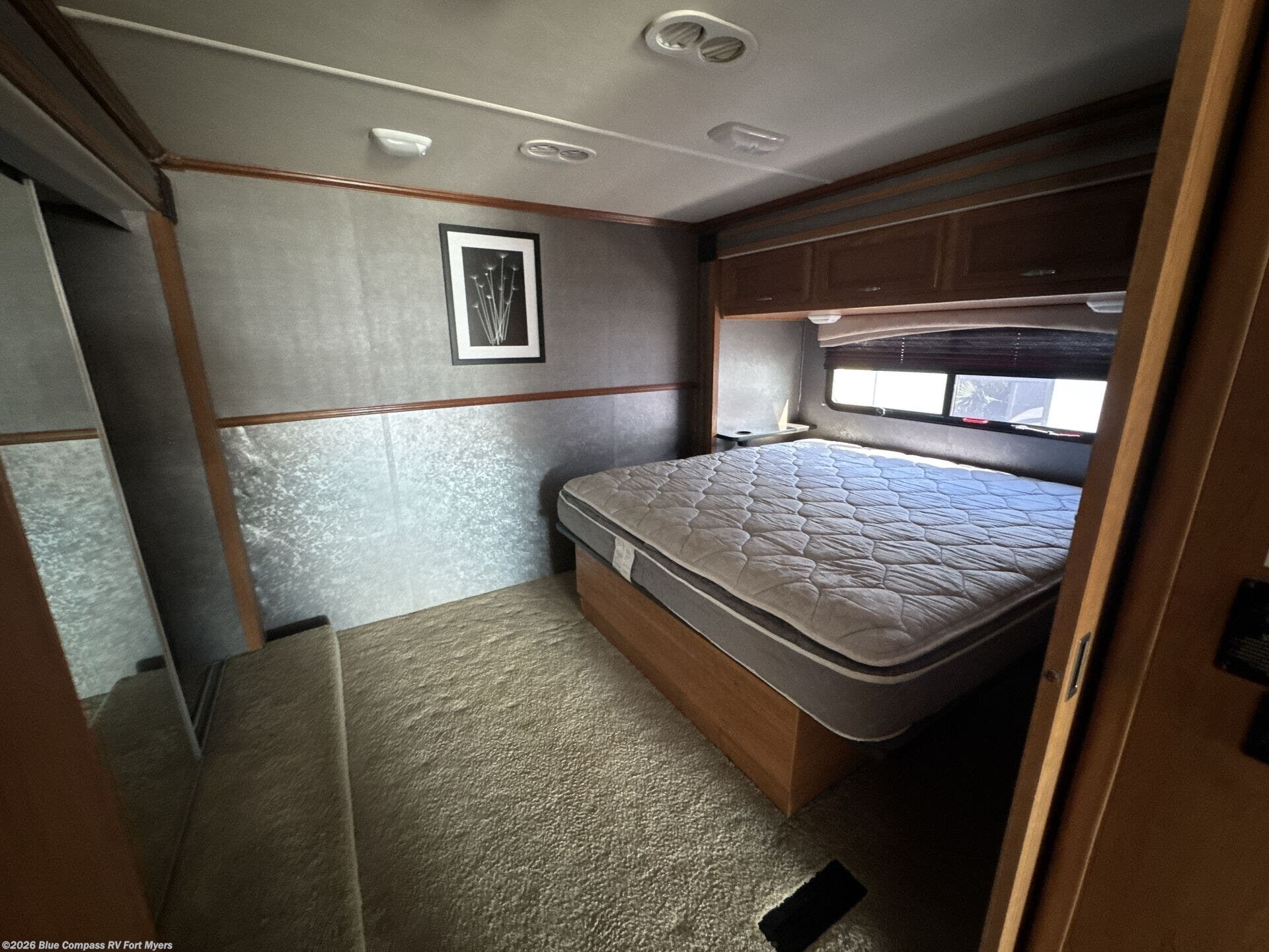 There are plenty of overhead cabinets throughout this motor home. You can even choose many options, such as a 19" LCD tv, dual flatpanel monitors, king bed, and dual wardrobes.