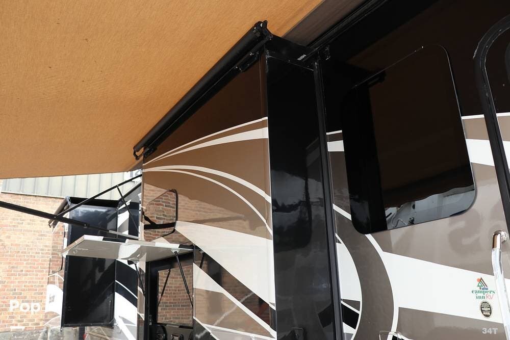 The exterior TV and stereo system, plus the powered patio awning with integrated LED lighting, will be nice features for you and your family to enjoy at an RV park or tailgating party. The exterior refrigerator is another great feature!