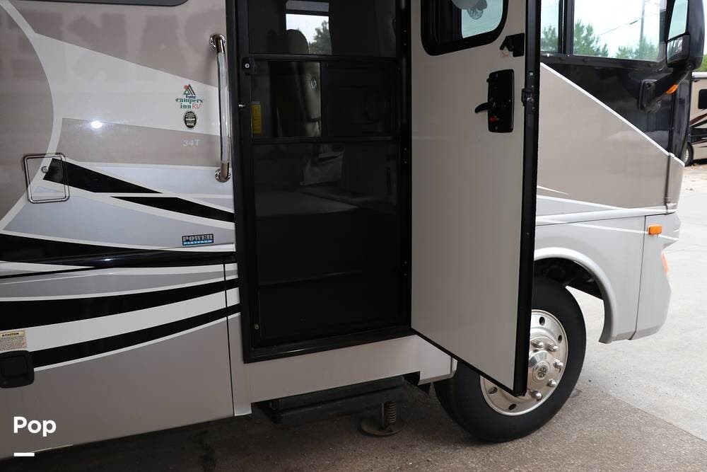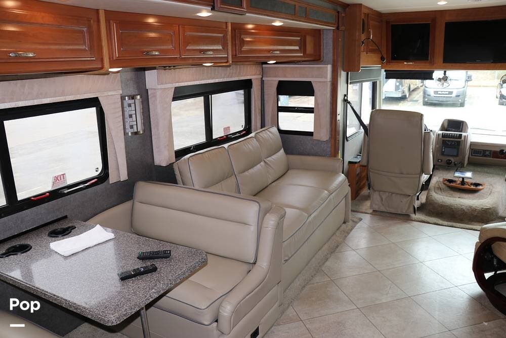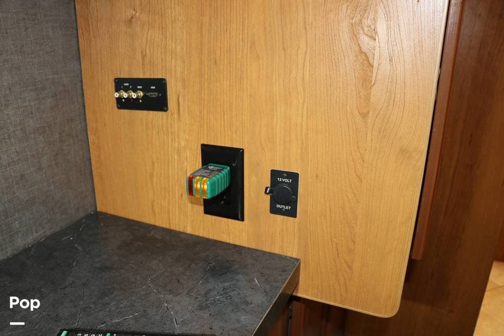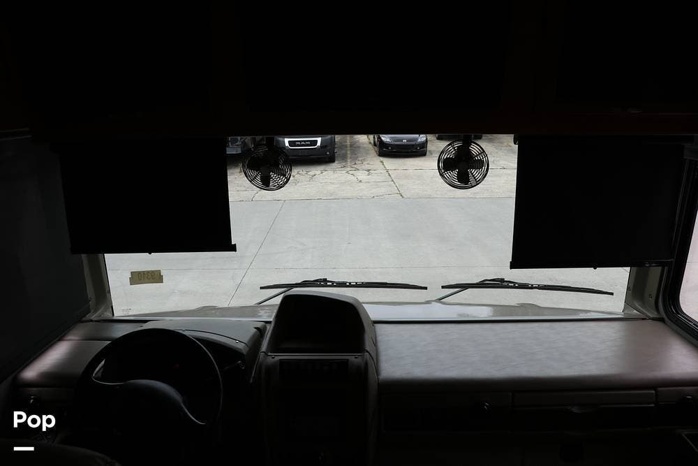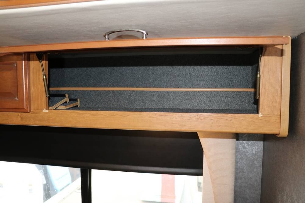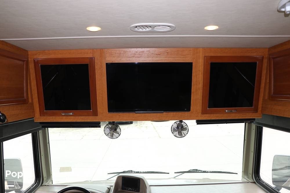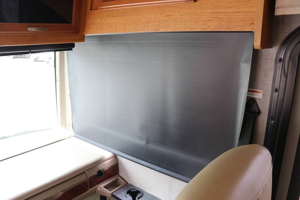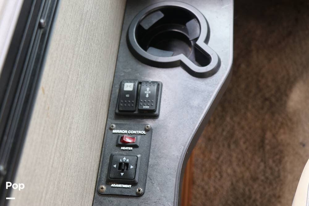 The layout is spacious and comfortable from the moment you step into the RV - The cockpit includes many features to make your drive more enjoyable - privacy drape over the windows - defroster fans - cruise control - intermittent wipers - auxiliary driving lights - back up monitor with tilt camera - and heated/power external mirrors w/ integrated turning cameras for enhanced safety on the road.