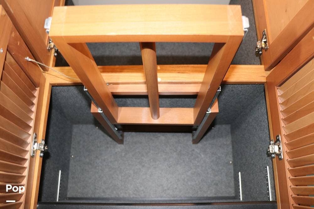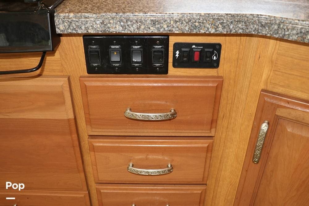 The Galley has a convection microwave and a 3-burner gas cooktop with iron grating. The large double kitchen sink with a gooseneck faucet/pull-down sprayer has matching covers for the sink to provide great countertop working space when needed. The three-door refrigerator/freezer with an internal ice maker is great for entertaining or just a quick drink on the go. Plenty of cabinets are above and below the solid surface countertop for storage space. The large dinette provides a great space to enjoy a good meal or play a game with family and quickly converts into another sleeping area if needed!