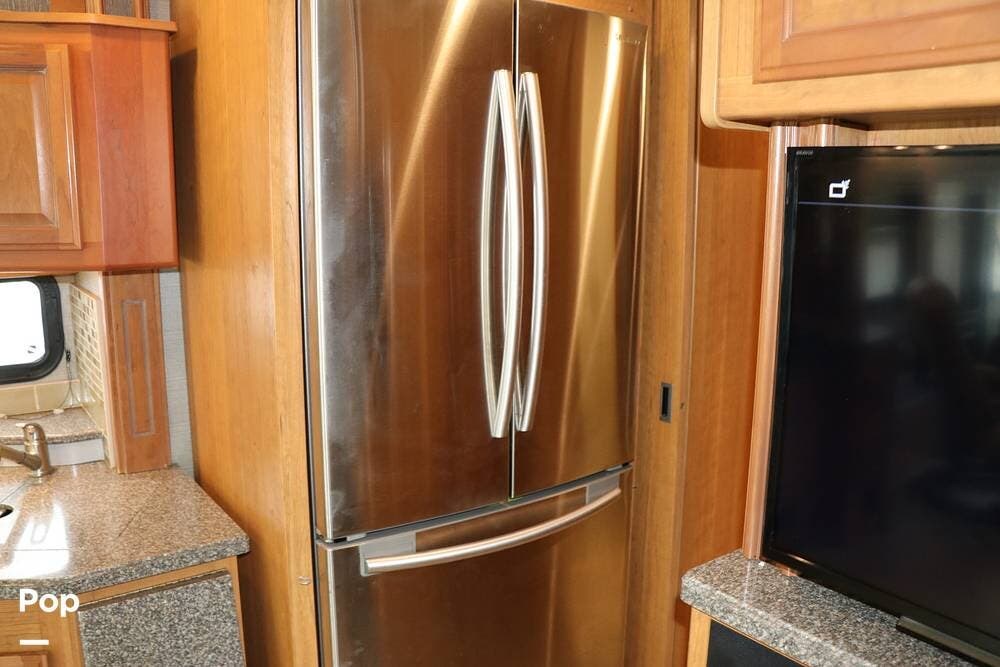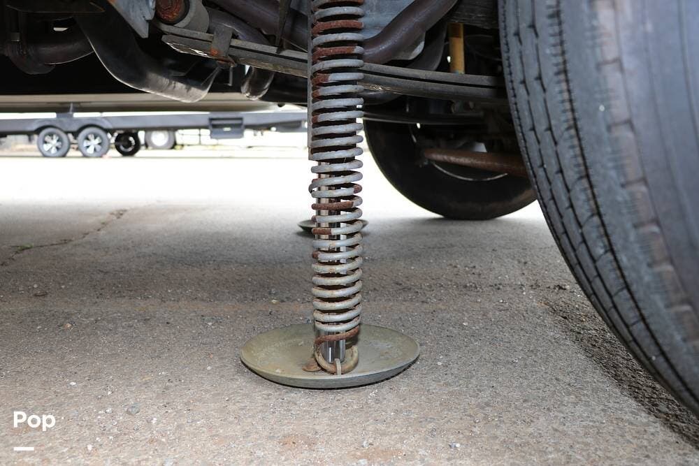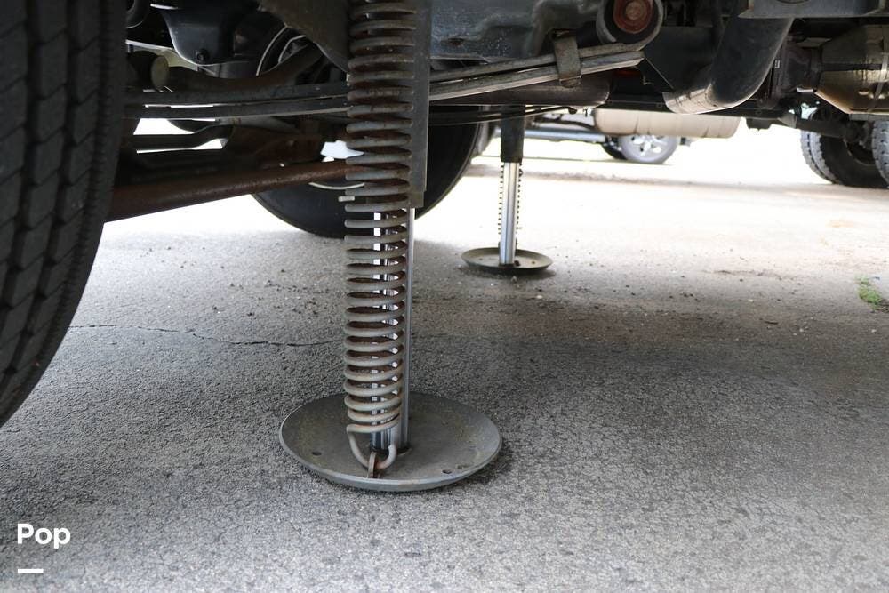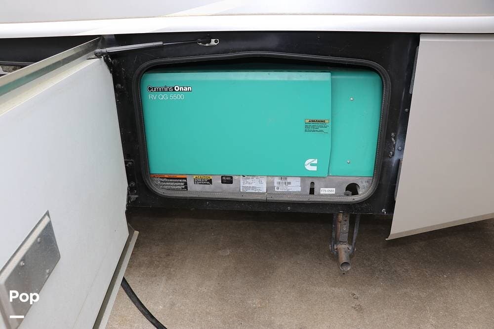 Items of note: Automatic Hydraulic Leveling Jacks, Onan Quiet Gas 5500 Watt Generator, Upgraded 15,000 BTU Dual Ducted Front/Rear Air Conditioners, and Residential Stainless Steel Refrigerator. The rear-mounted ladder makes for quick and easy access to the roof.