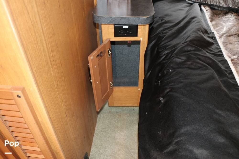 The master suite provides a great space for privacy and comfort - featuring a queen bed with cabinets overhead for storage. The clock radio/DVD/CD player and the TV in the bedroom allow you to watch movies in bed. The bedroom area has lots of storage space - above the bed and in the closet. The floor-to-ceiling mirrors on the sliding door closet make the room feel large. Windows in the bedroom bring in natural light - use the window drapes for privacy when needed.