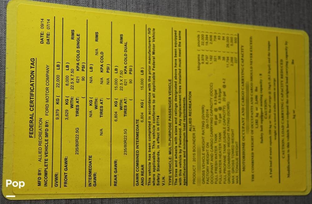 Looking for a Great Class A RV for your family's next adventure? Look no further. This lovely 2015 Bounder 34T is built on a Ford Chassis and powered by a Triton V10 engine with 362 horsepower. It will get you down the road safely and quickly--while sipping fuel along the way.