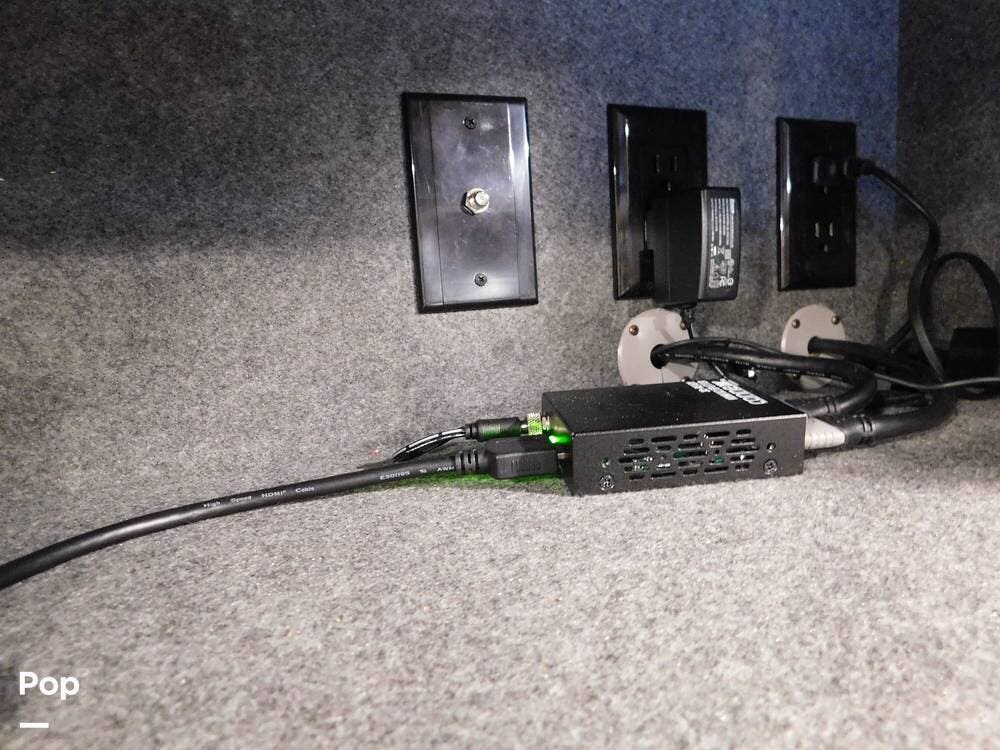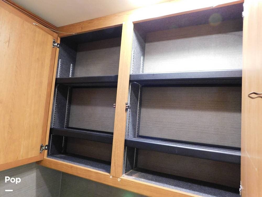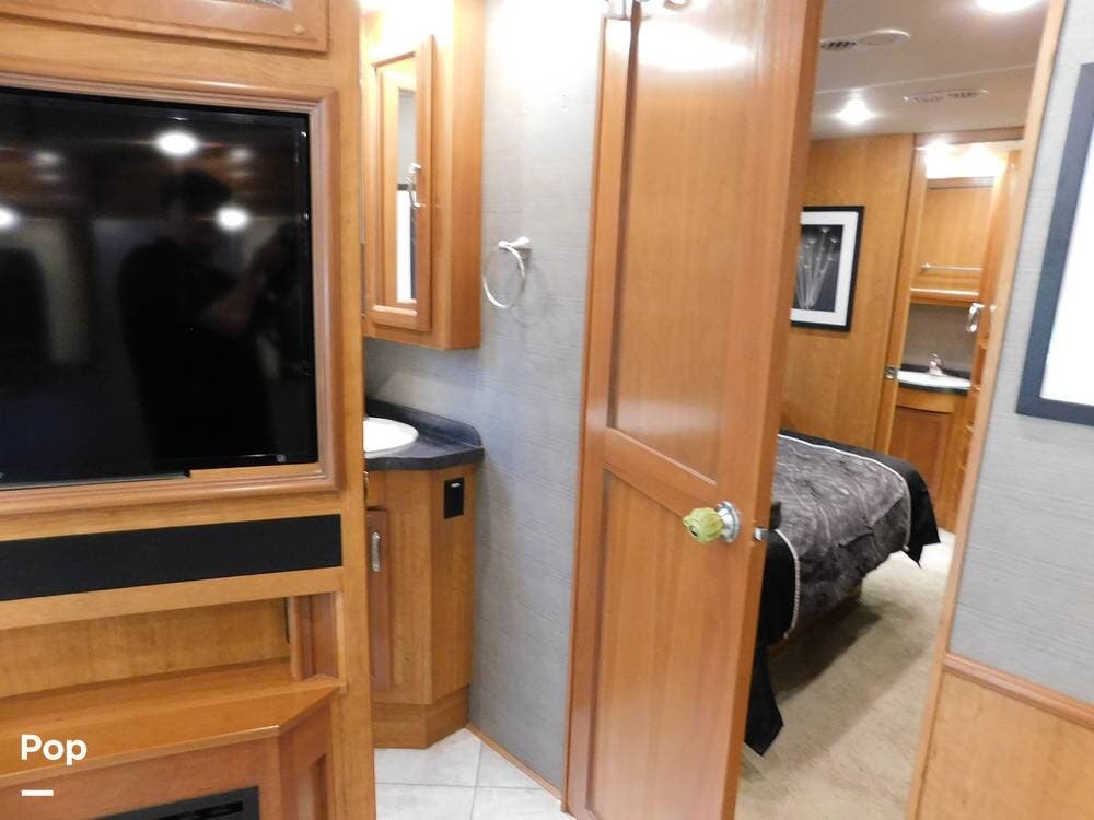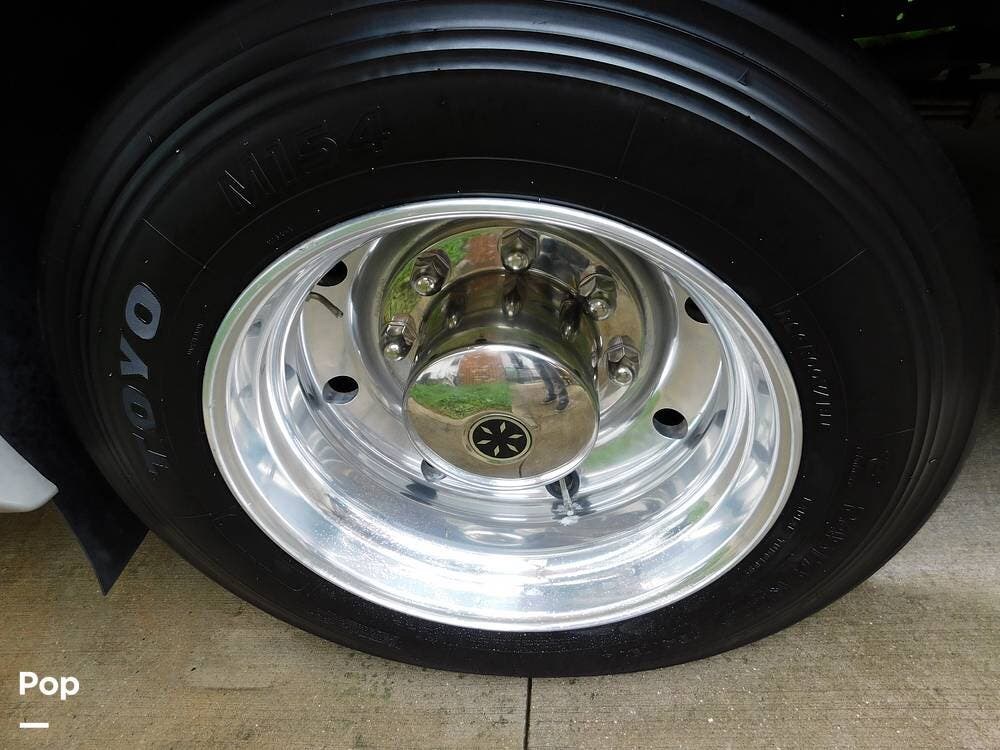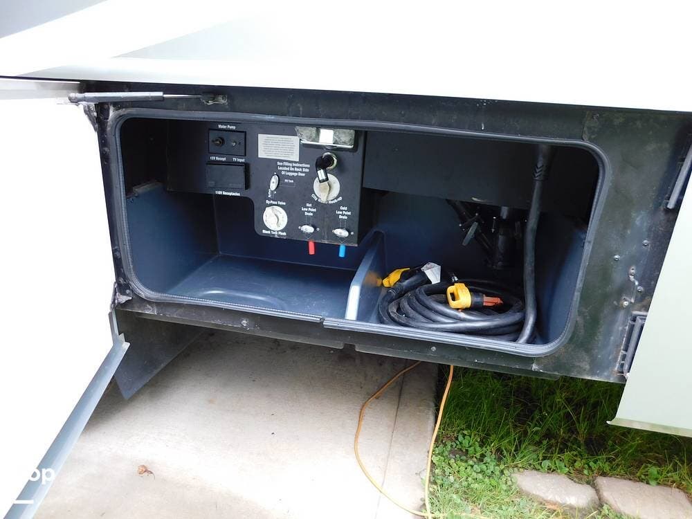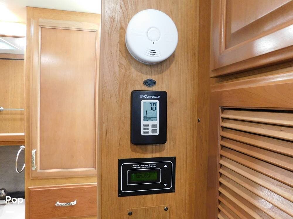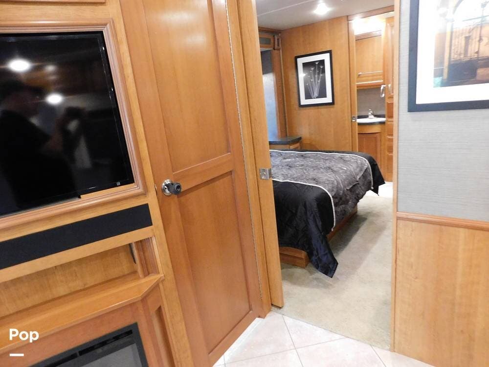 For entertainment, the Bounder 35K features multiple flat-screen TVs, including one in the living area with a cozy fireplace beneath, another in the bedroom, and an exterior TV for outdoor viewing. The RV is pre-wired for satellite and cable, and offers surround sound speakers for a theater-like experience. Climate control is managed by dual air conditioning units and a powerful furnace, ensuring comfort in both hot and cold weather.