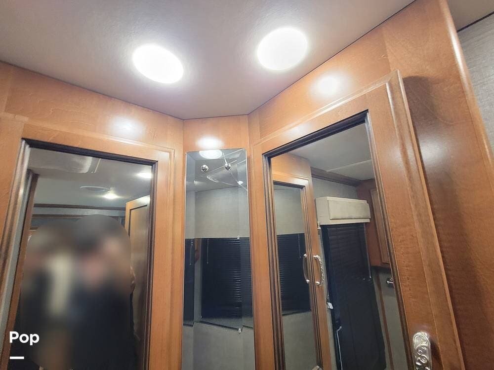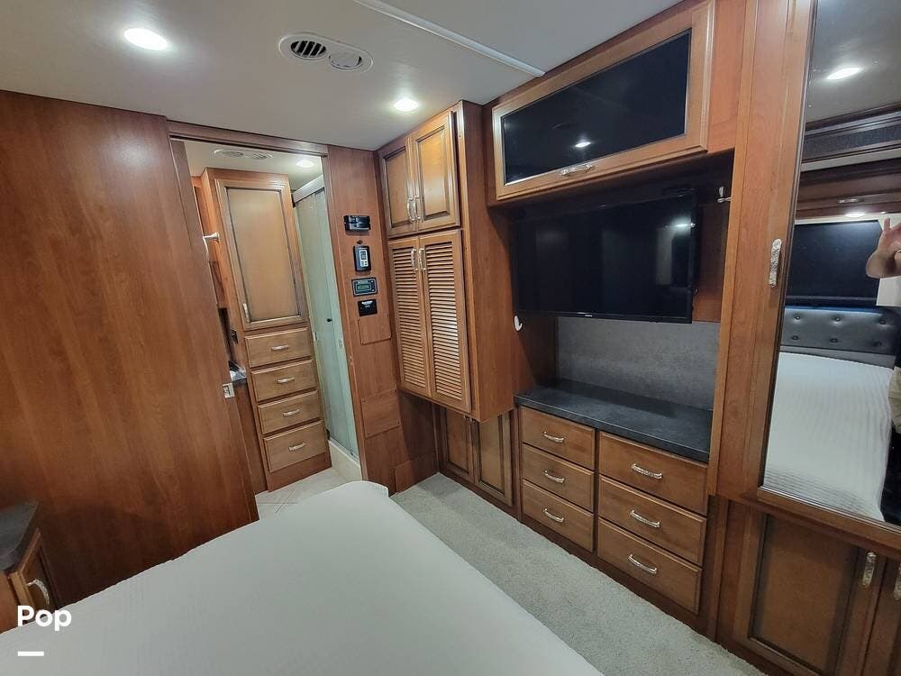 For great convenience, there is a large half bath centrally located. The bedroom is surrounded by beautiful woodwork cabinetry. There is a TV to enjoy while in bed.