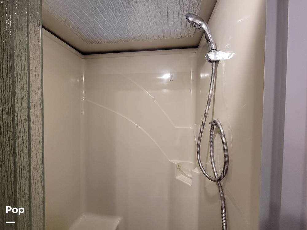The bathroom is to the rear of the coach. It is equipped with a Vacuflush toilet, and on the opposite side is a large shower.