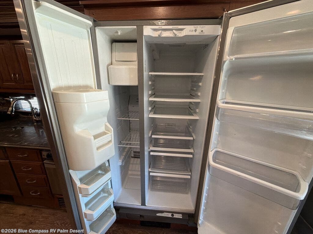 There is plenty of storage with the overhead cabinets that are throughout the motor home. There are many options that you can choose to go along with your motor home, such as a front 32" LCD TV, exterior entertainment center, dishwasher, three burner range with oven, residential refrigerator, u-shaped dinette and sofa, facing dinette, king bed with air mattress, vanity with sink, or a desk.
