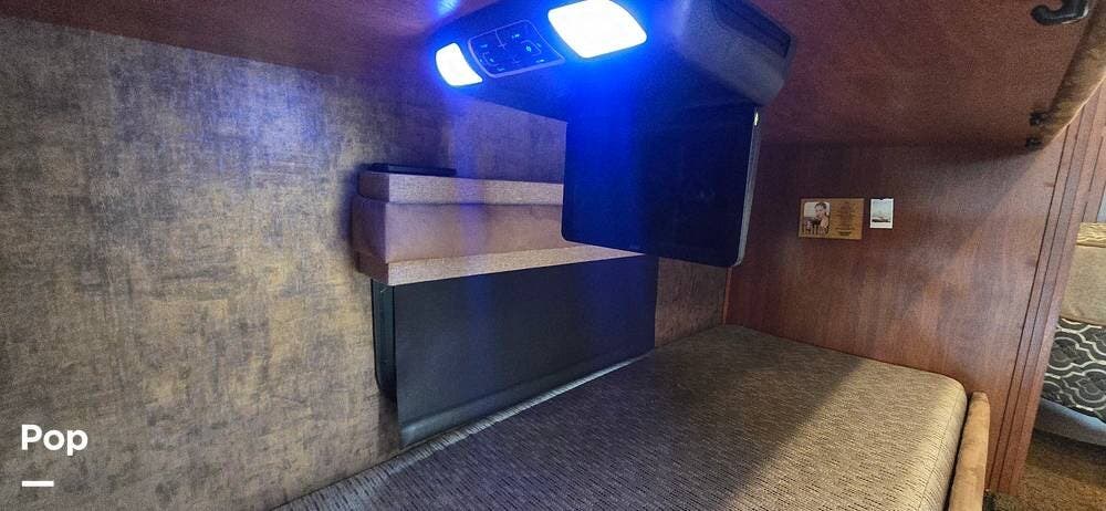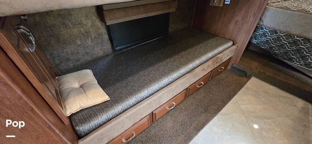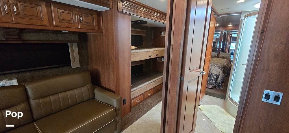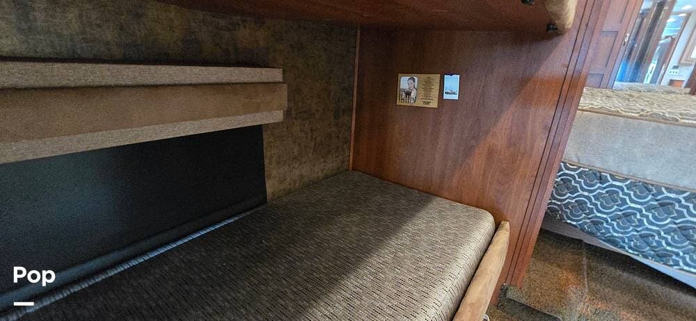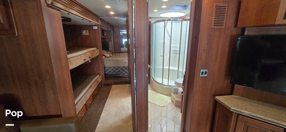 Mid-coach, this Discovery 40G features a dedicated bunk area, ideal for kids or guests, with dual bunk beds situated across from the bathroom. Each bunk has its own entertainment hookups, as well as storage drawers and windows, making this a family-friendly layout ideal for long journeys.