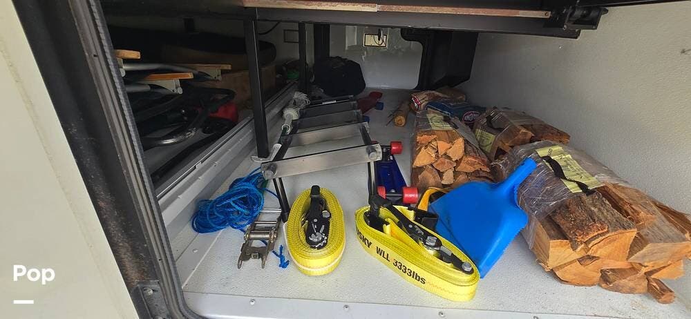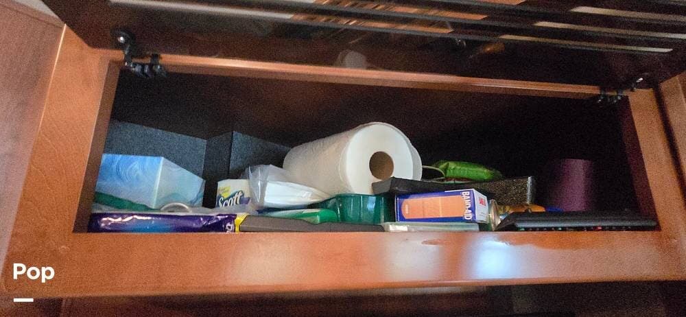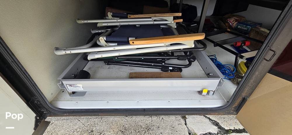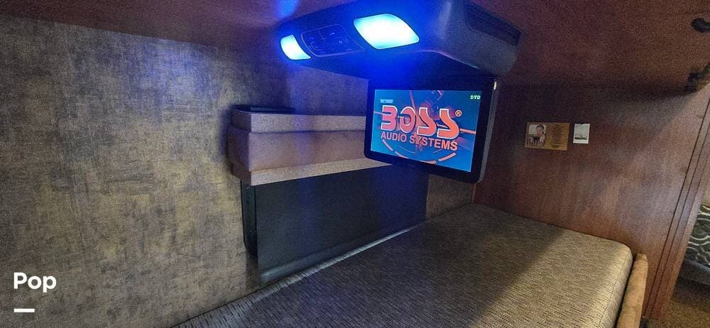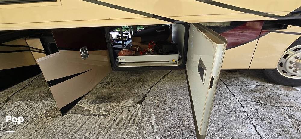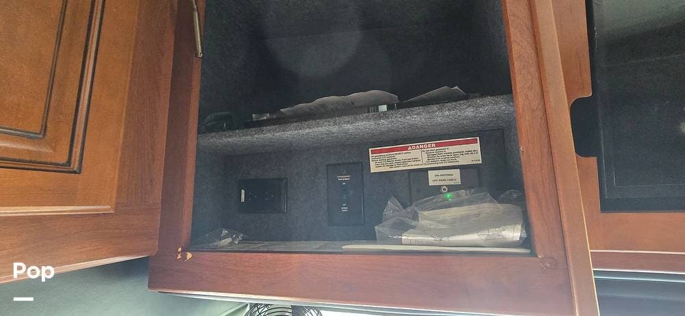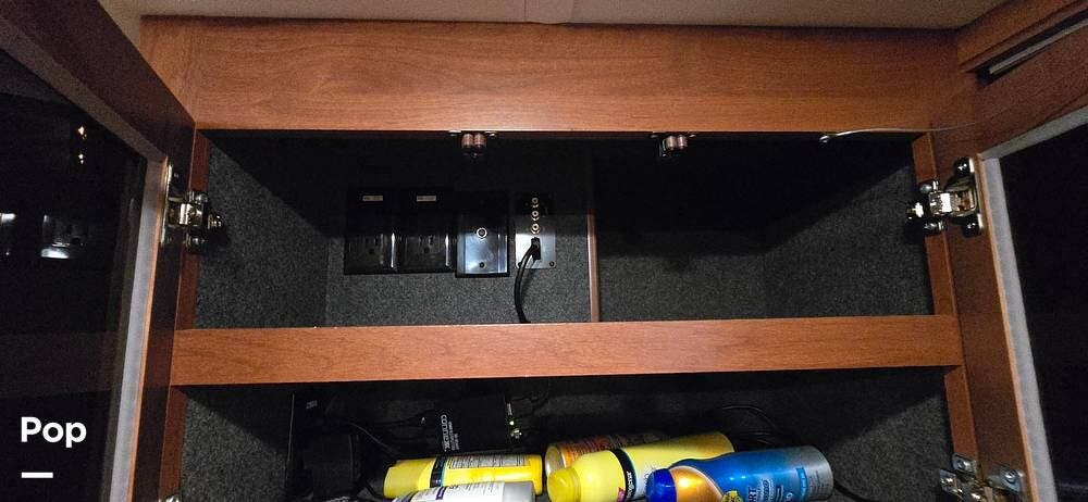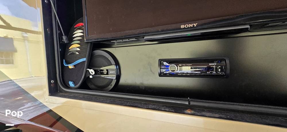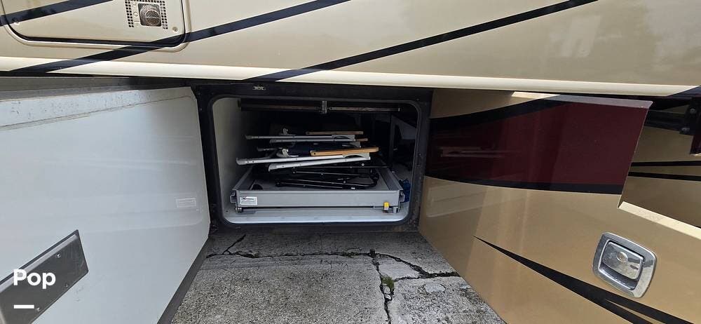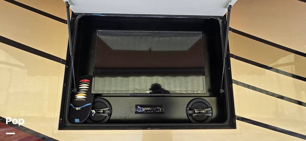 To add to your outdoor entertainment this 2015 Discovery 40G has the optional Exterior Entertainment Center w/Sony 32" LED HDTV and High Output, splashproof AM/FM/DVD Sound System.