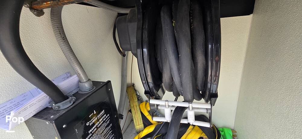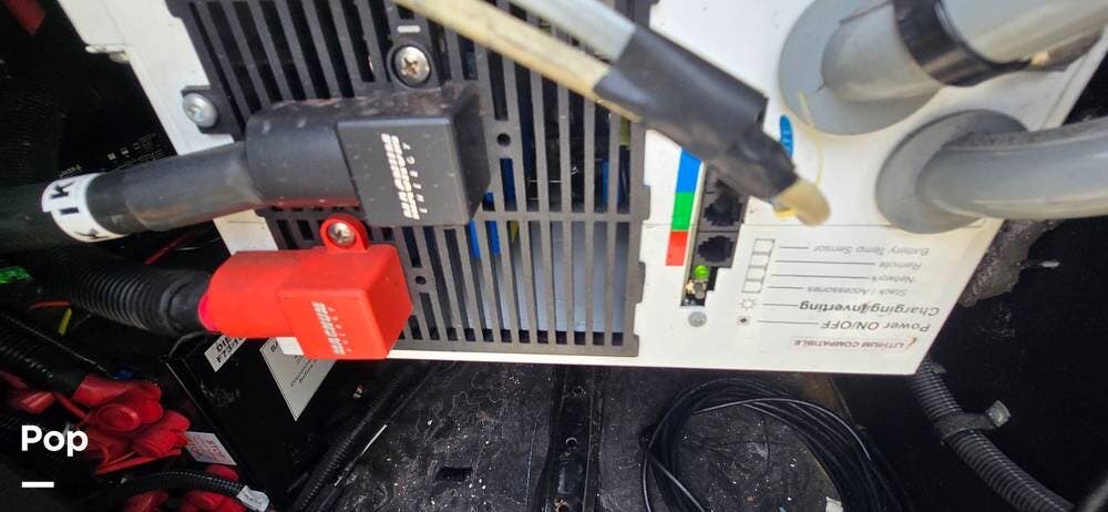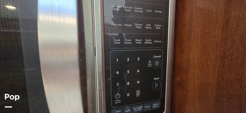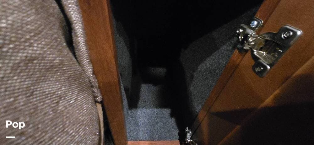 Adjacent to the galley is a 40" LED Sony TV with surround sound that is an extended cabinet to the galley and keeps the entertainment going inside.