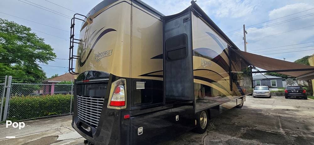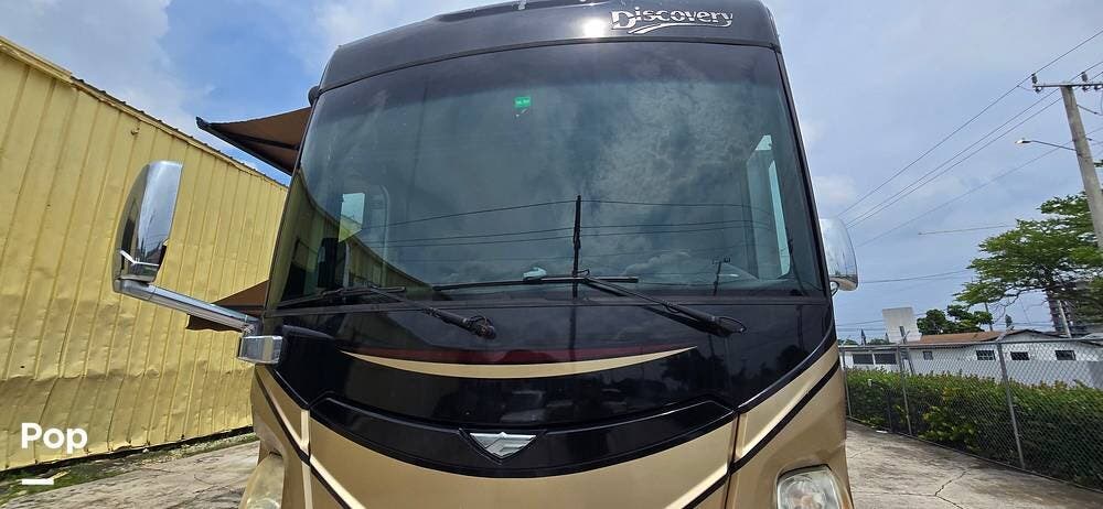 The sleek fiberglass sidewalls and molded fiberglass roof on this 2015 Discovery 40G are complemented by frameless dual-pane windows, an automatic retractable awning with wind sensor, and a rear rock guard--ensuring standout curb appeal and long-lasting durability.