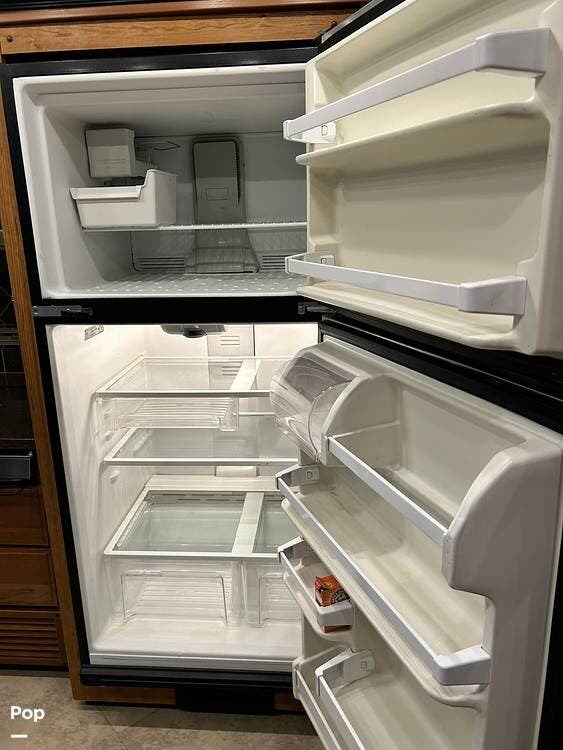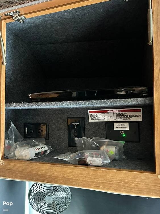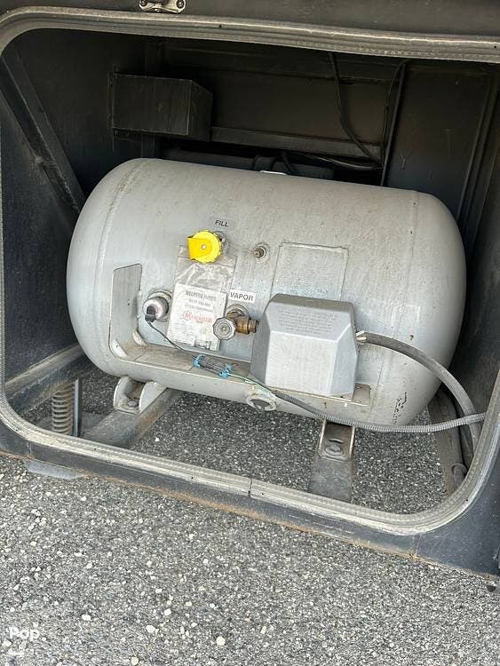 The outside body is in great condition. There's plenty of storage outside HDTV, an awning, a generator, and a huge propane tank.