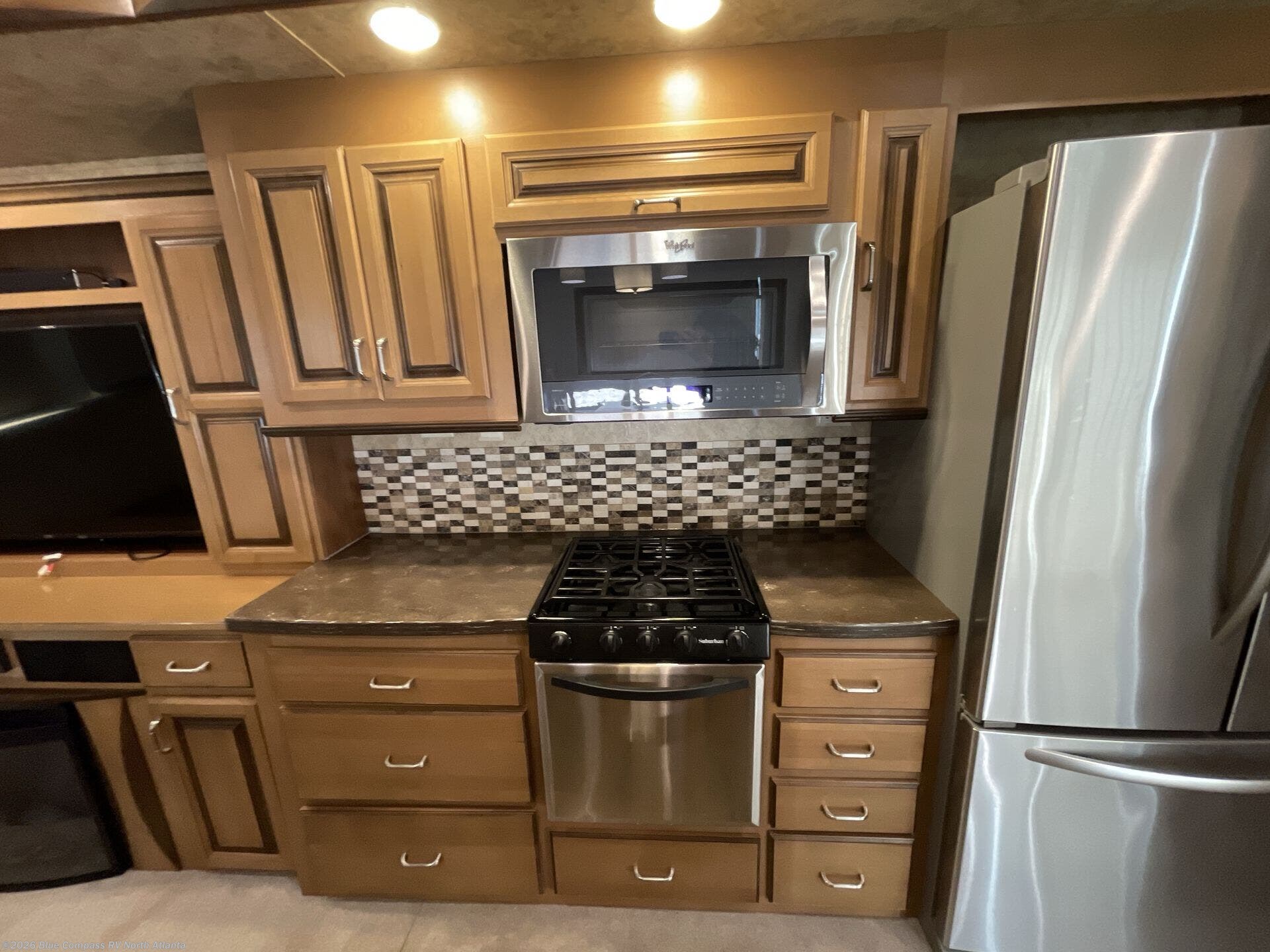 As you enter the main door to this model, to the left is a slide with a dinette and two lounge chairs. The sofa is located in the rear with end tables on either side. There is another slide with an entertainment center, fireplace, desk, microwave, three burner range, and a refrigerator. In the middle of the kitchen you will find a kitchen island with a double sink. There is additional storage available in the closet or overhead cabinets on the interior wall.