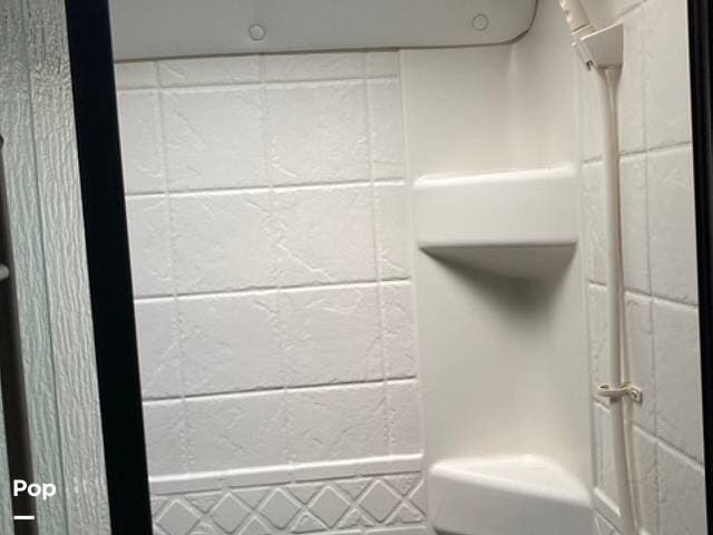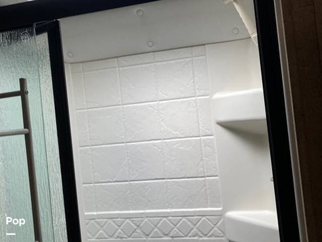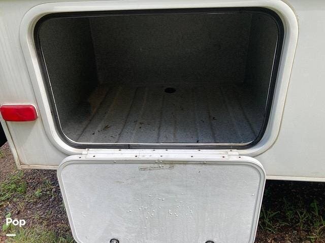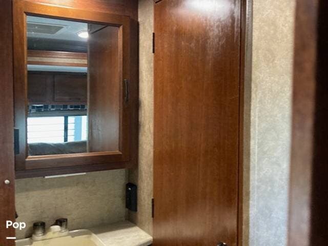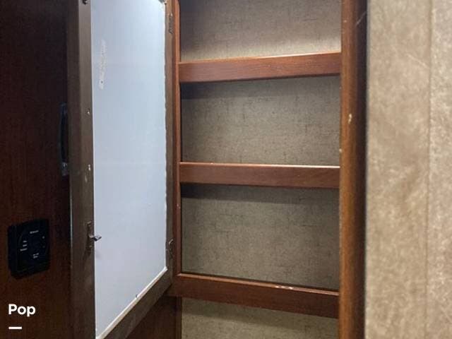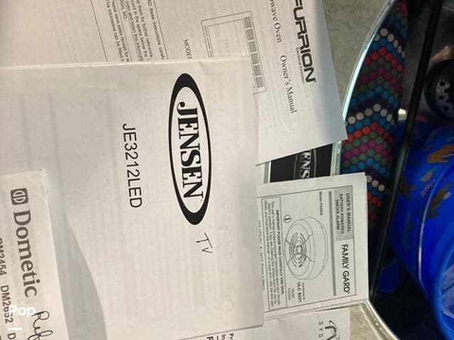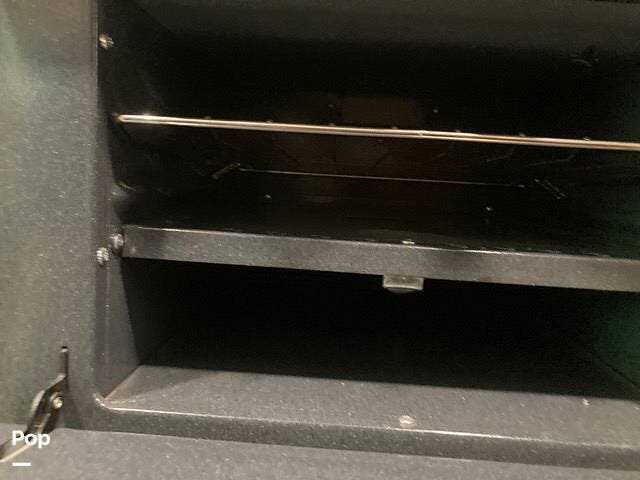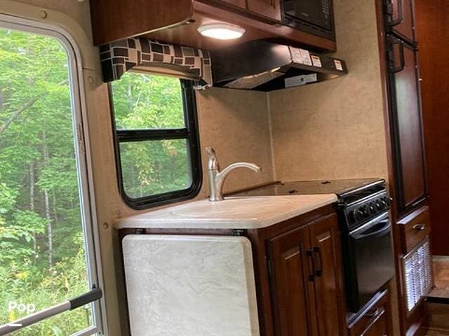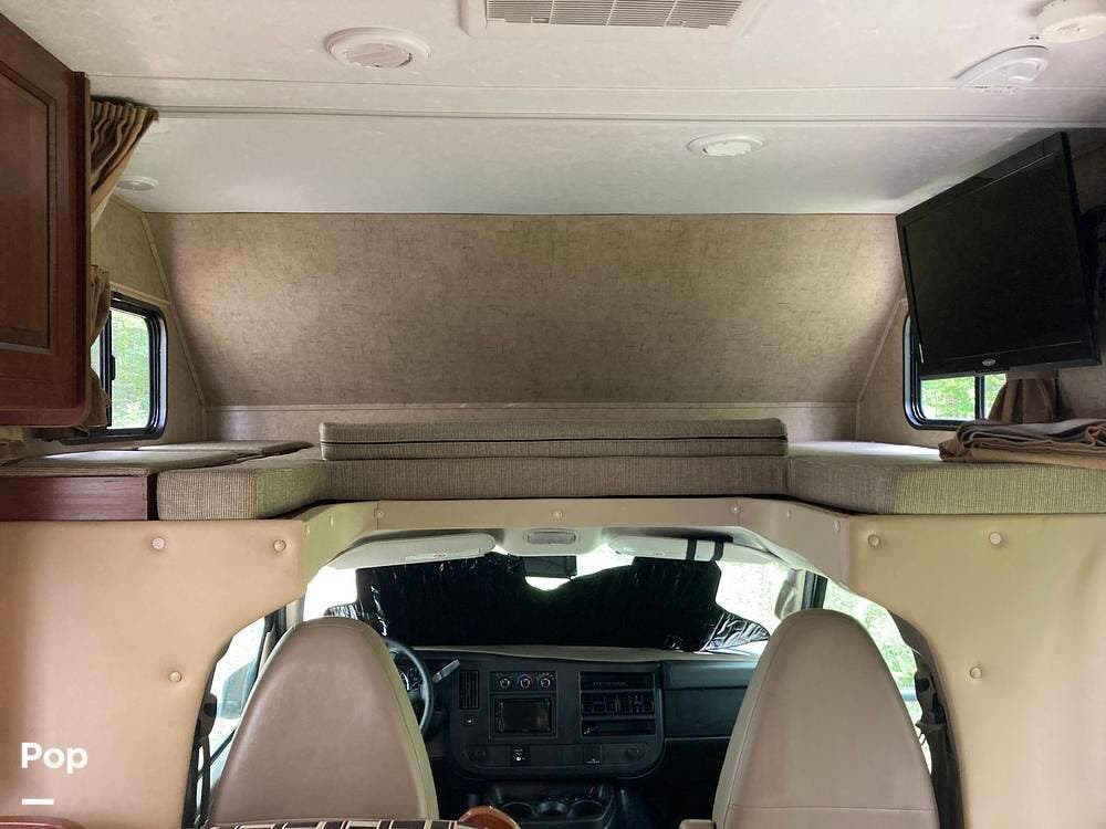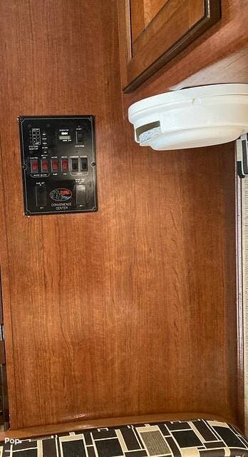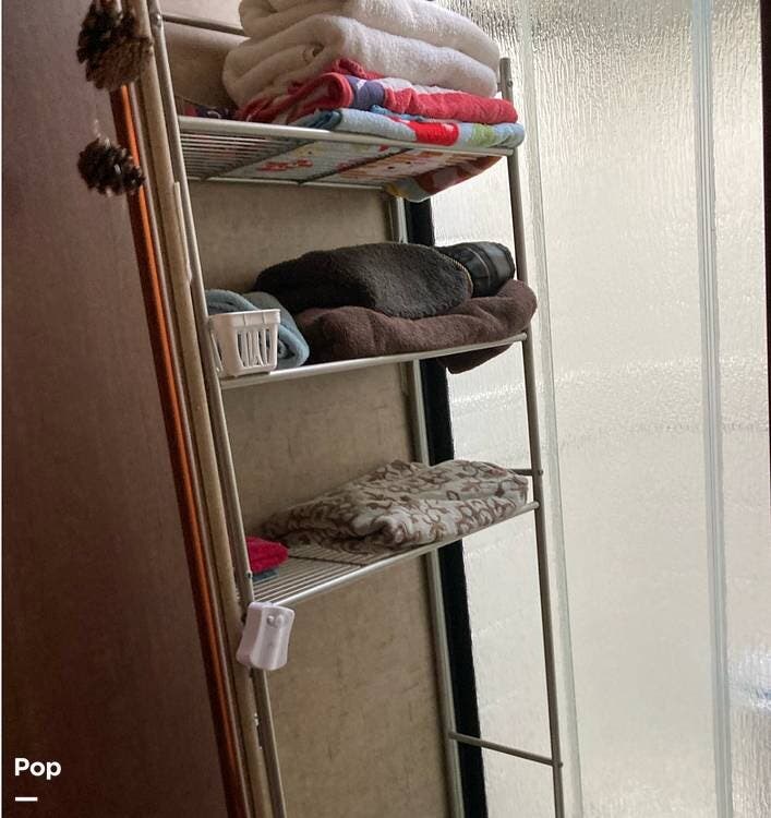 It has a single slide, a dinette and pantry, a large wardrobe, and a full bathroom! The bed above the cab is 60" by 80" and has a 42" TV.