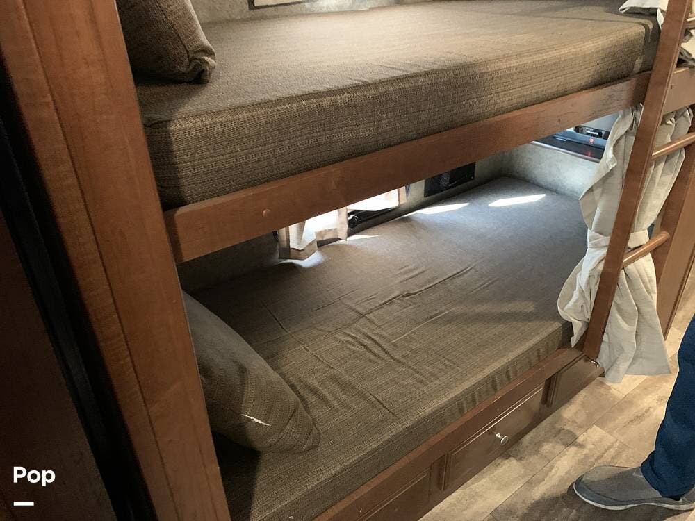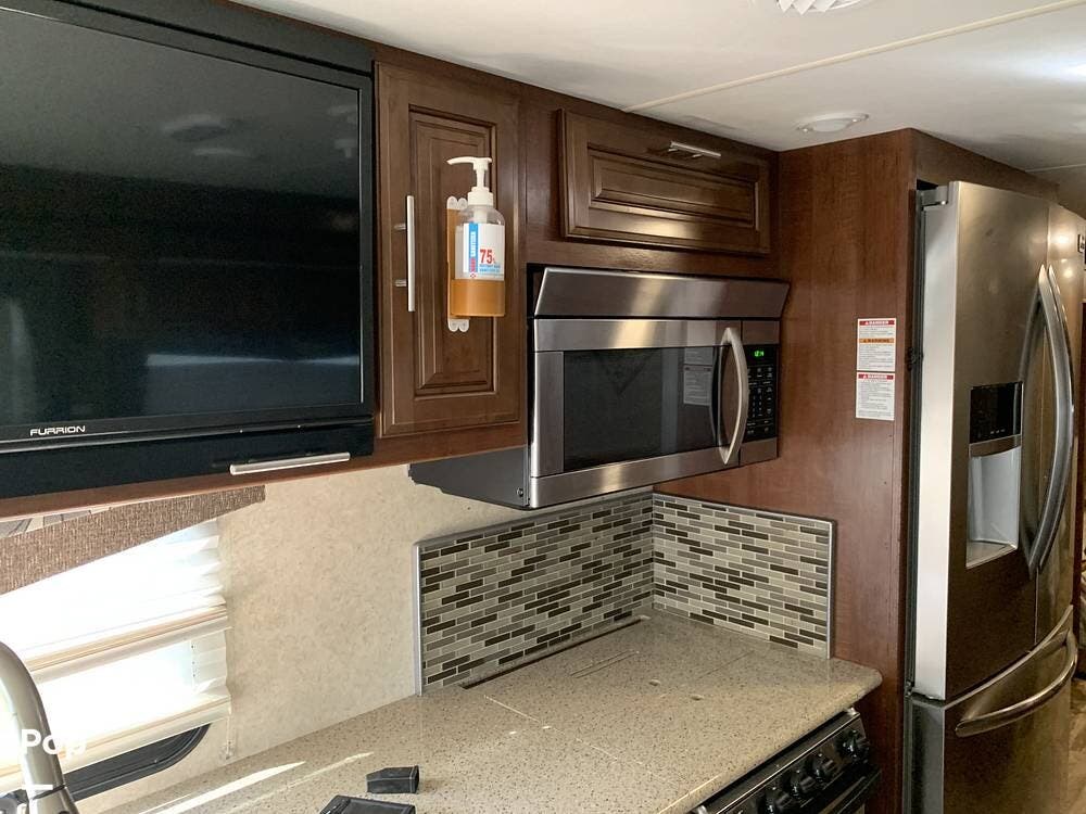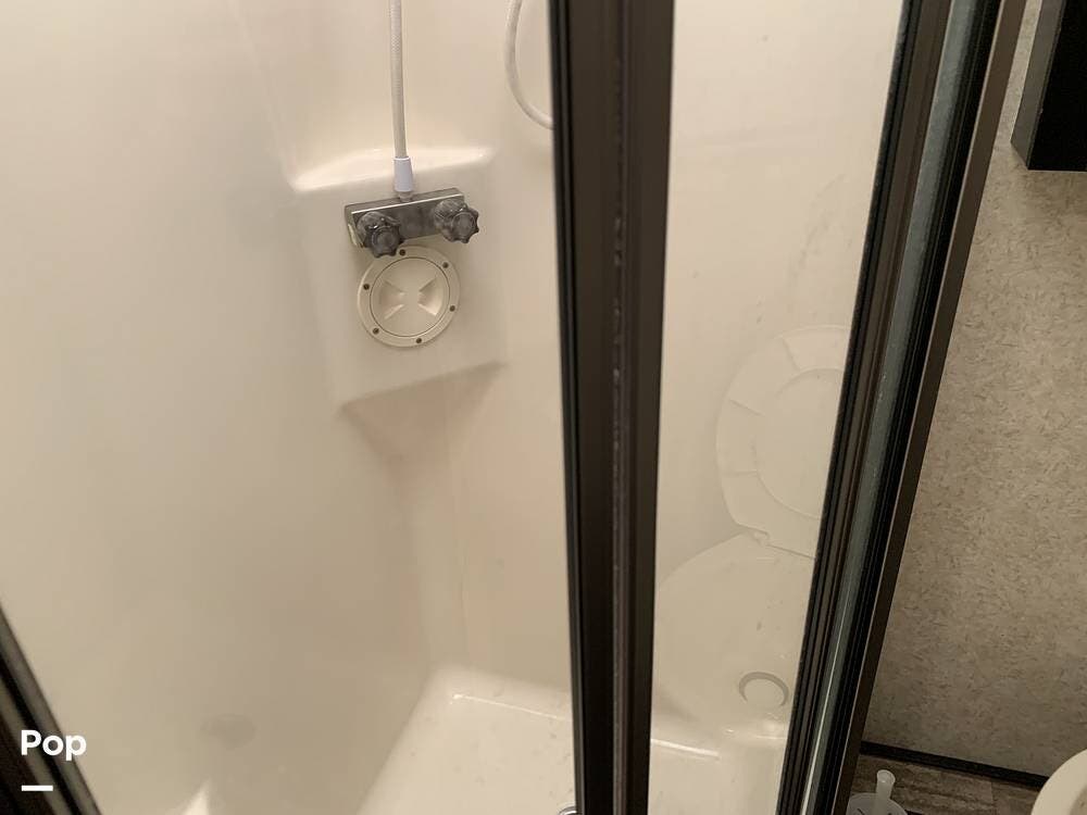 With several windows and upgraded lighting front to back, a beautiful layout, an added bathroom, and many of the amenities of a home, this RV will comfortably take you to your favorite destination or make it your home.
